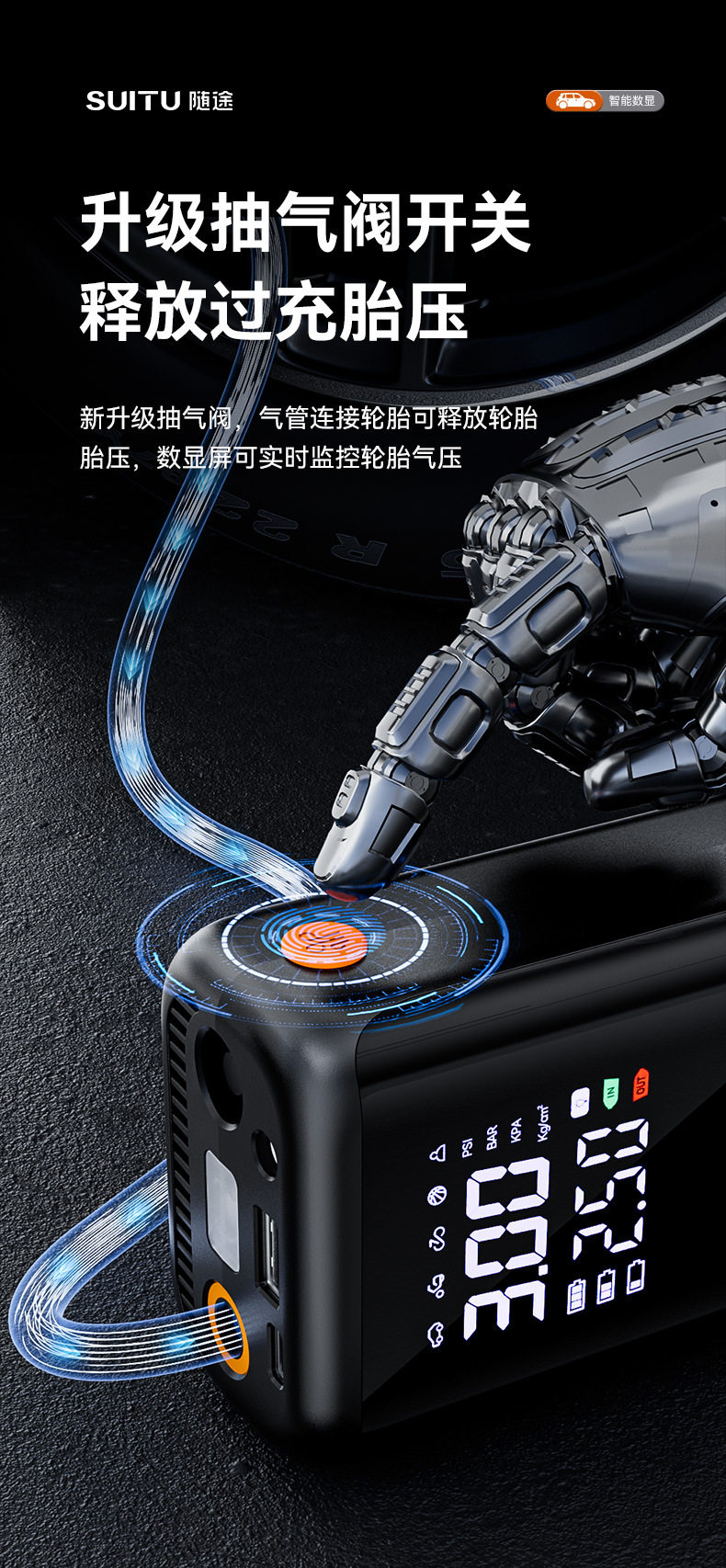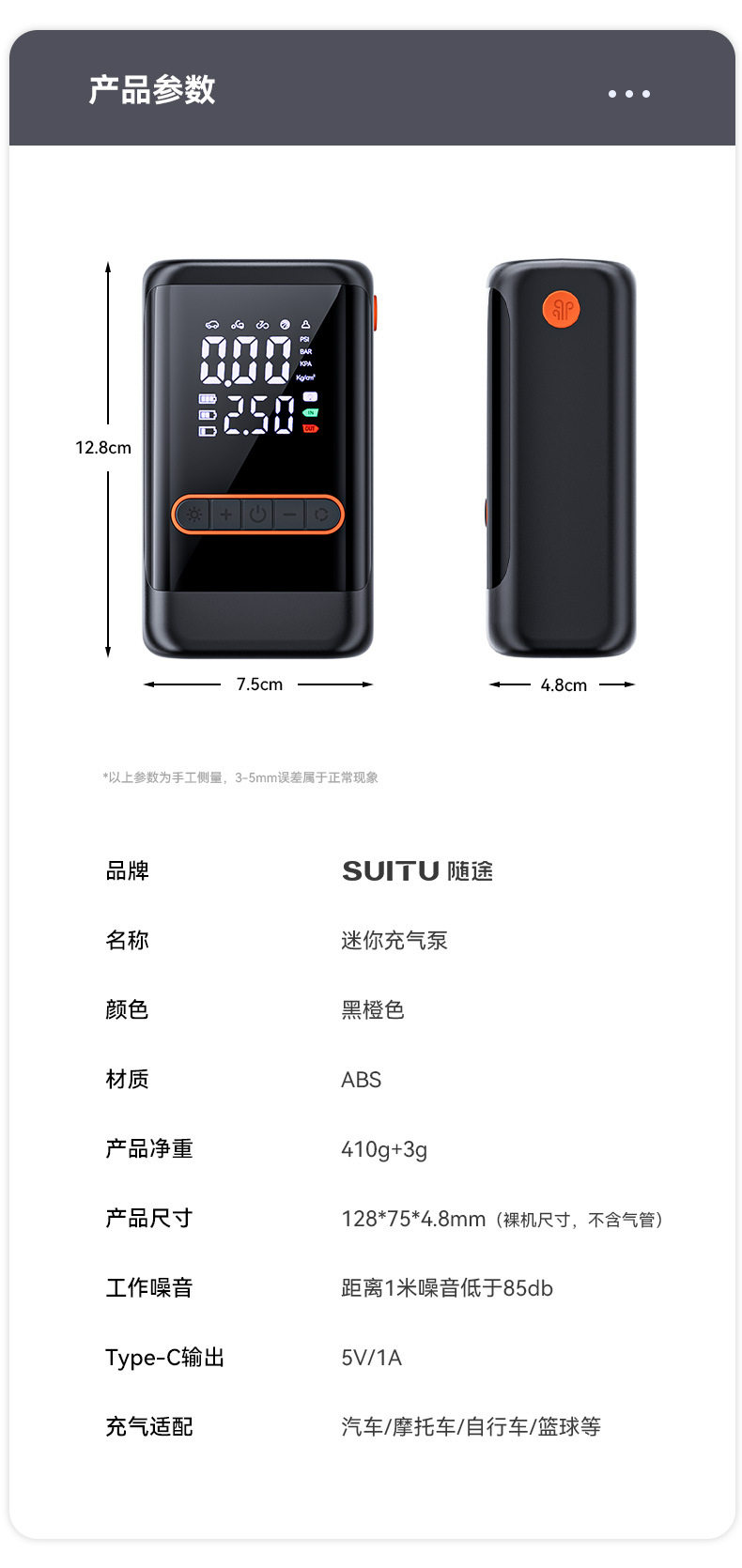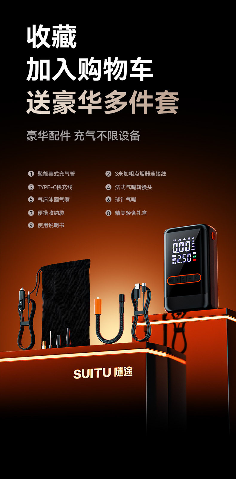 | Specification | Wired air pump,Dual-purpose wireless air pump + usb ultra-clear dual-screen digital display★6000mah long battery life★Preset tire pressure★Smart charging and stopping,Three-way wireless air pump + dc + usb ultra-clear dual-screen digital display ★ 6000mah long battery life ★ Cigarette lighter power supply ★ Preset tire pressure ★ Smart charging and stopping |