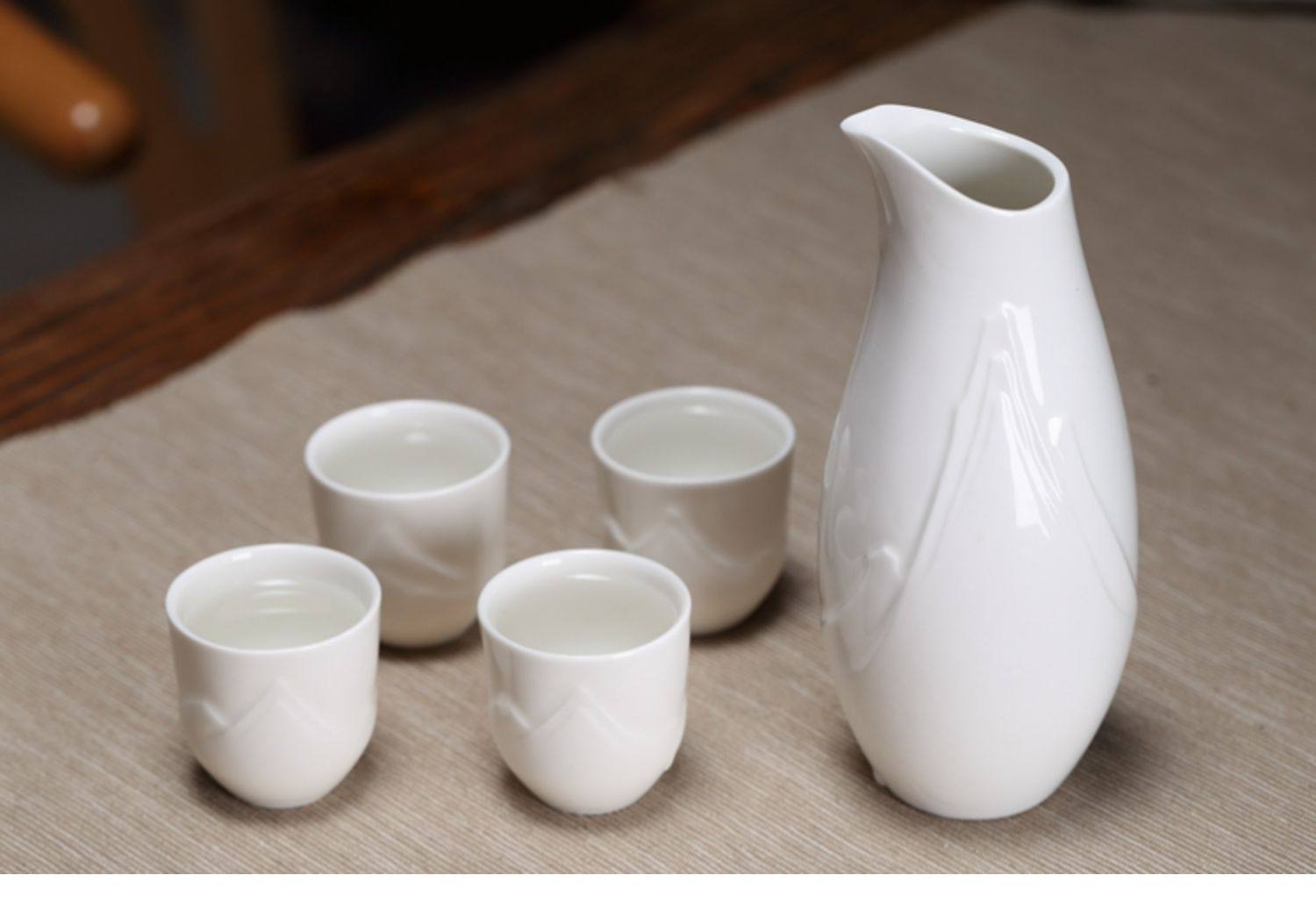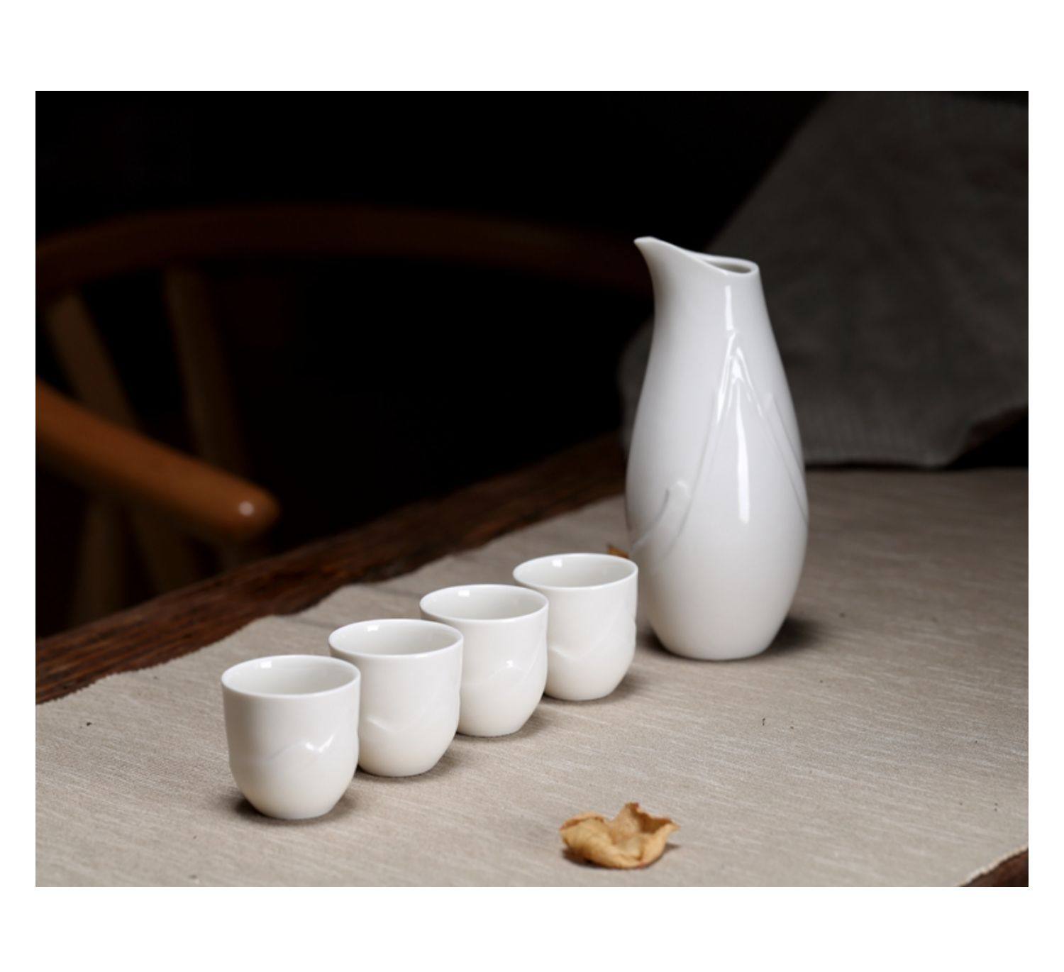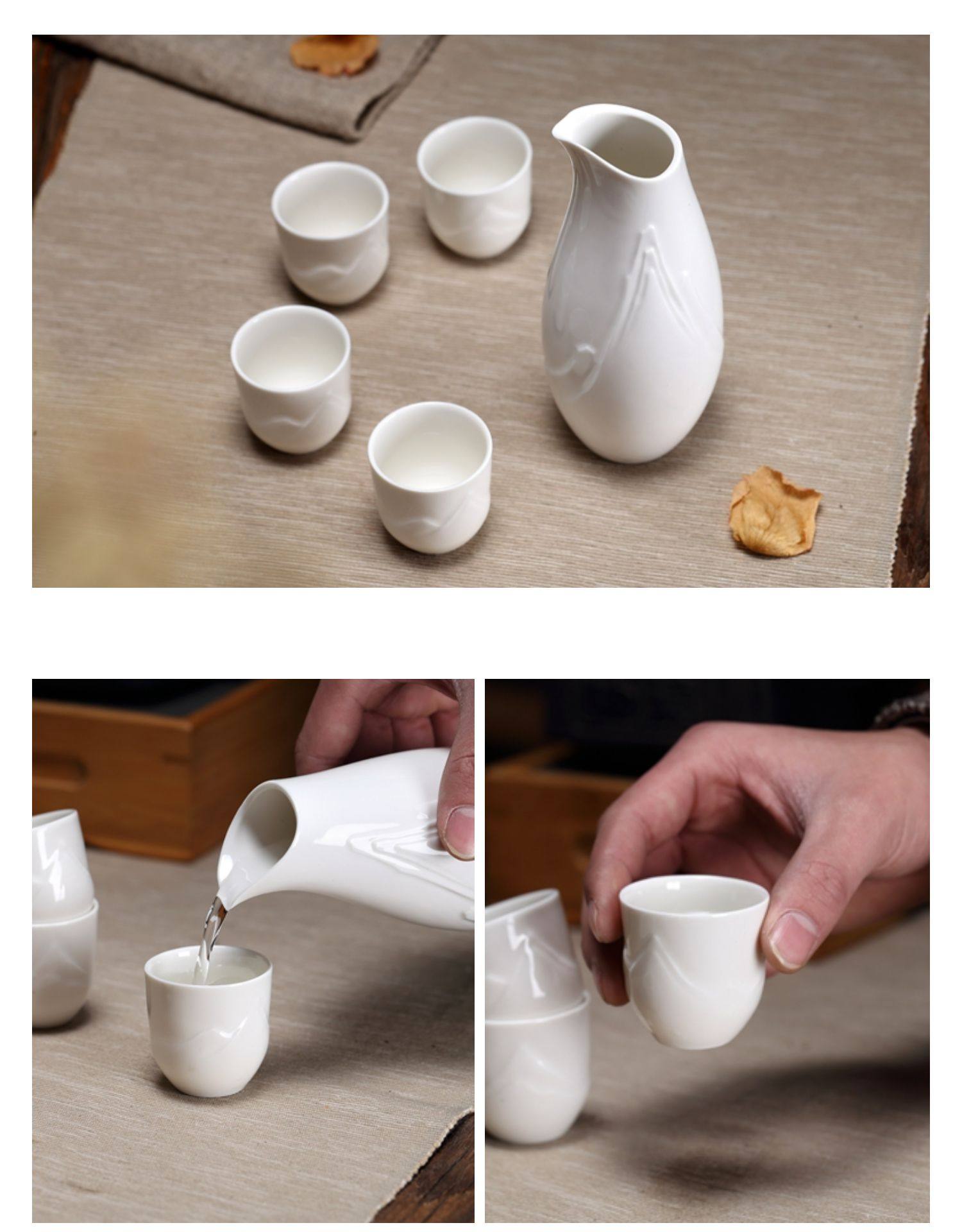 Yunyi Japanese Sake Warmer White Wine Cup Embossed Ceramic Wine Set Home Restaurant Wine Dispenser Wine Glass