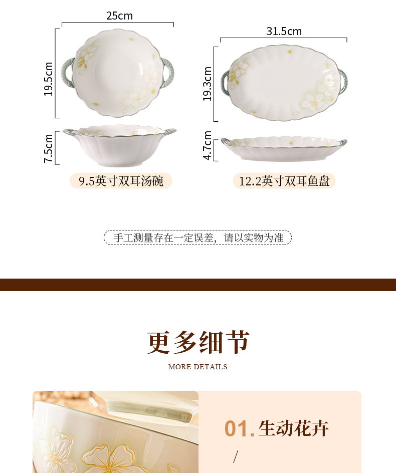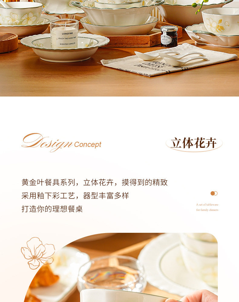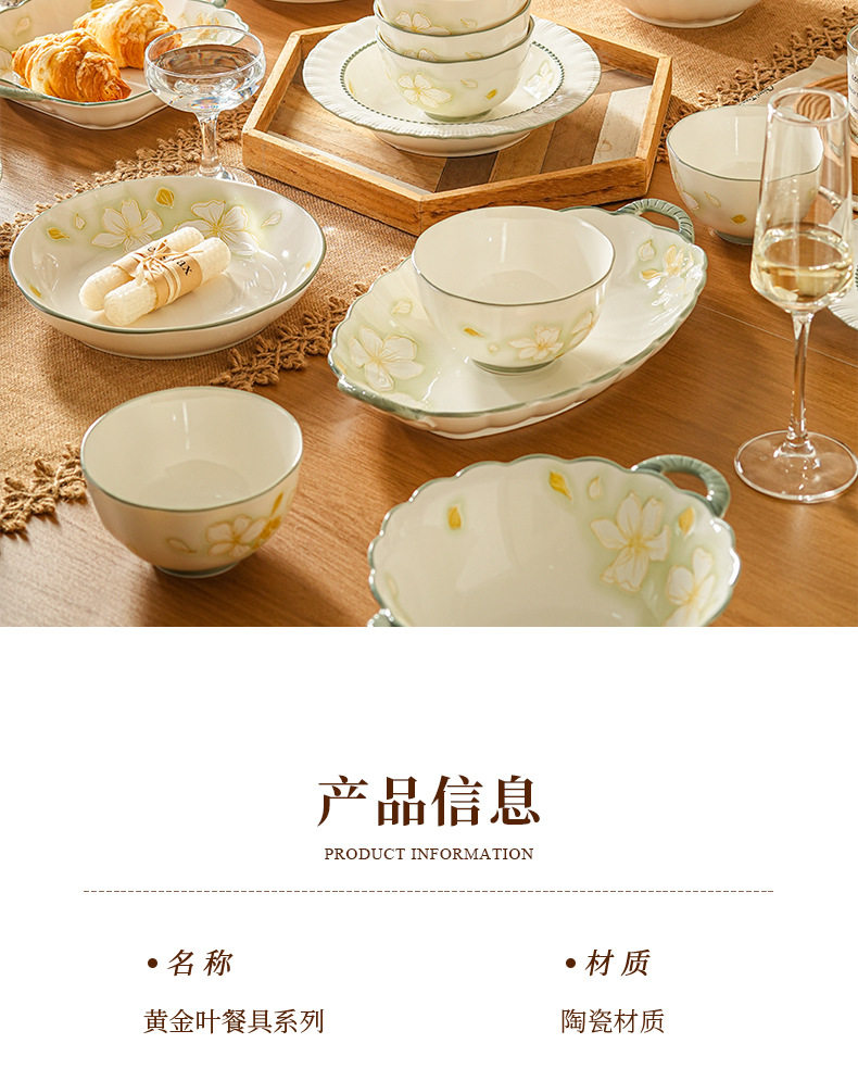 | Colour | Golden leaf - 4.5inch new ya bowl,Golden leaf - 5inch new ya bowl,Golden leaf - 6inch new ya bowl,Golden leaf - 8inch new ya bowl,Golden leaf - 9.5inch double ear soup bowl,Golden leaf - 7inch new ya plate,Golden leaf - 8inch new ya plate,Golden leaf - 8.5inch straw hat plate,Golden leaf - 9.5inch square plates with two ears,Golden leaf-12.2 binaural fish plate |