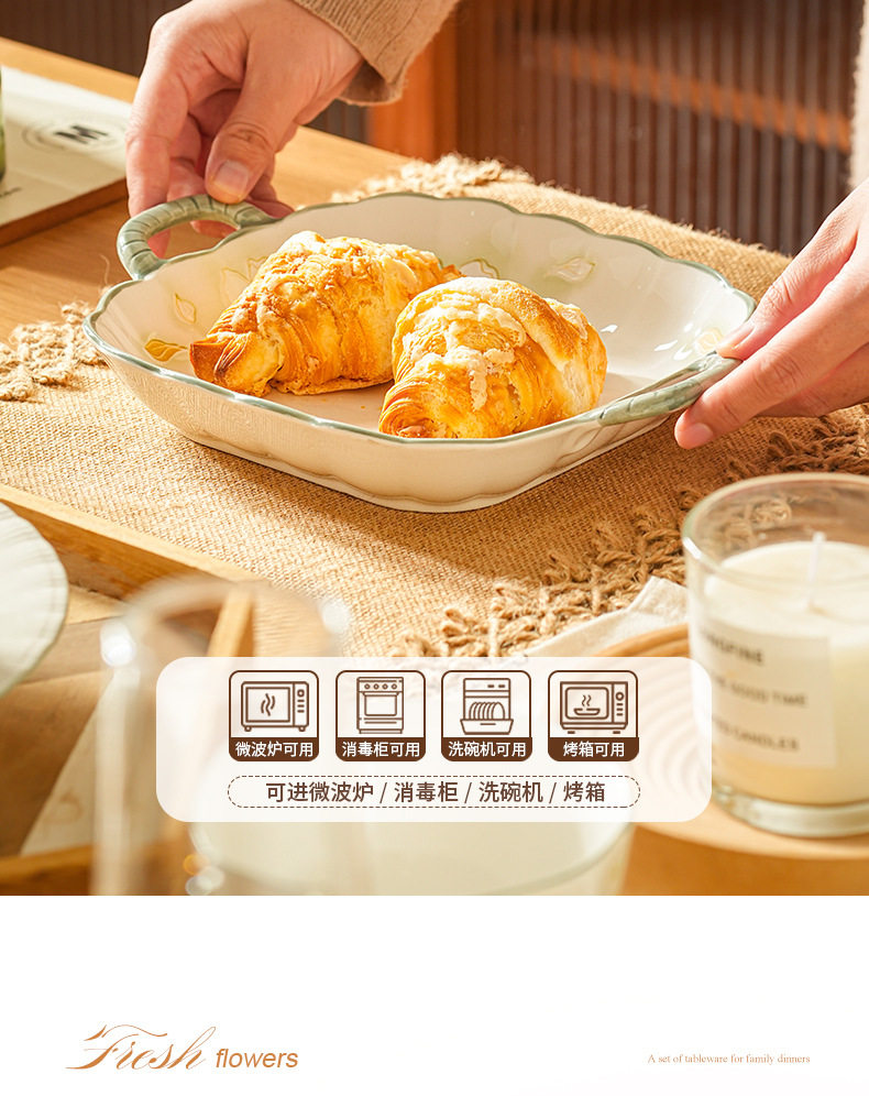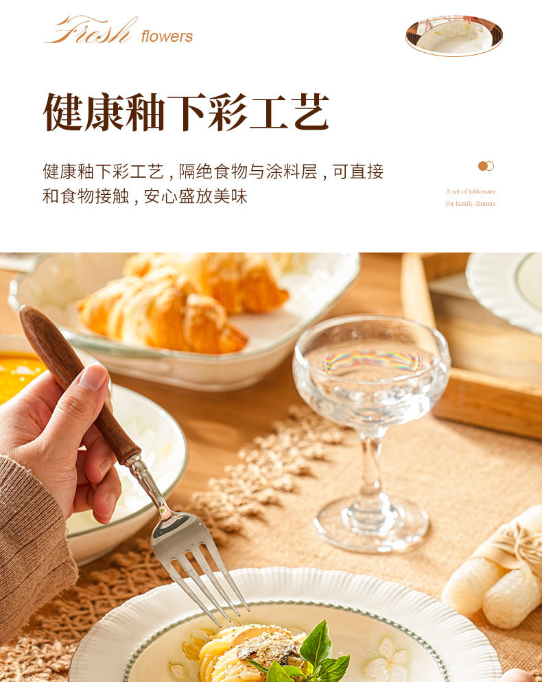 New Gold Leaf Underglaze Color Tableware Binaural Fish Plate Simple Ins Style Household Wear Easy Cleaning Heat Insulation Anti-scalding