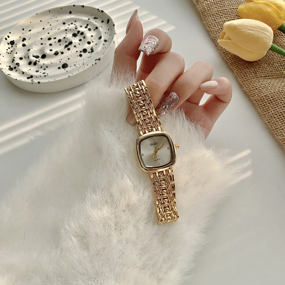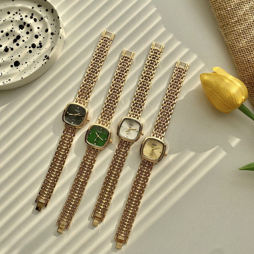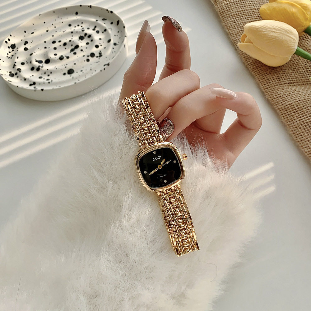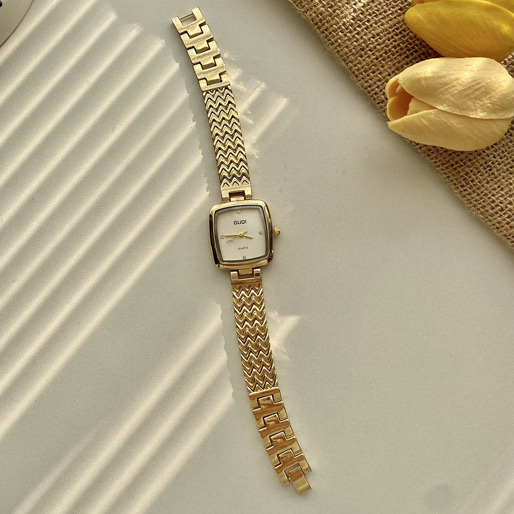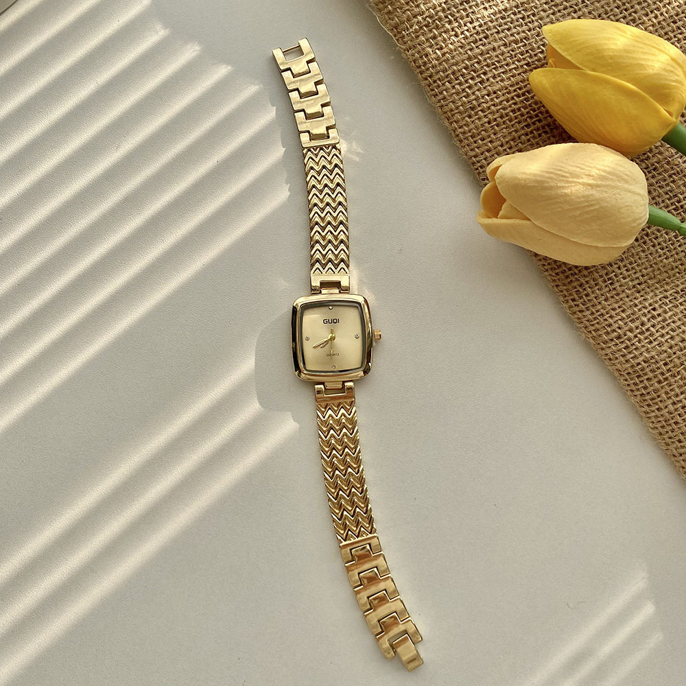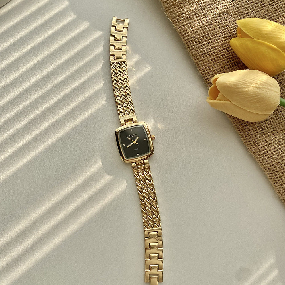 Fashion simple small square watch women retro literature cross-border small fragrance quartz watch high sense small gold watch a generation of hair