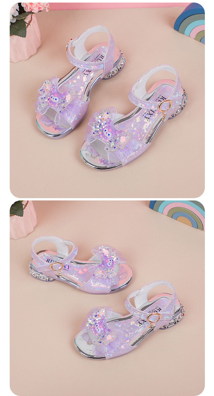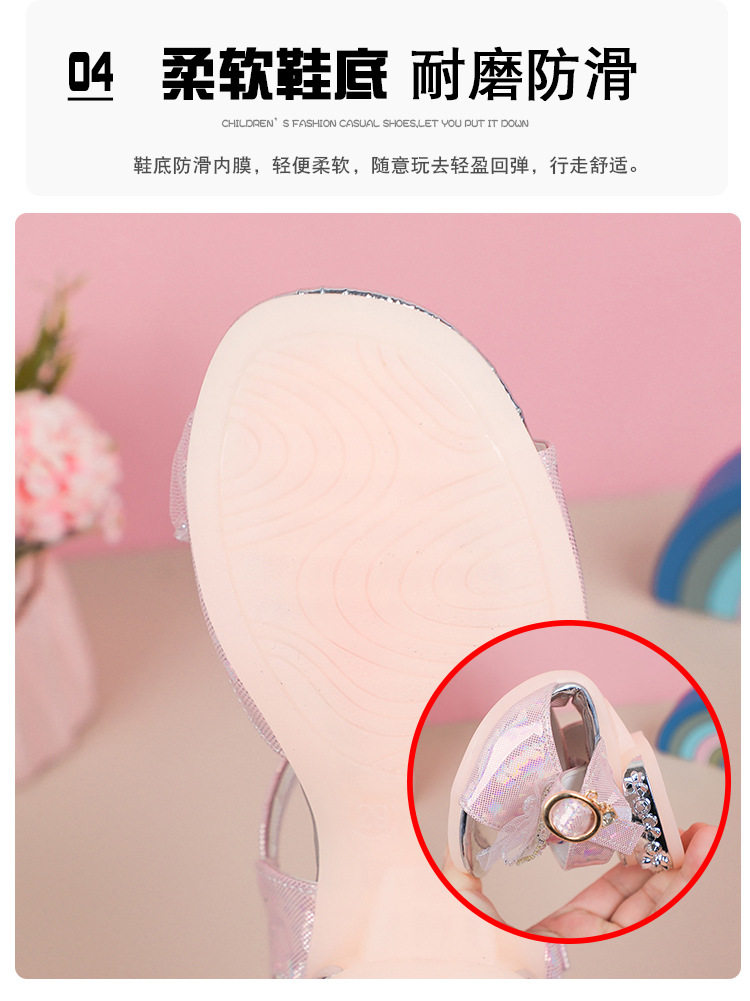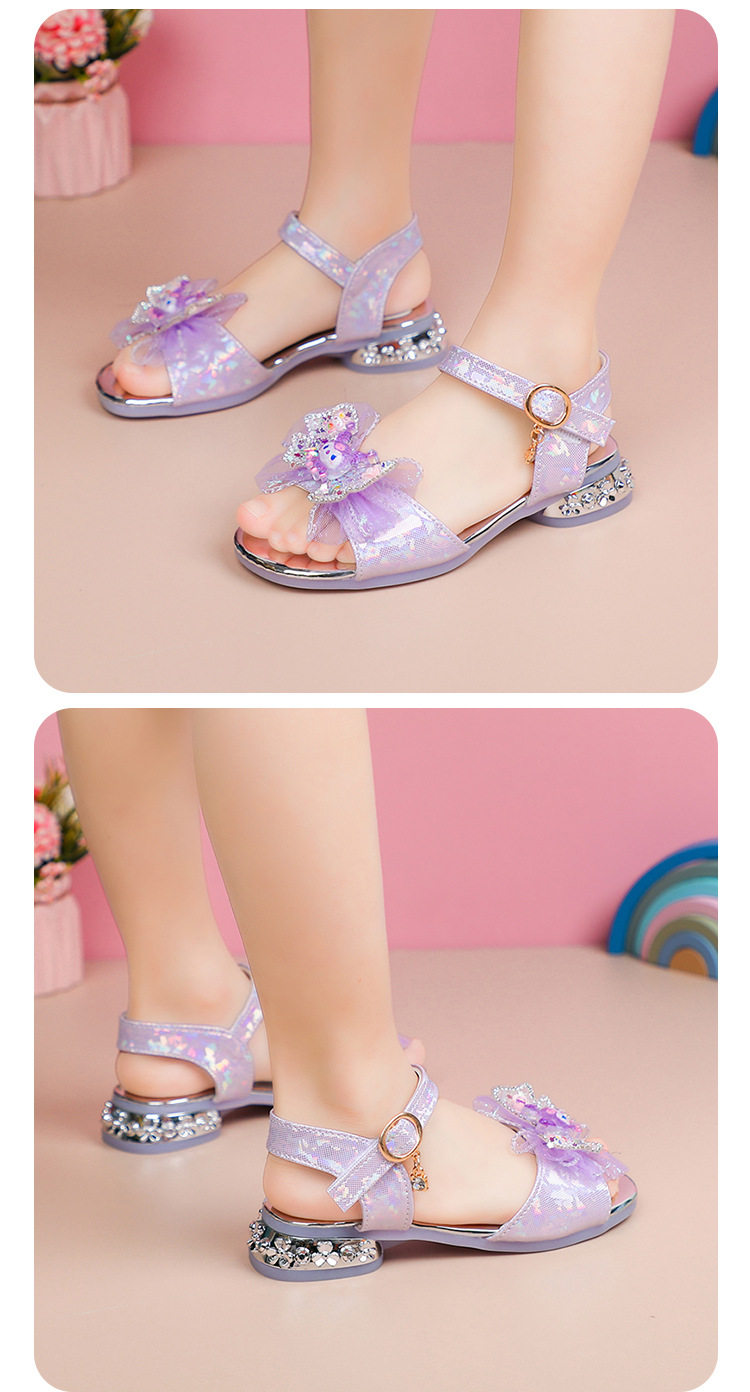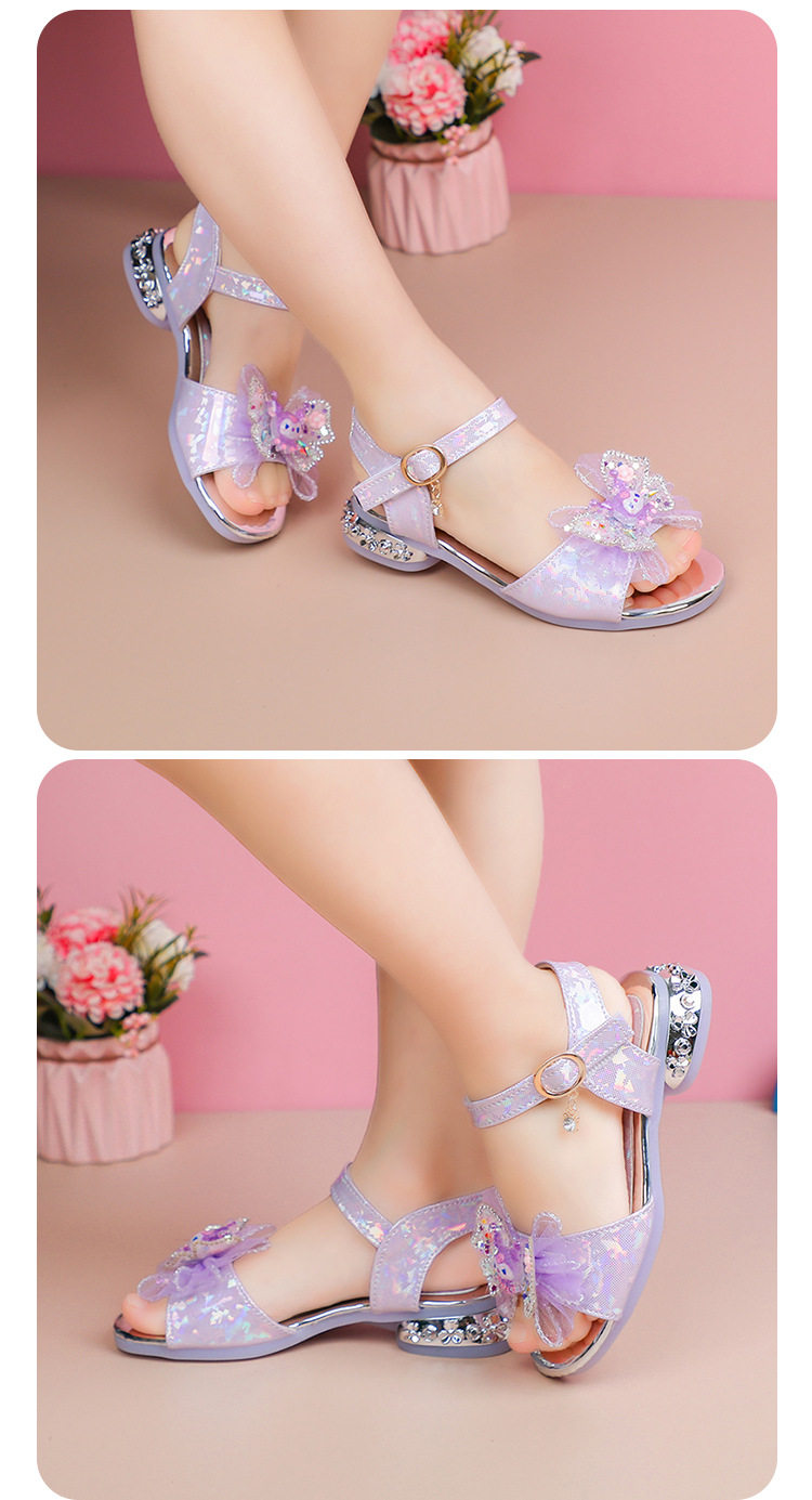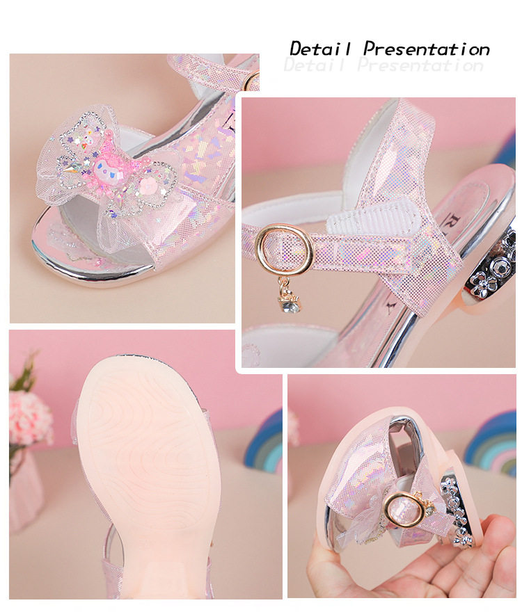 Children's and Girls' Sandals Princess Kloomi Crystal Shoes Little Girl's 2025 Summer New Soft Sole Fashion Show Shoes