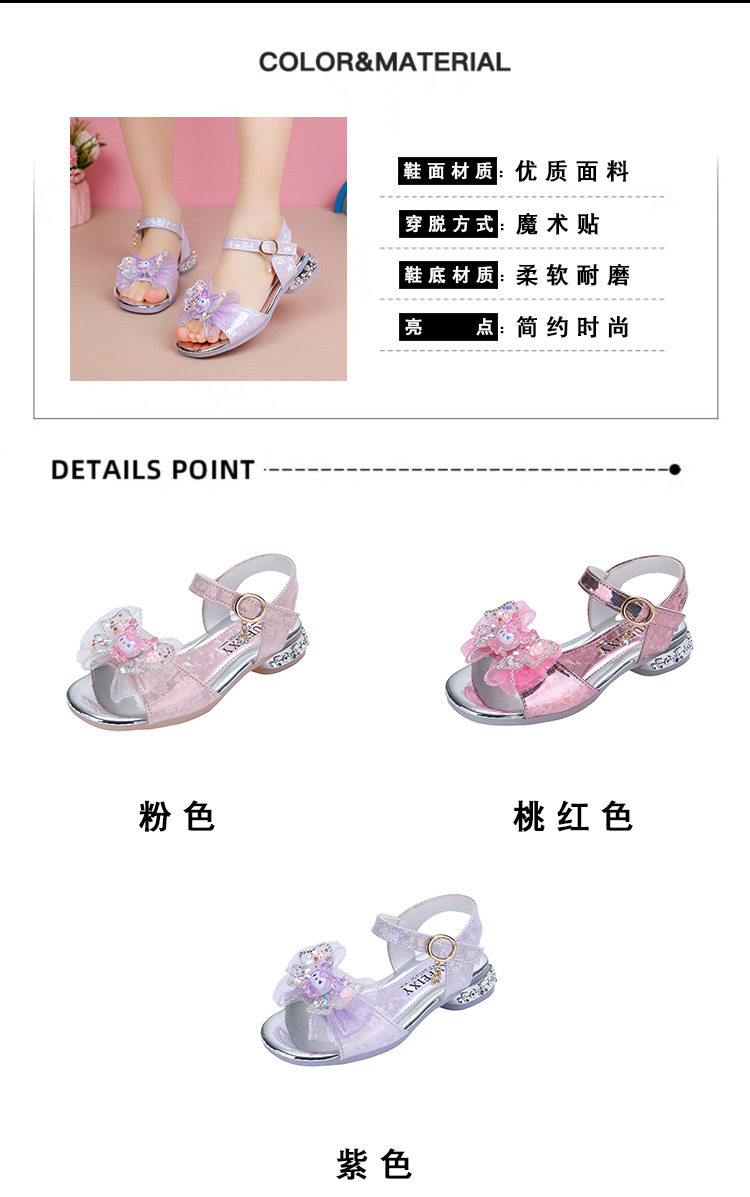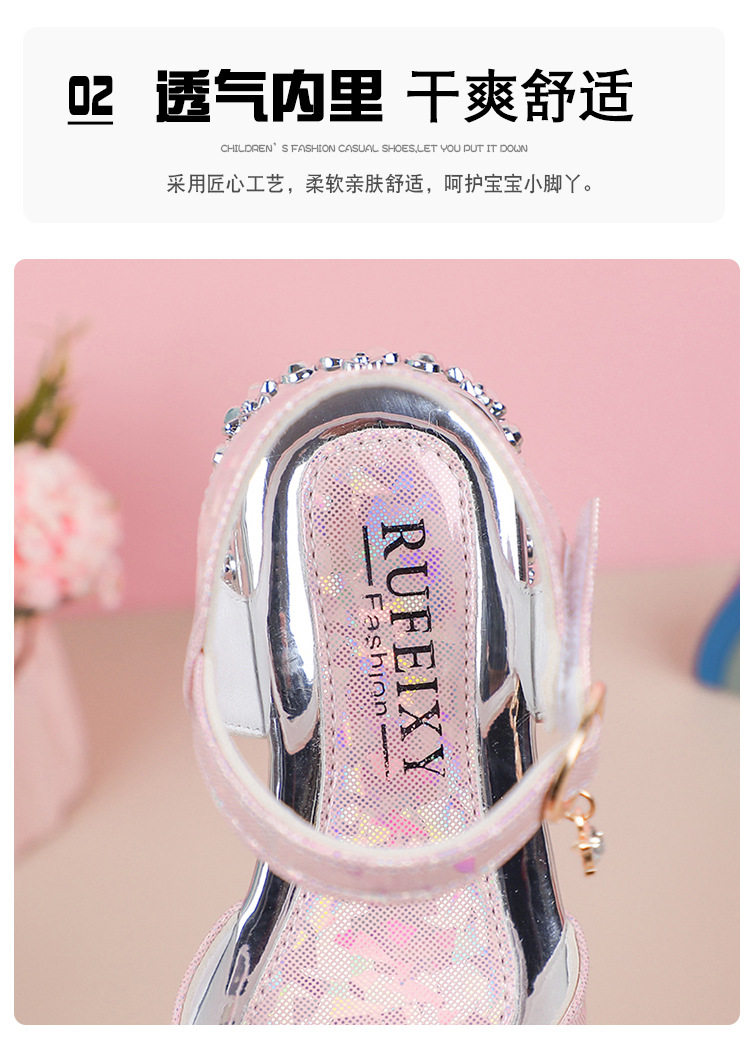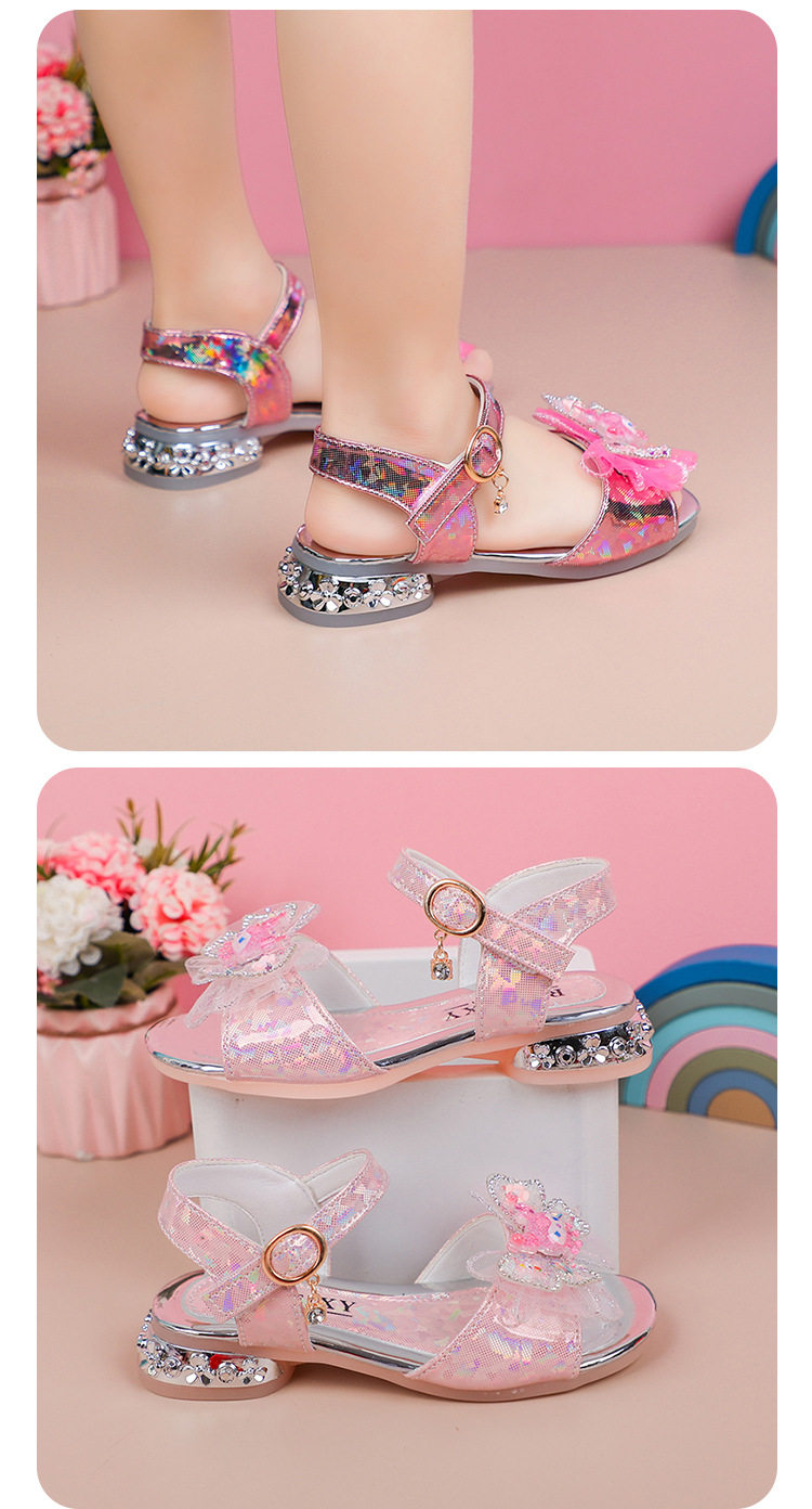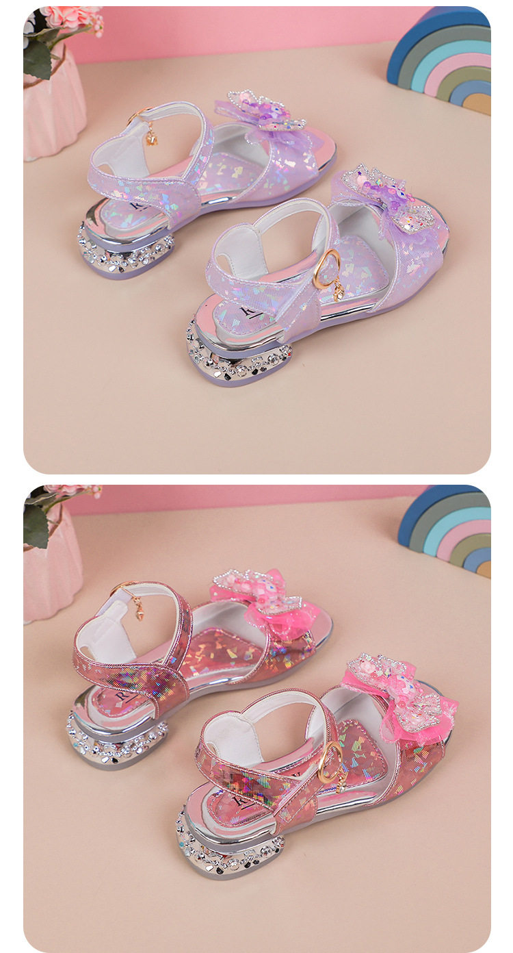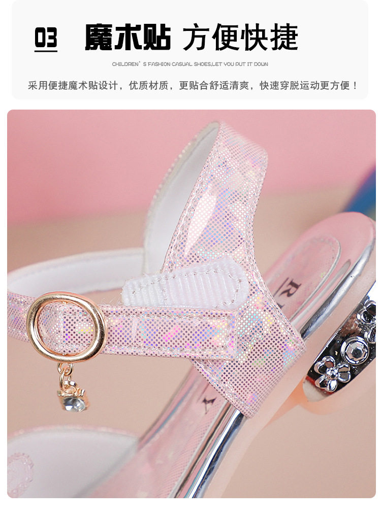 Children's and Girls' Sandals Princess Kloomi Crystal Shoes Little Girl's 2025 Summer New Soft Sole Fashion Show Shoes
