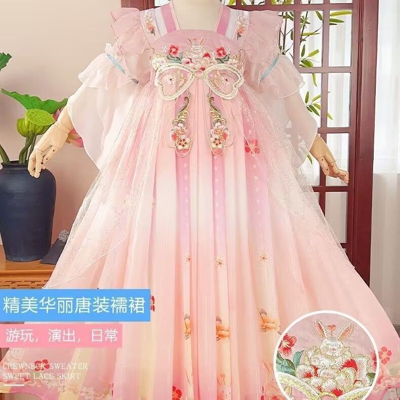 2025 New Hanfu Girls Summer Skirt Ancient Chinese Style Super Fairy dress Children's Ancient Tang Suit Summer