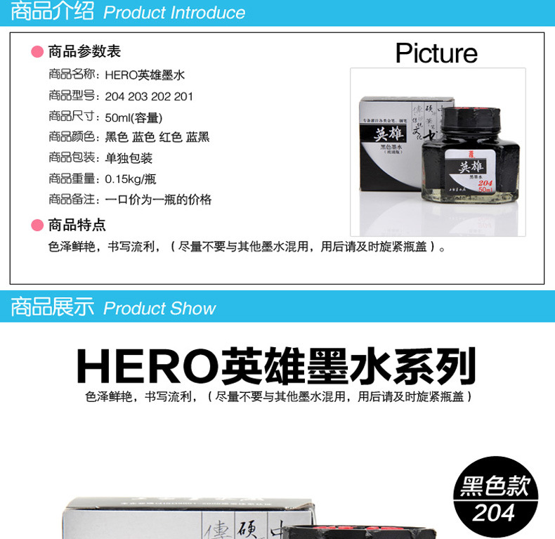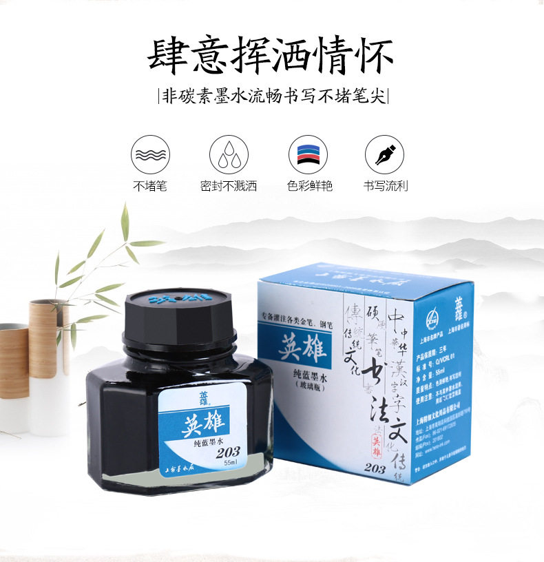 Large capacity ink non-carbon 203 blue 204 black ink does not block pen quick-drying pen ink