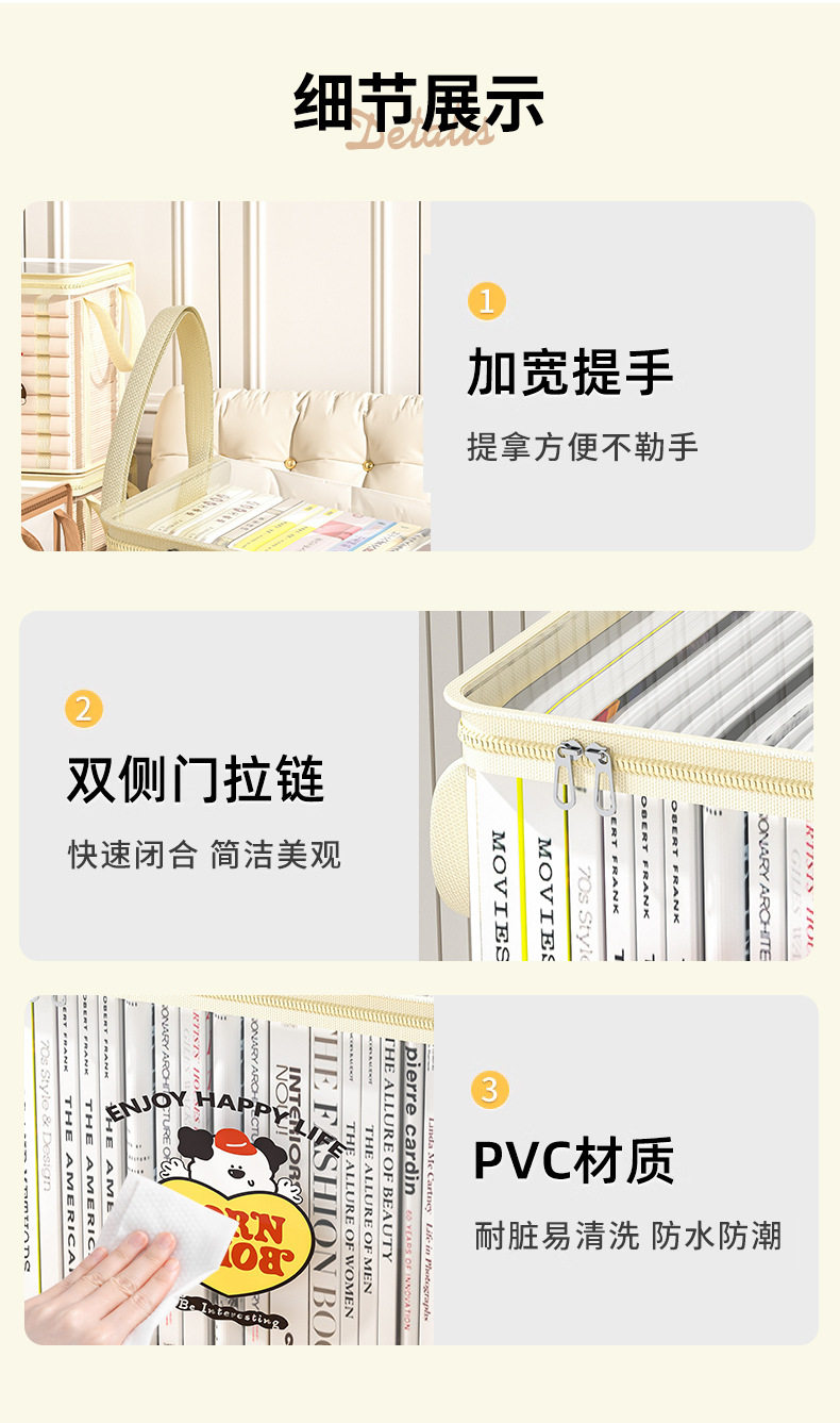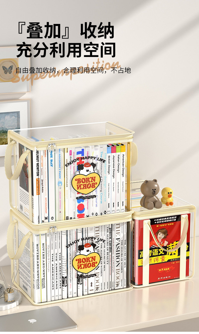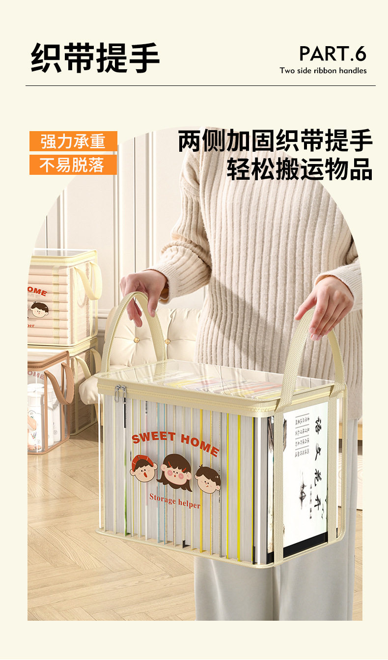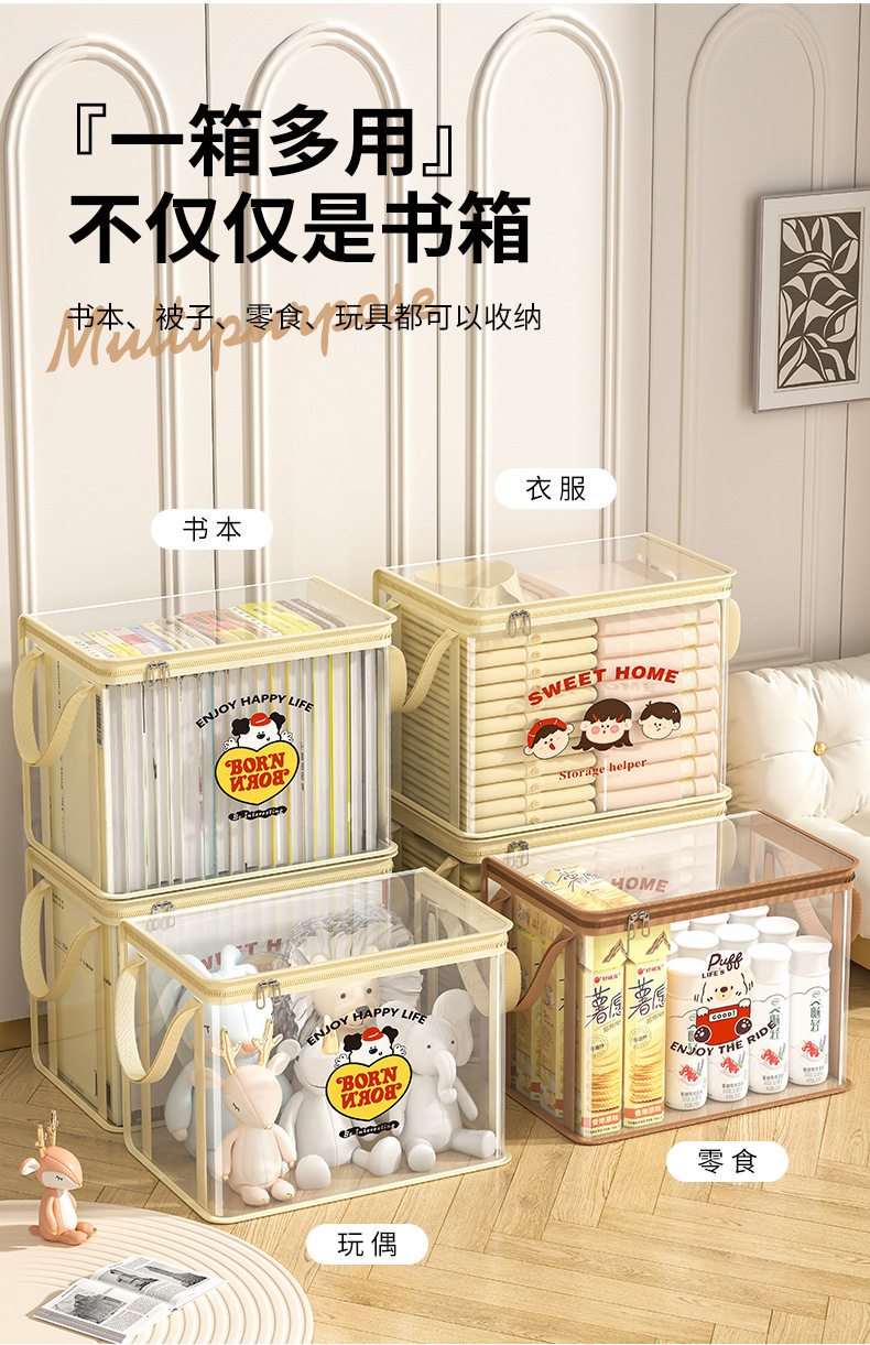 New Cartoon Storage Box Thickened PVC Waterproof and Dustproof Textbook Storage Bag Foldable Large Portable Storage Box