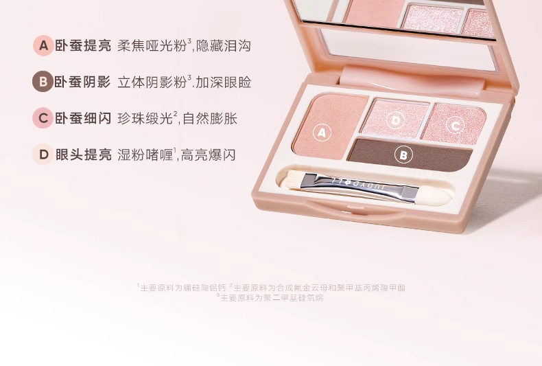 Judydoll Orange Silkworm Palette Four-Color Eyeshadow Highlight Comprehensive Palette Multi-Purpose Brightening Shadow Eyeliner Pearlescent