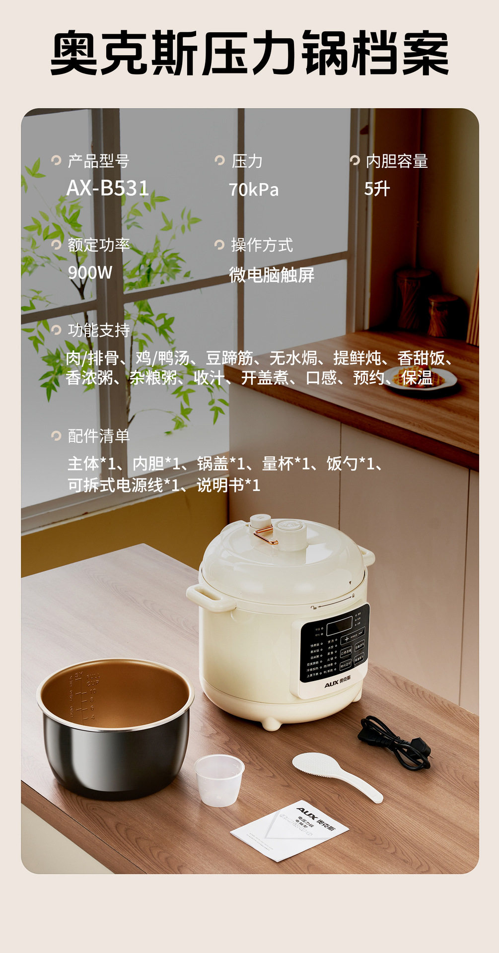 AUX-Oaks electric pressure cooker household multifunctional rice cooker 5L large capacity non-stick cooker wholesale pressure cooker