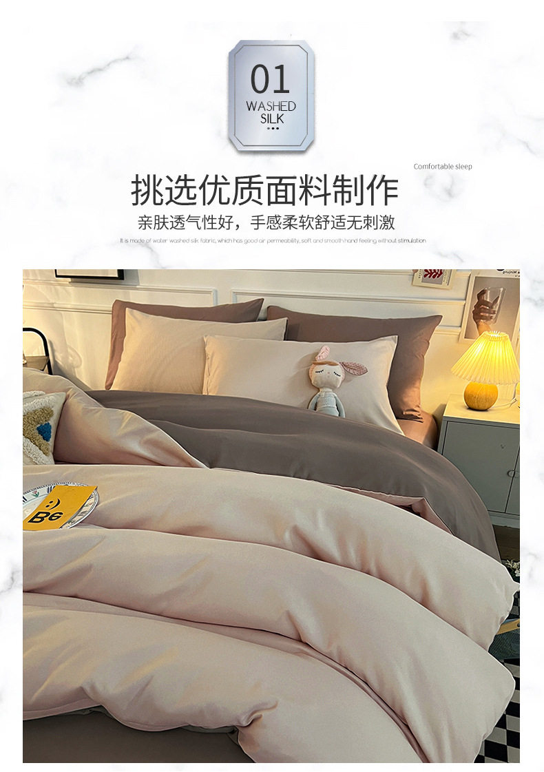 | Dimensions | Children's special price three-piece set [quilt cover suitable for 150x200 quilt core],Three-piece student dormitory bed set [quilt cover suitable for 150x200 quilt core] (no shrinkage/no fading),1.2m bed three-piece set [quilt cover suitable for 150x200 quilt core] (no shrinkage/no fading),1.5m bed four-piece set [quilt cover suitable for 150x200 quilt core] (no shrinkage/no fading),1.8m bed four-piece set [quilt cover suitable for 180x220 quilt core] (no shrinkage/no fading),2.0m bed four-piece set [quilt cover suitable for 200x230 quilt core] (no shrinkage/no fading) |