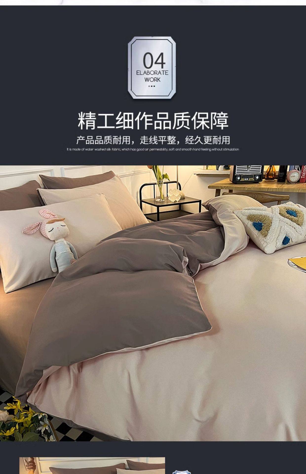 Ins Four-Piece Bed Bed Sheets Quilt Cover Student Dormitory Single Bedding Washed Cotton Three-Piece Set Ins Style
