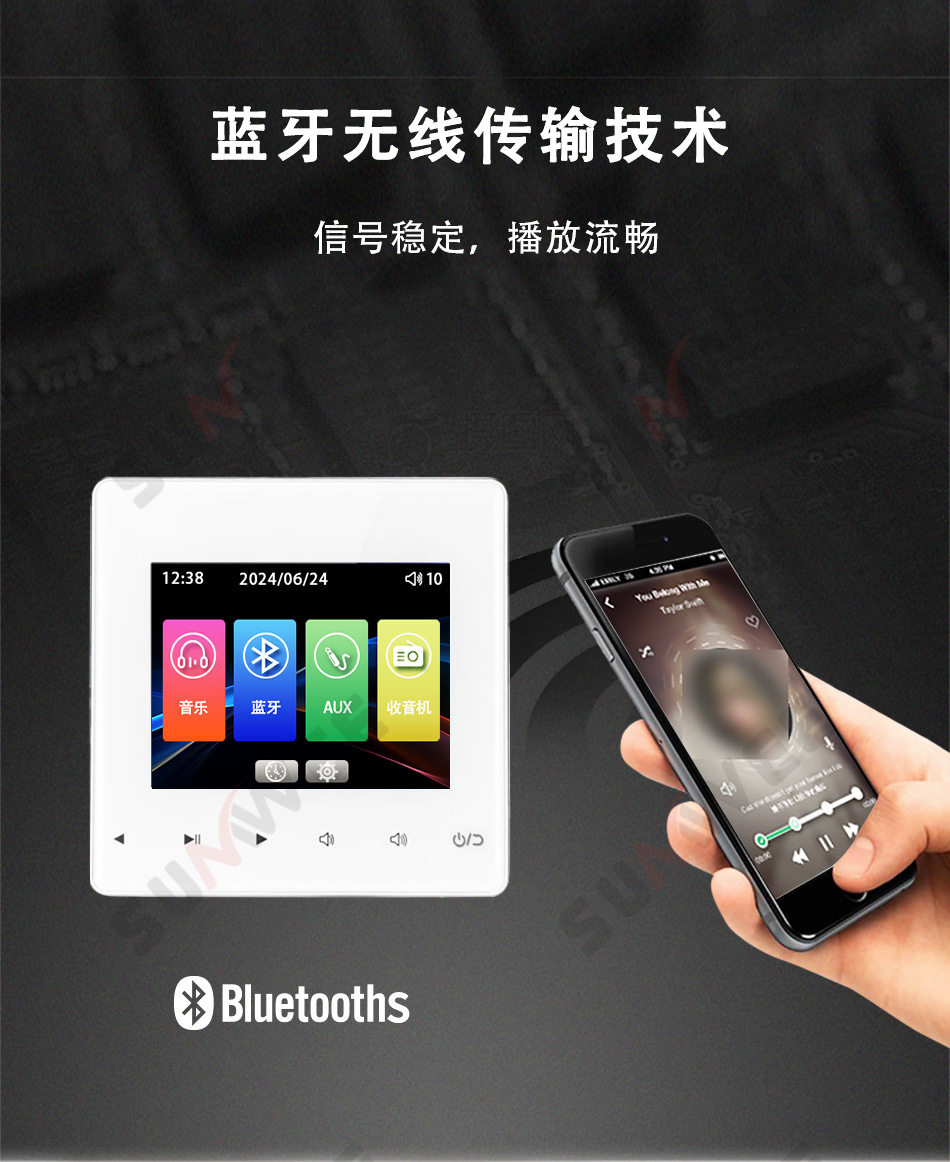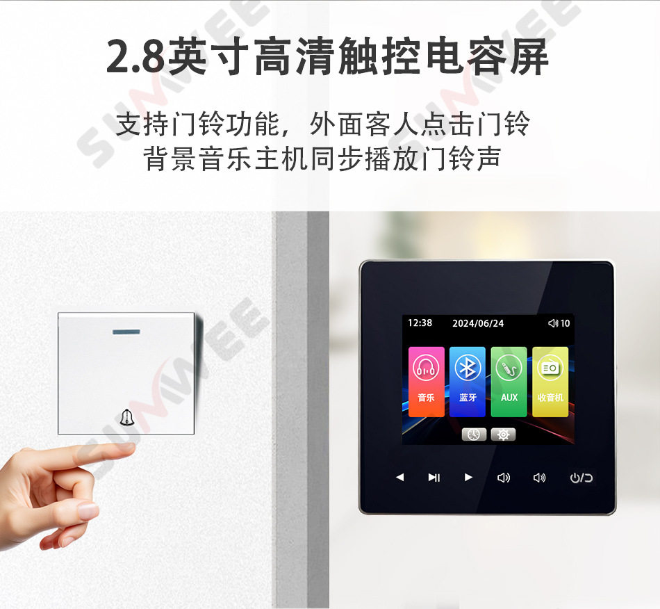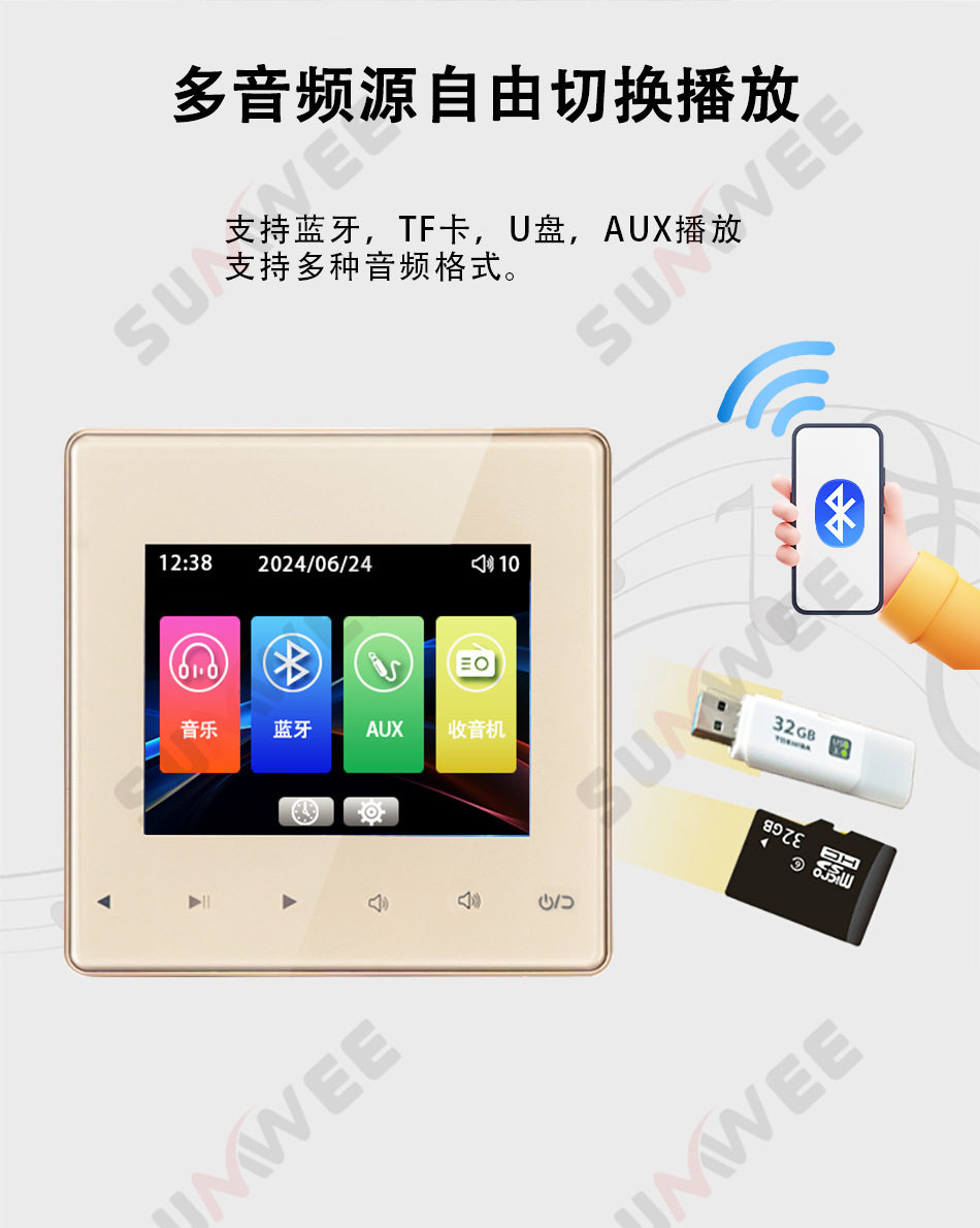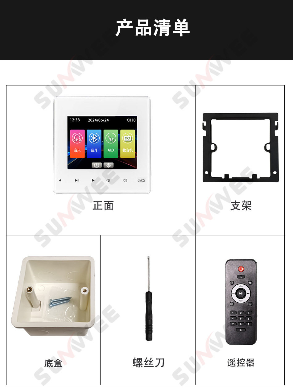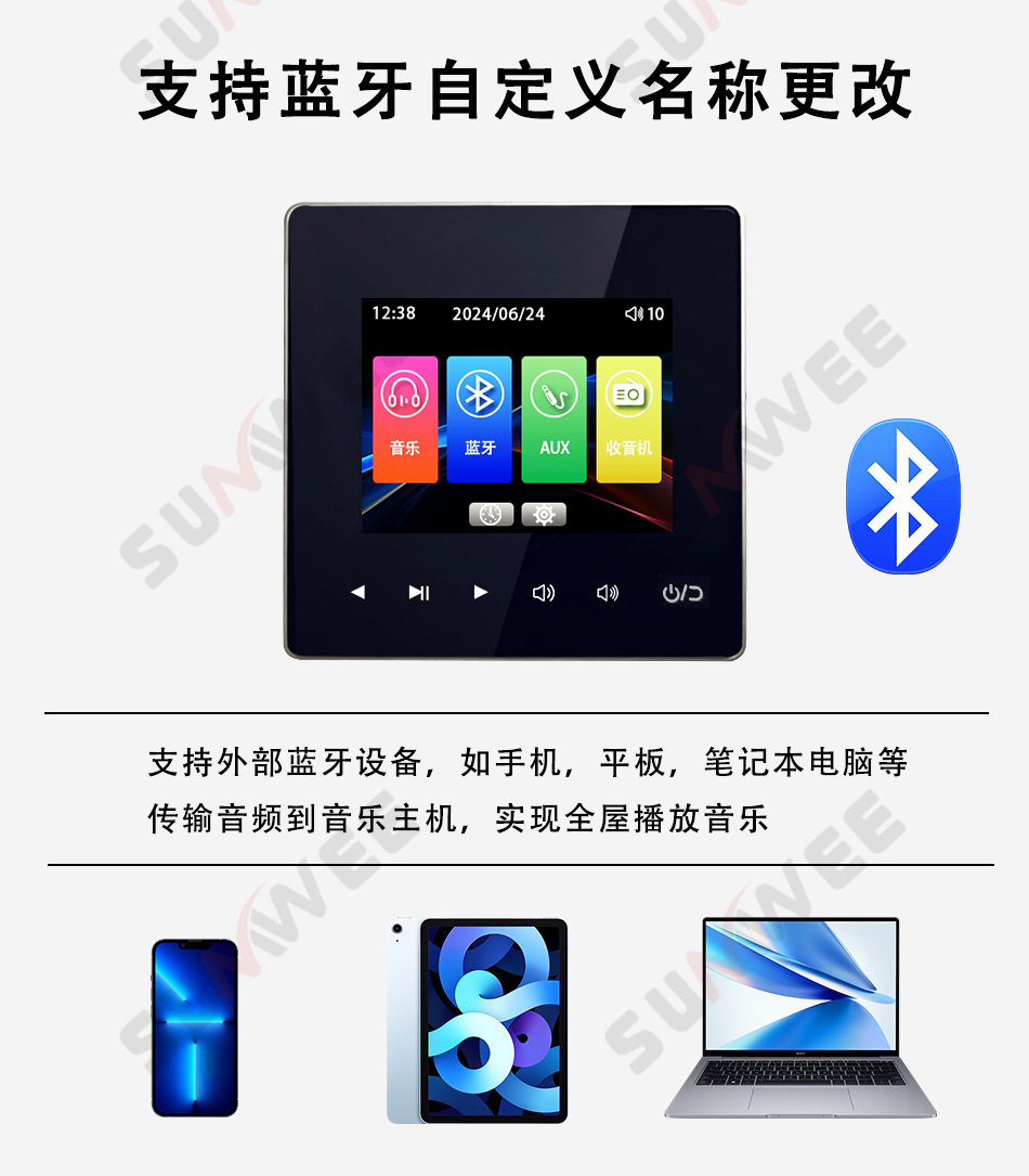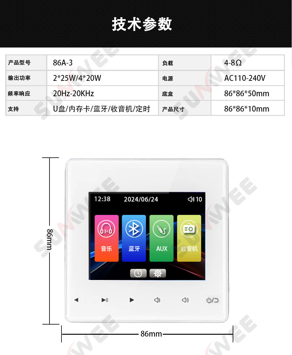 Family hotel type 86 embedded bluetooth amplifier background music host player ceiling audio control panel