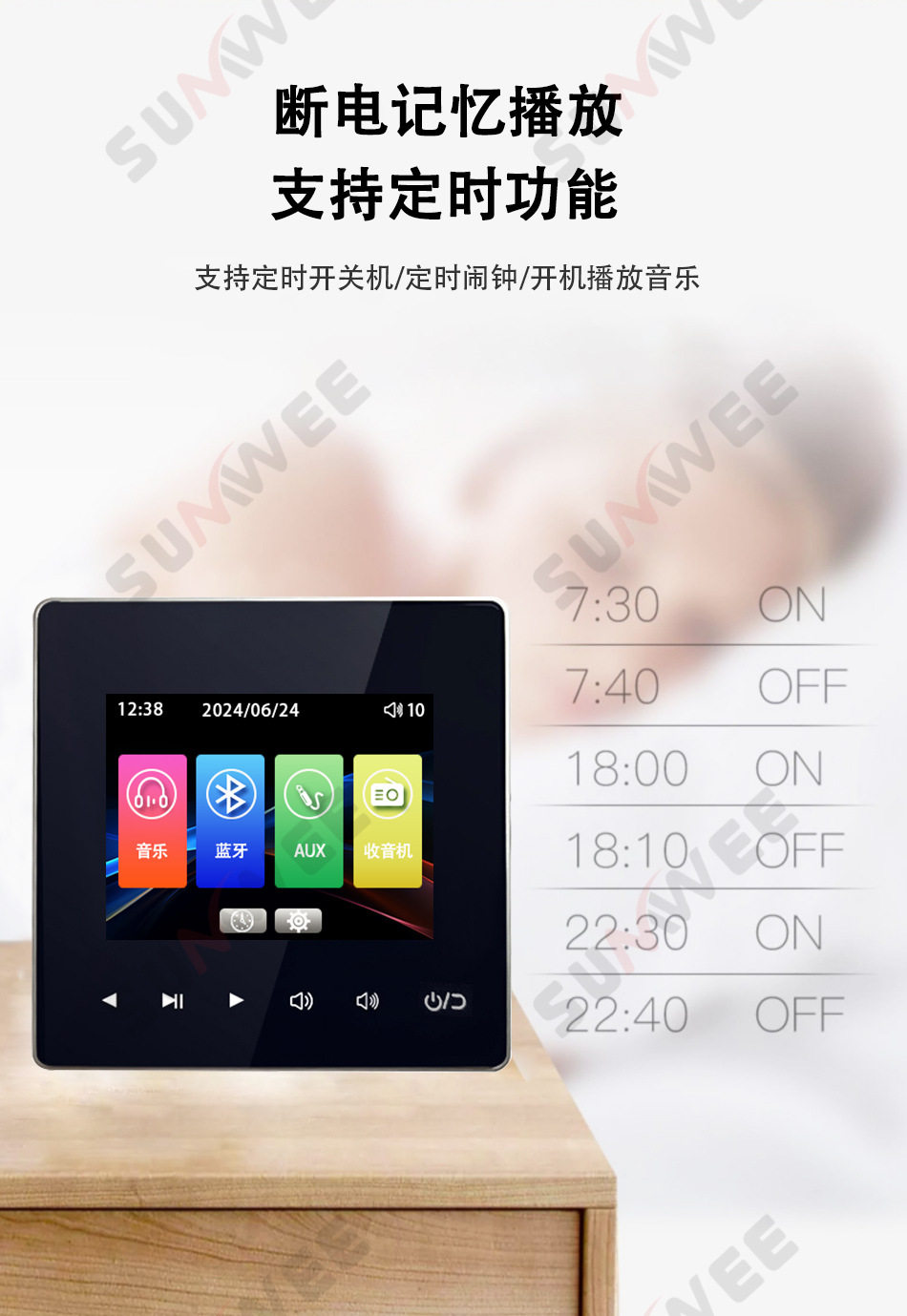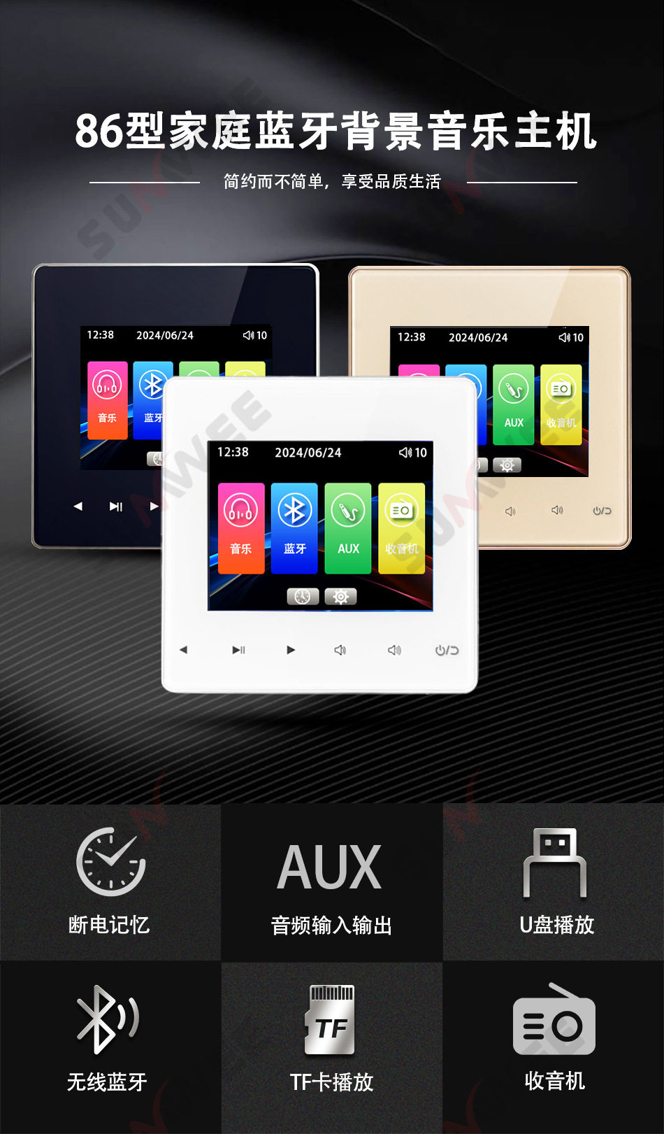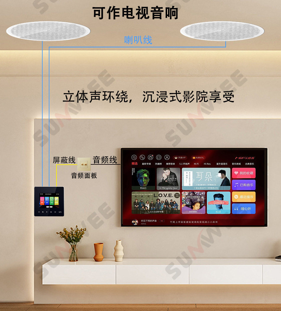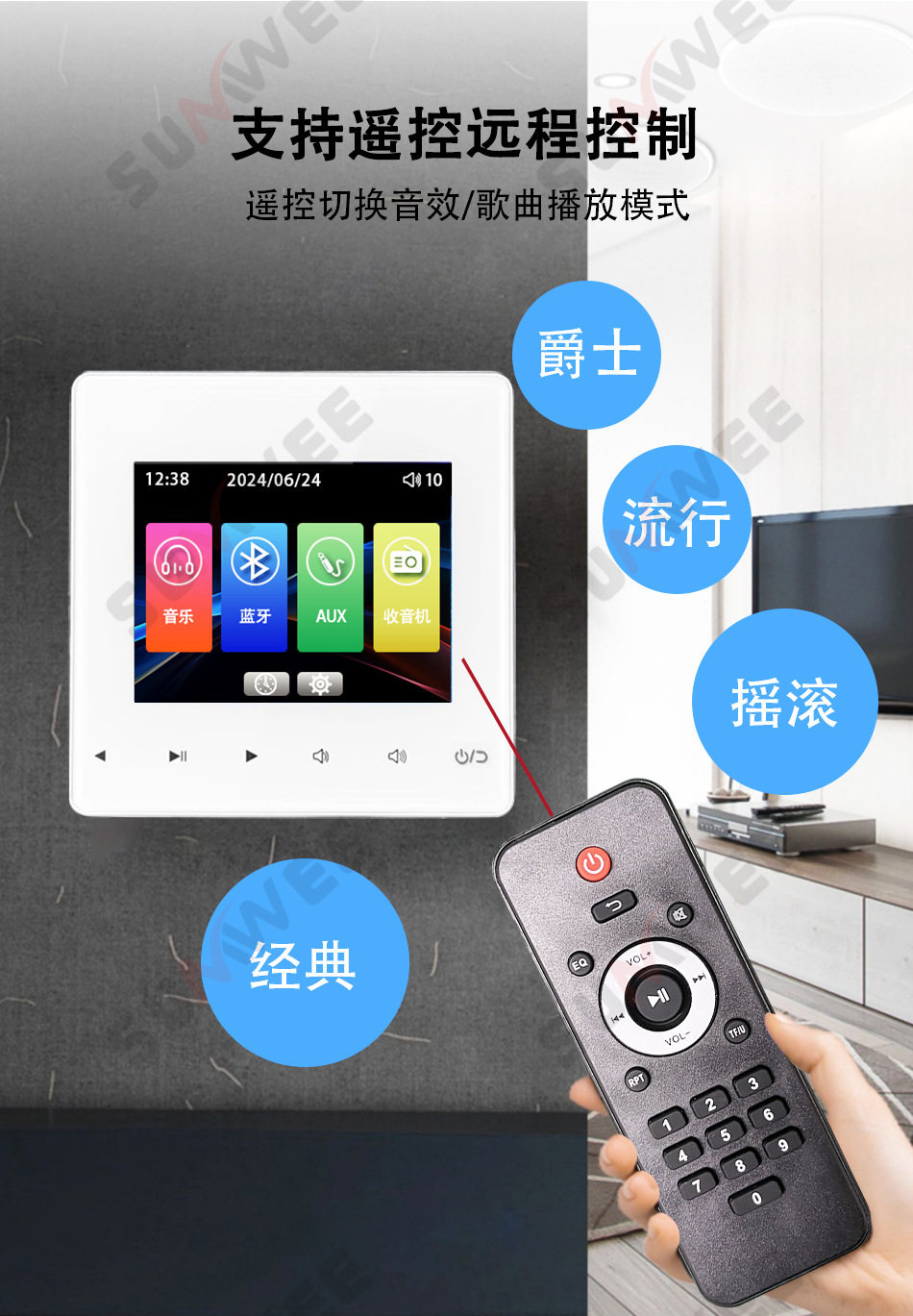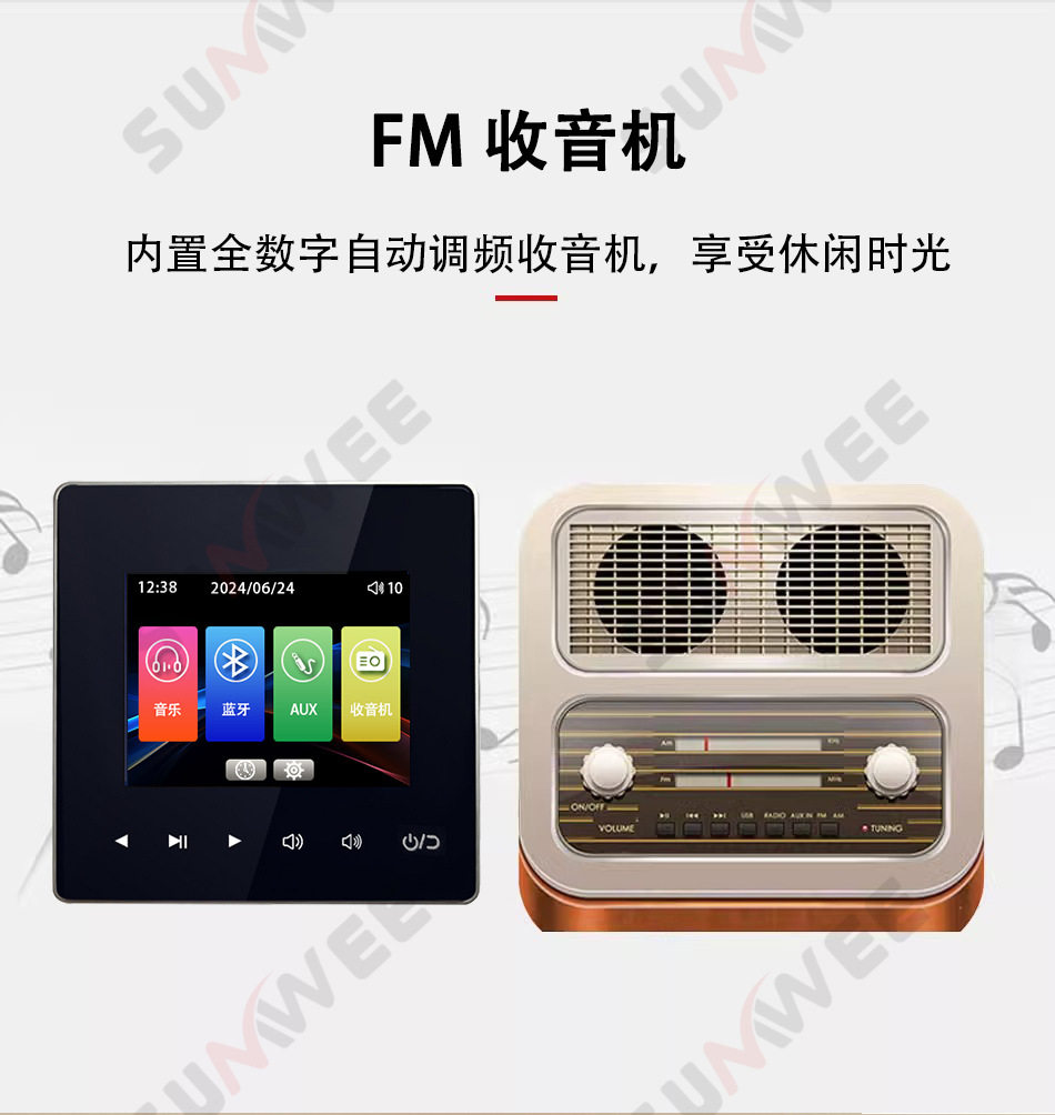 Family hotel type 86 embedded bluetooth amplifier background music host player ceiling audio control panel