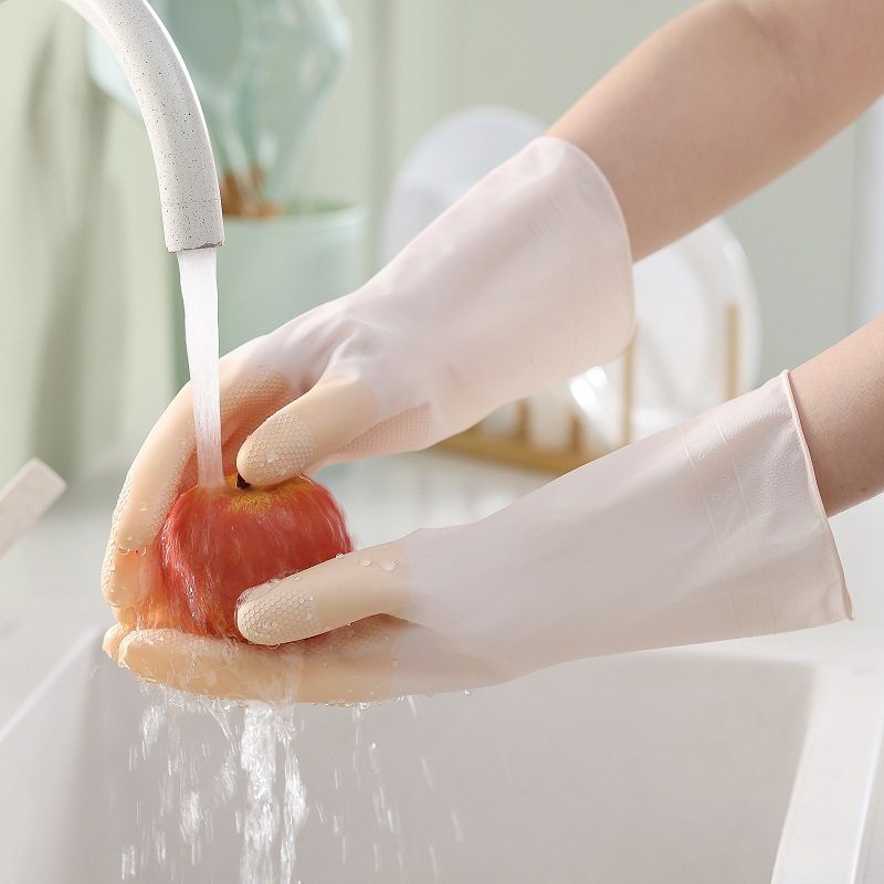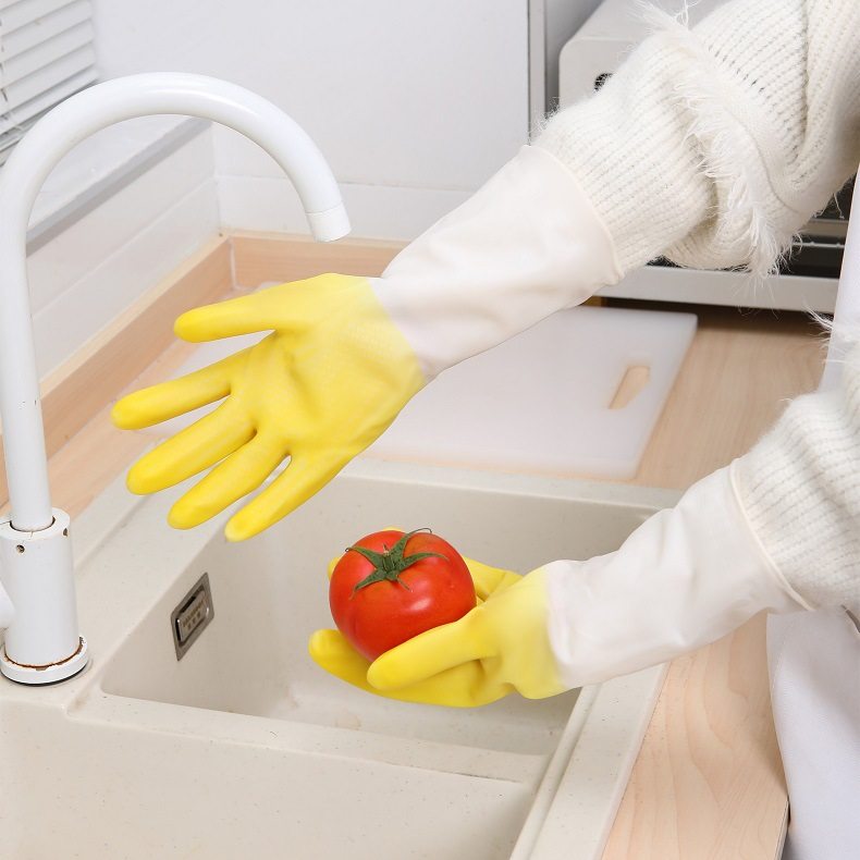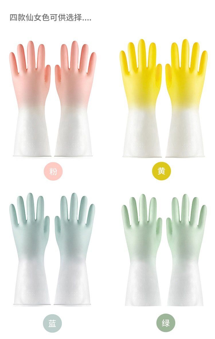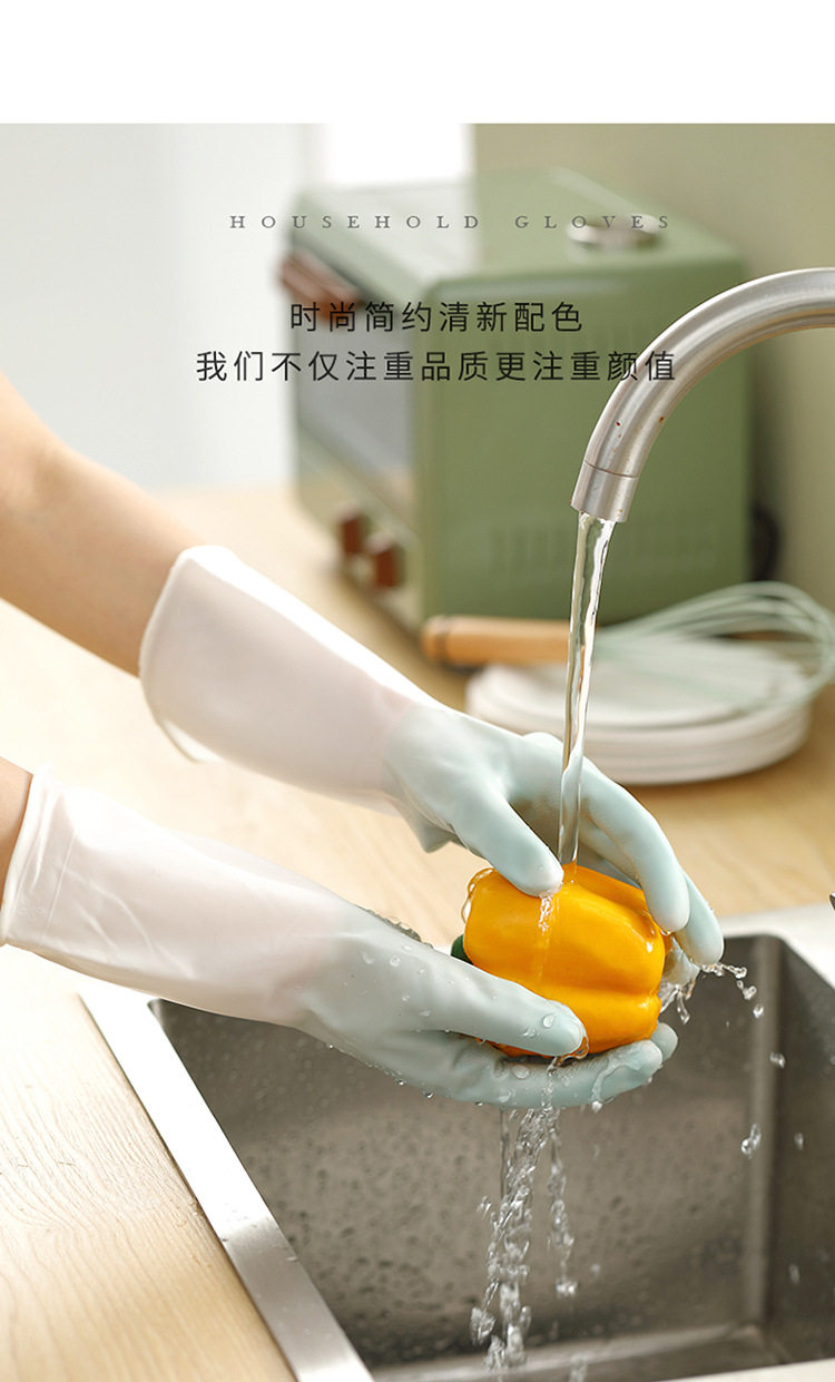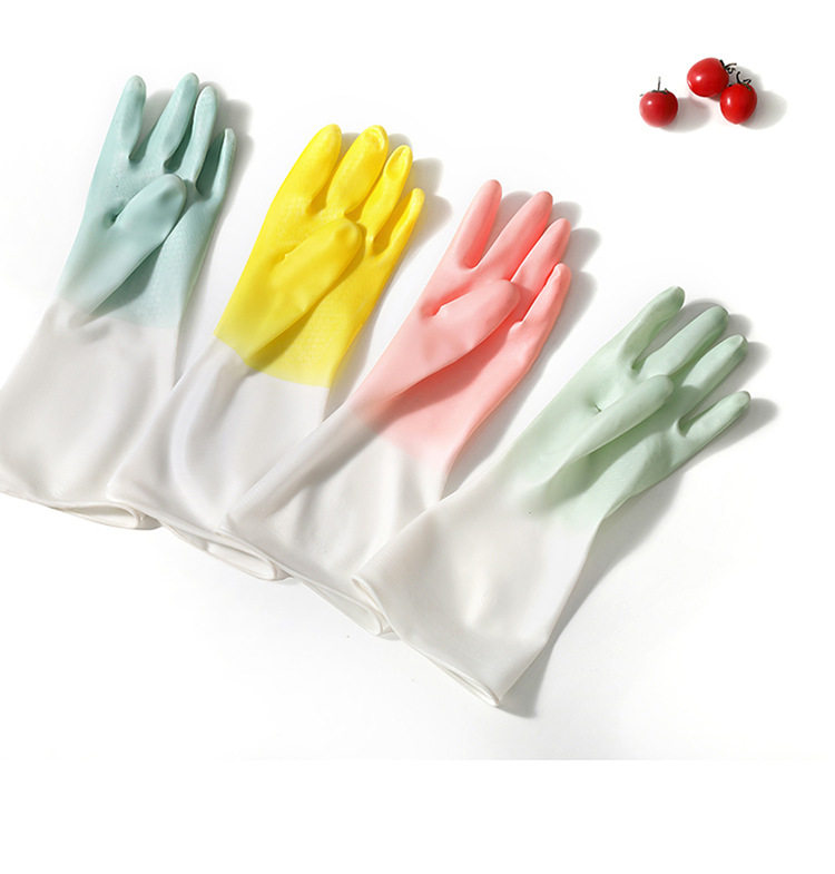White two-color gloves dish washing gloves women's kitchen fairy latex laundry waterproof plastic rubber housework bowl