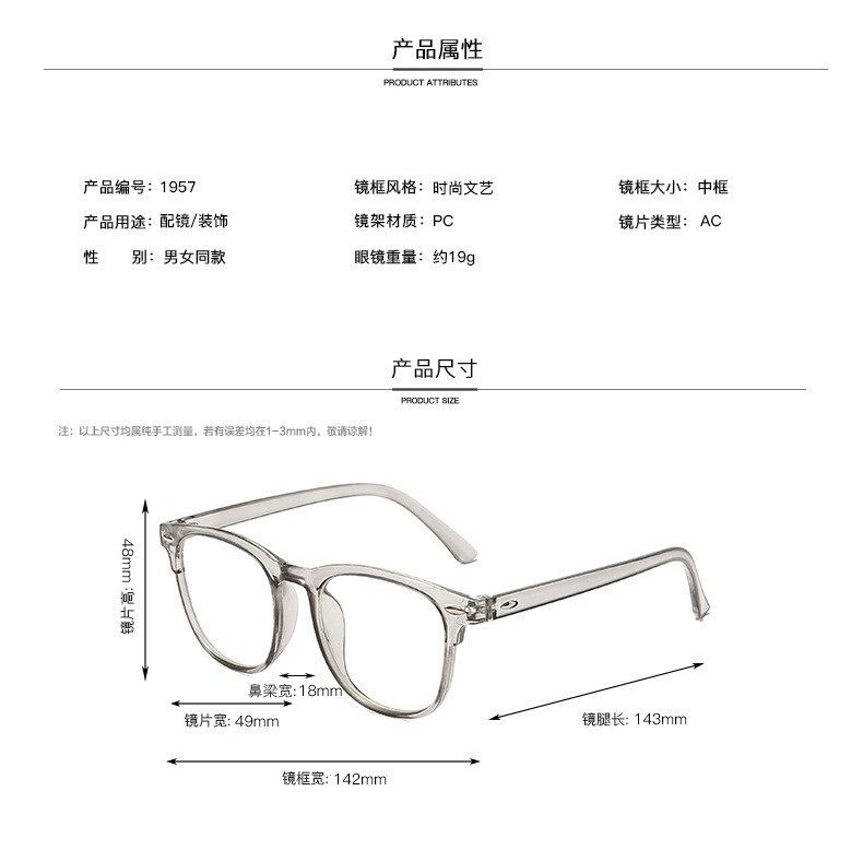 | Frame color | Black frame,Transparent frame,Transparent gray frame,Transparent tea frame,Tortoiseshell frame |