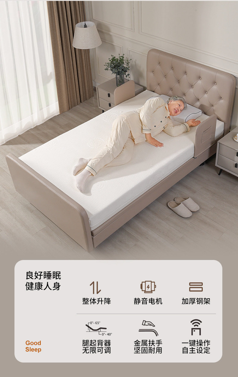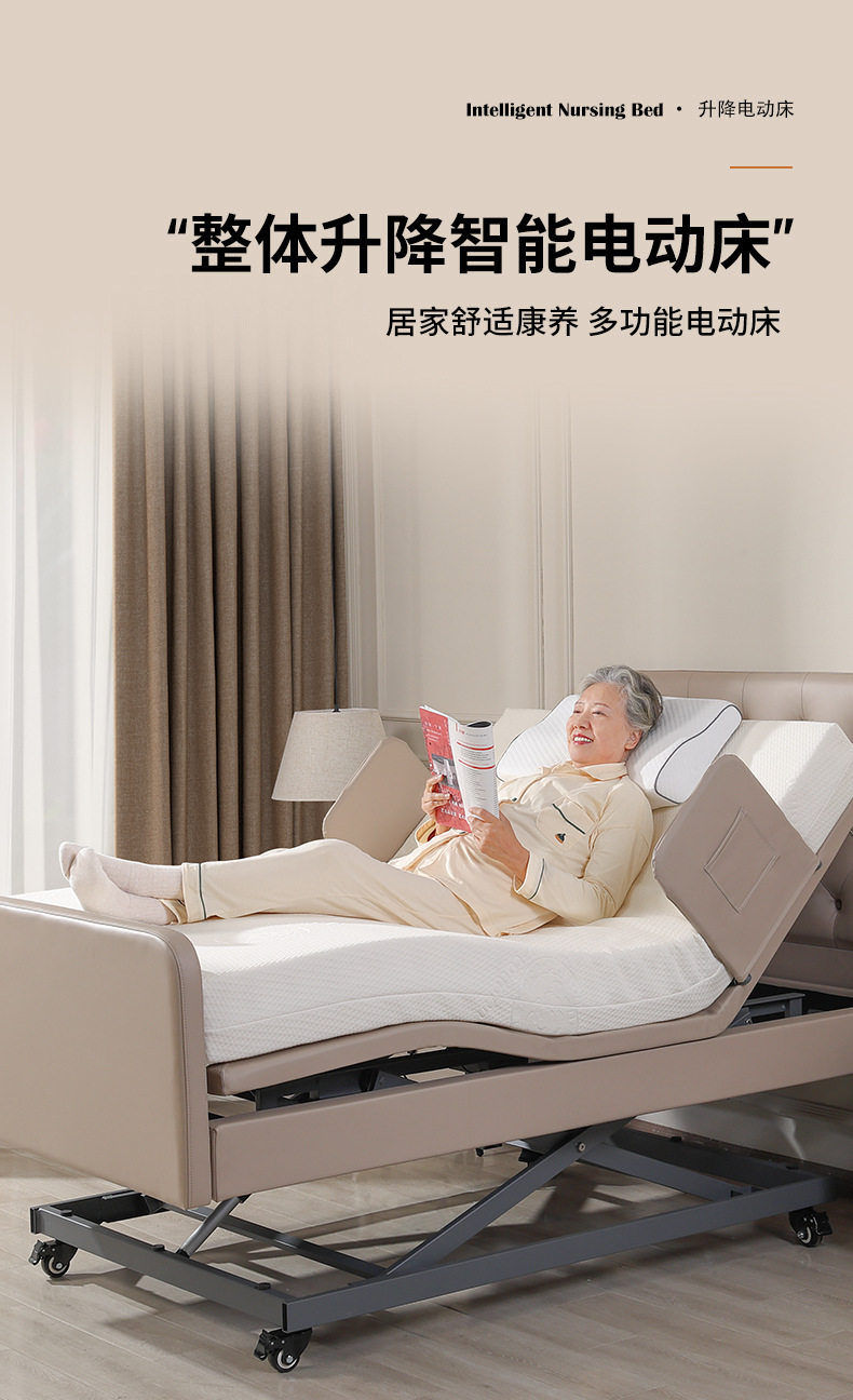 Multifunctional Electric Adjustable Nursing Bed for the Elderly, Three-Function Fully Automatic Overall Adjustable Single Bed