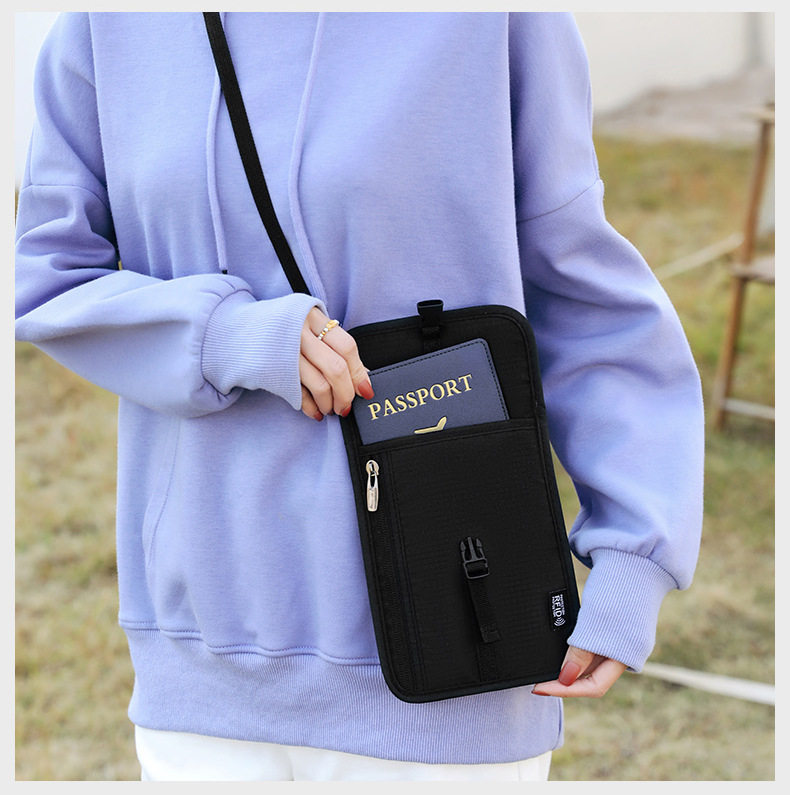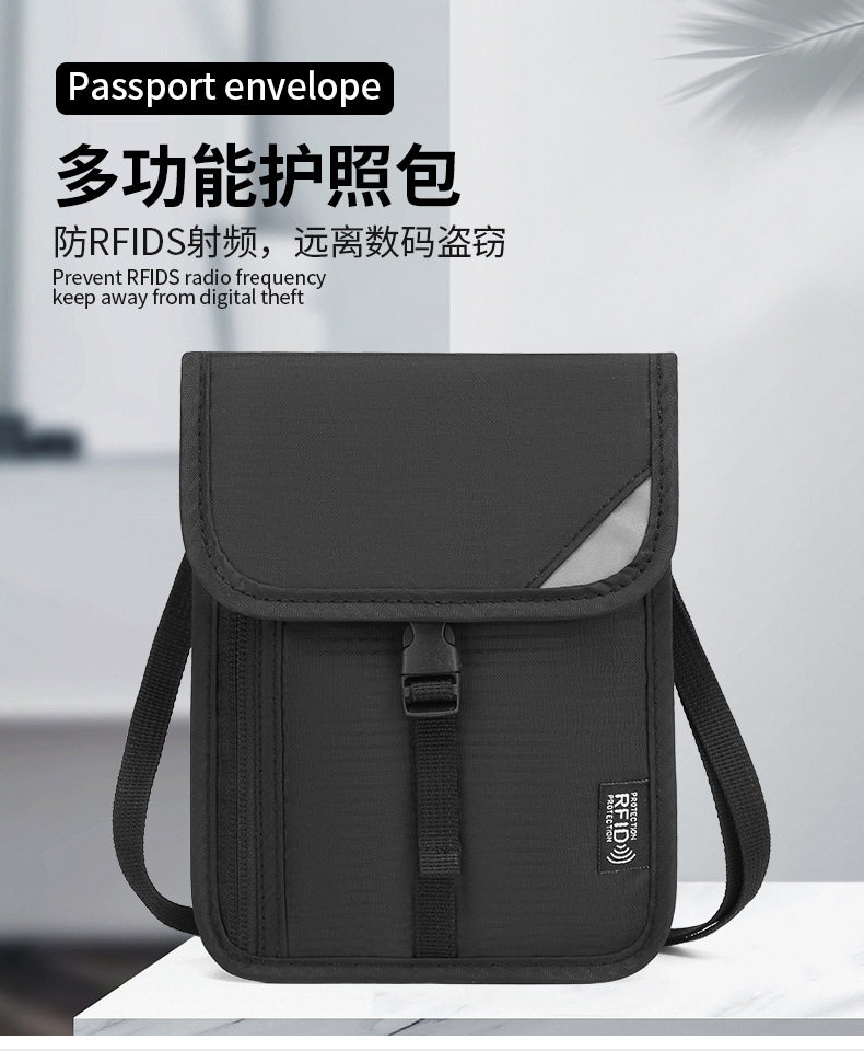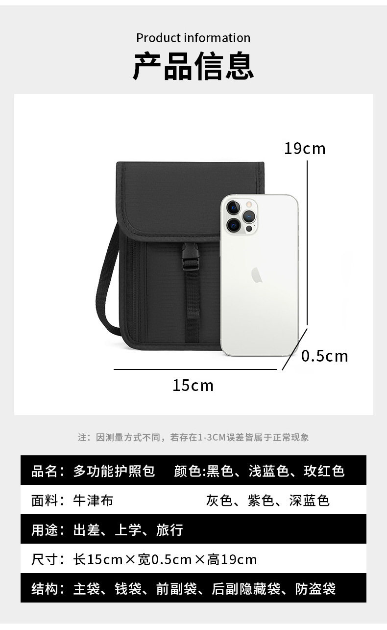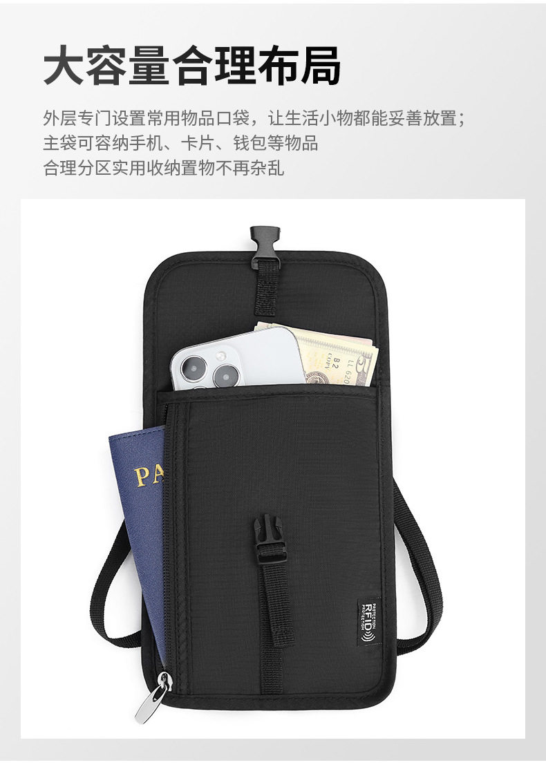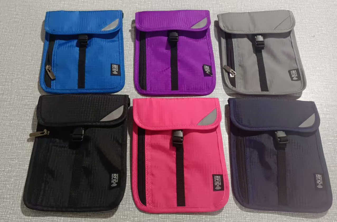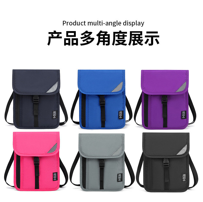 Factory direct RFID anti-shielding theft brush large capacity can be stored multi-layer hanging neck Oxford cloth passport ID bag
