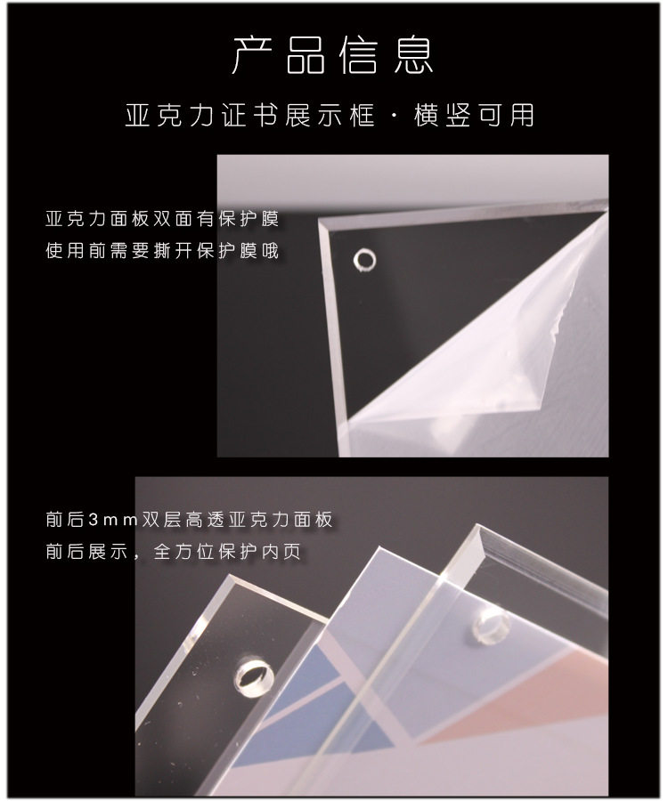 Transparent Acrylic A4 Certificate Frame a3 Business License Copy Frame 8K Picture Frame Pendant Wall Display Frame