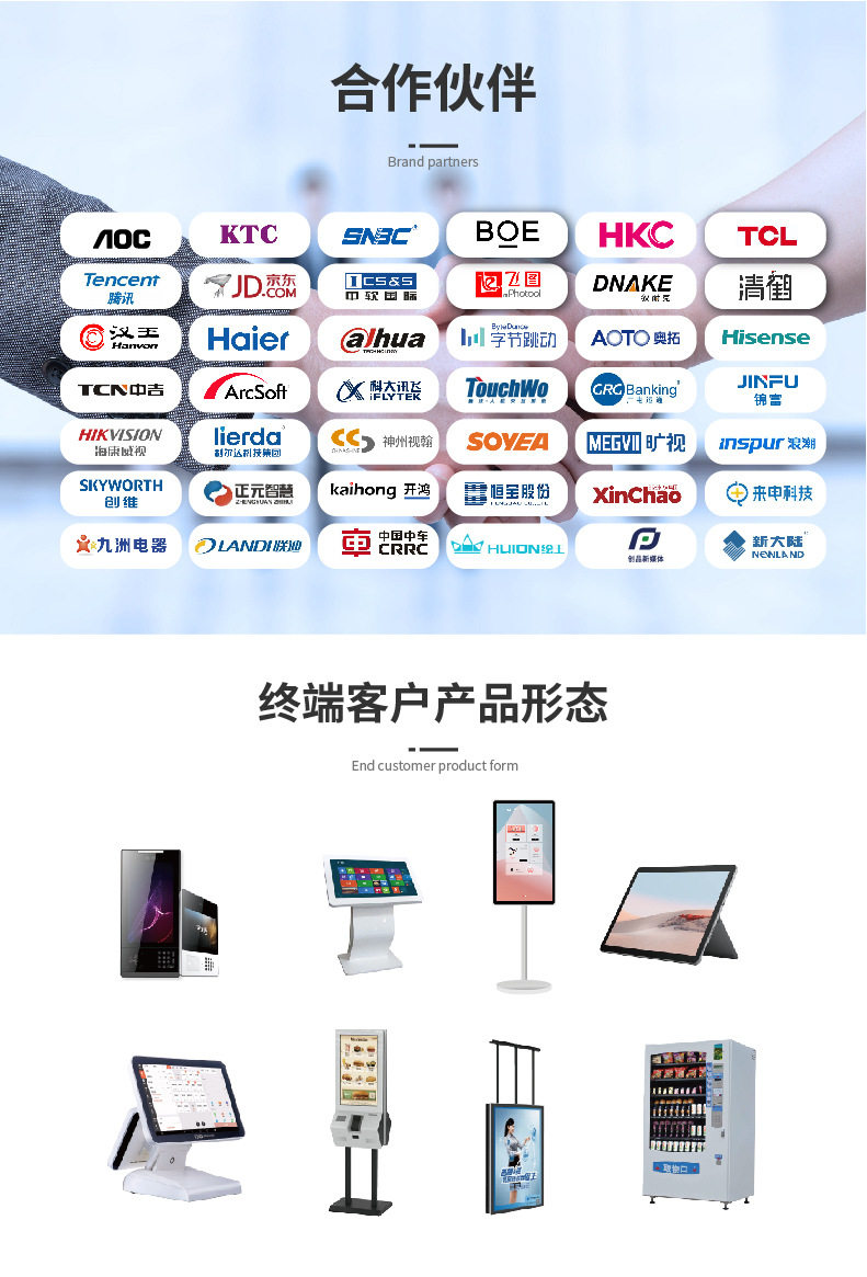 | Use environment | Advertising machine, touch all-in-one machine, smart commercial display, digital signage, commercial display, self-service terminal, etc |