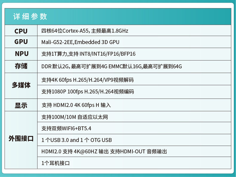 | Processor | Quad-core 64 slotcortex-a55, with a maximum frequency of 2.0ghz |