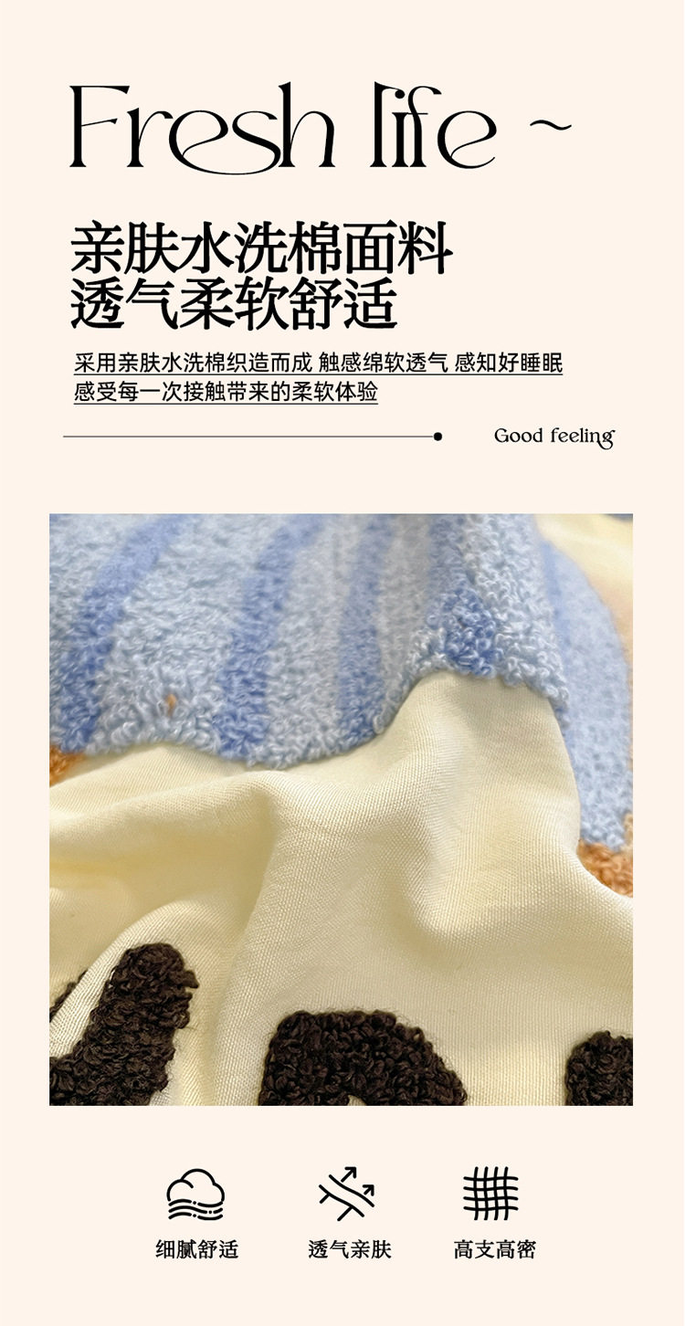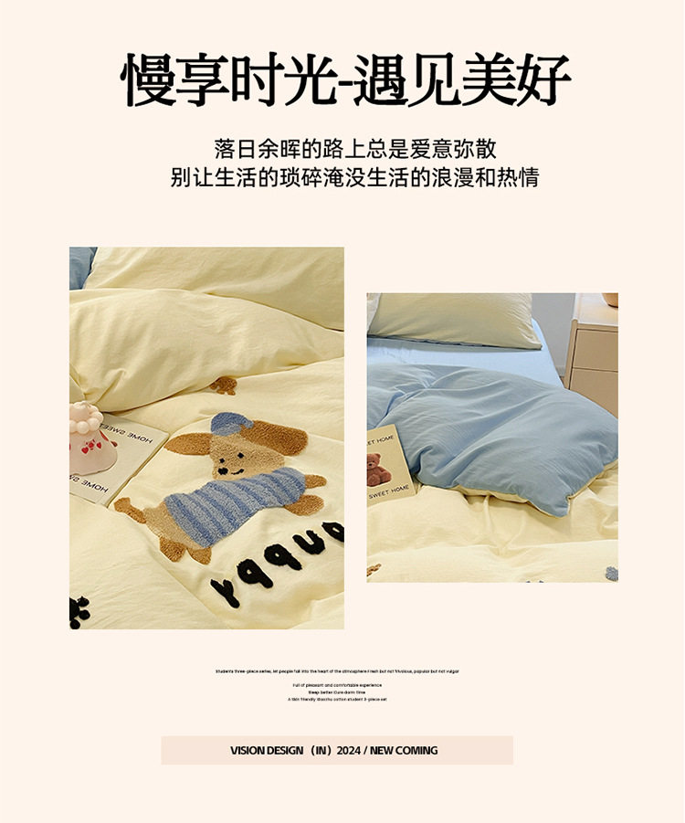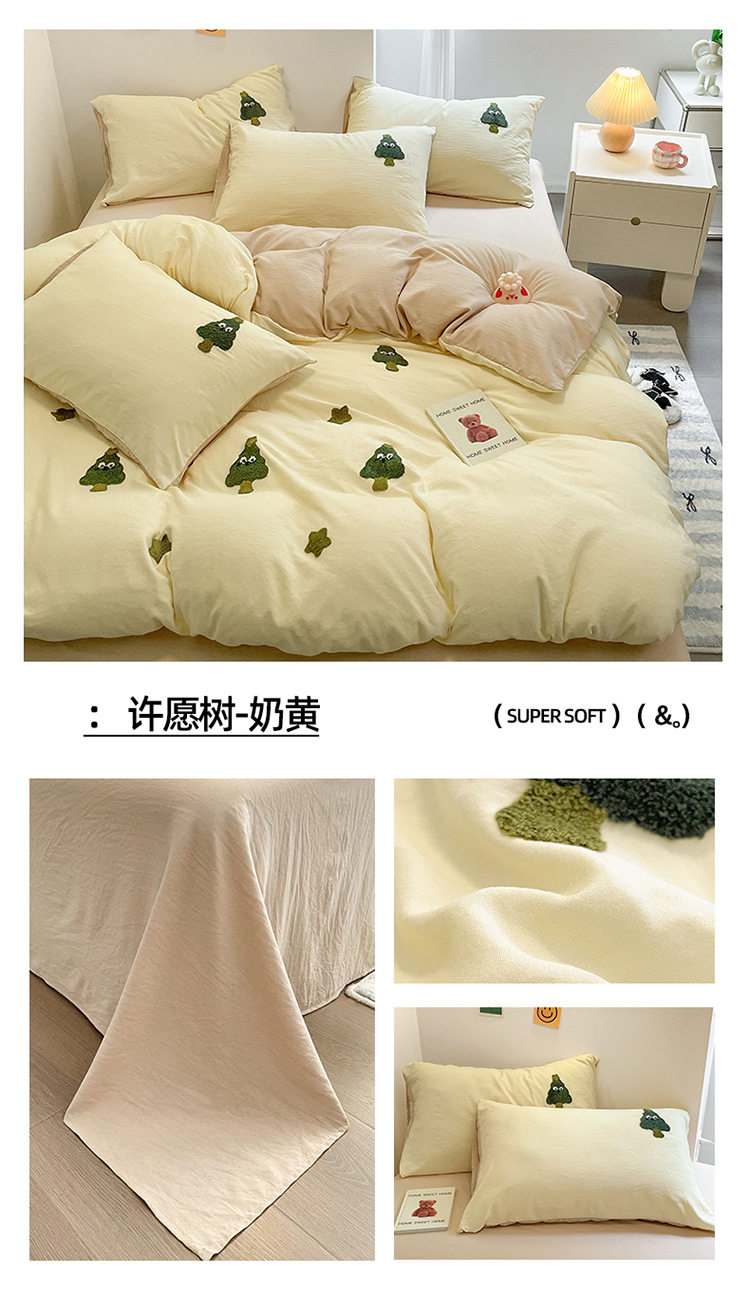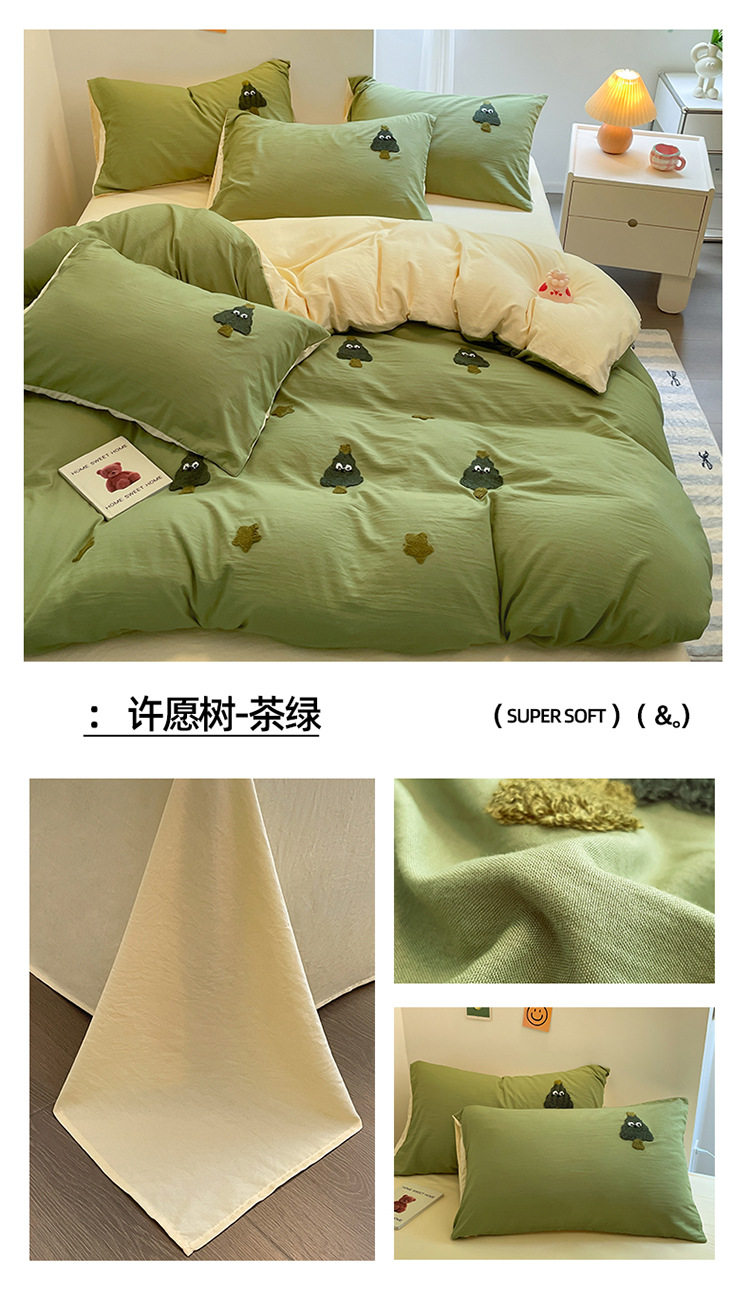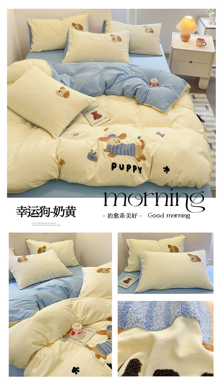 Class A Bedding Four-piece Solid Color Cotton Cartoon Towel Embroidered Quilt Cover Skin-friendly Washable Cotton Student Dormitory Cute Kit