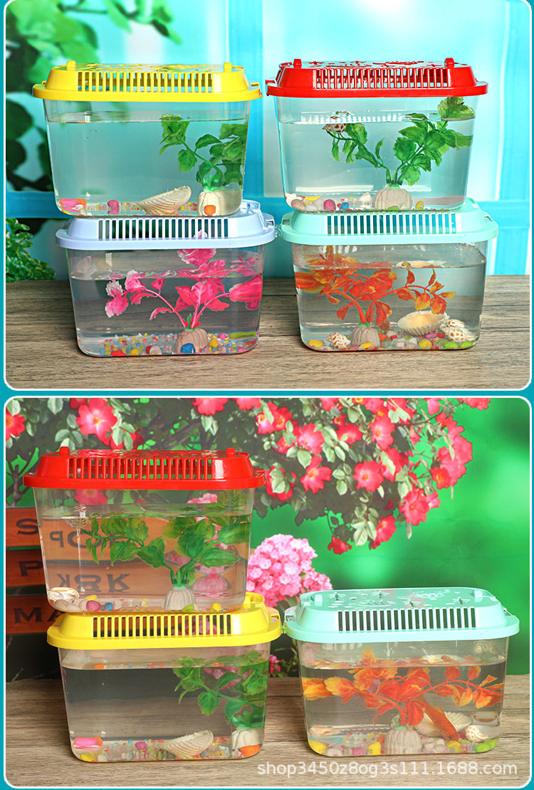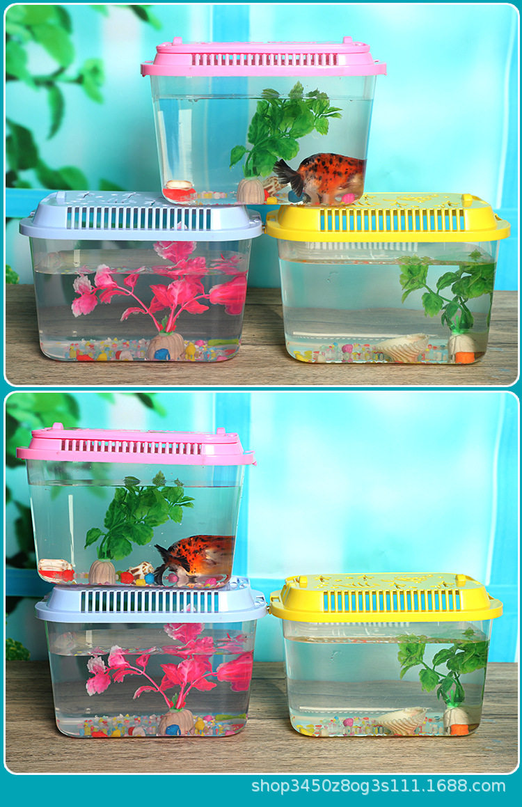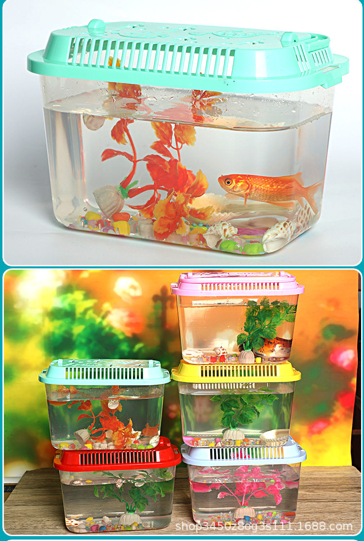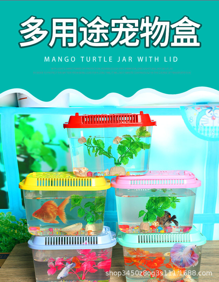 Portable Multi-purpose Pet Feeding Box Creative Living Room Desktop Turtle Tank Box Transparent Plastic Goldfish Tank Aquarium