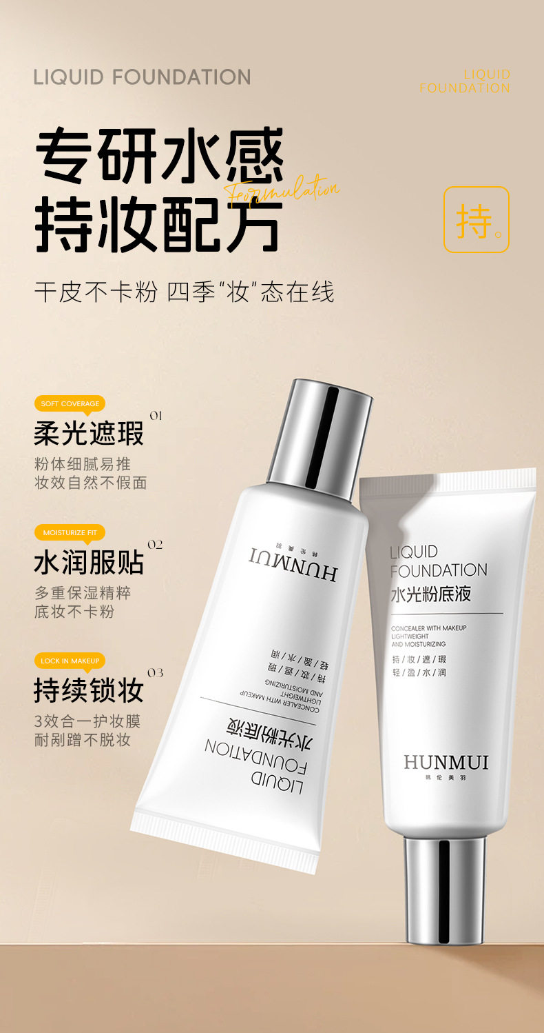 Han Lun Meiyu Water Light Liquid Foundation Nude Makeup Natural Creamy Skin Non-Stuck Powder Long-Lasting Concealer Bb Cream Makeup Primer Wholesale