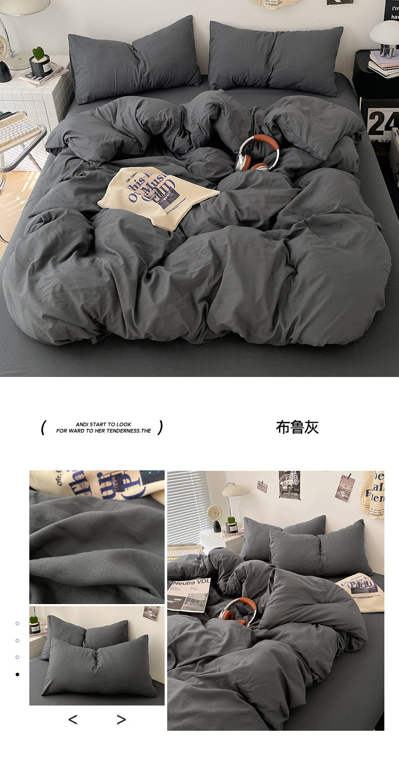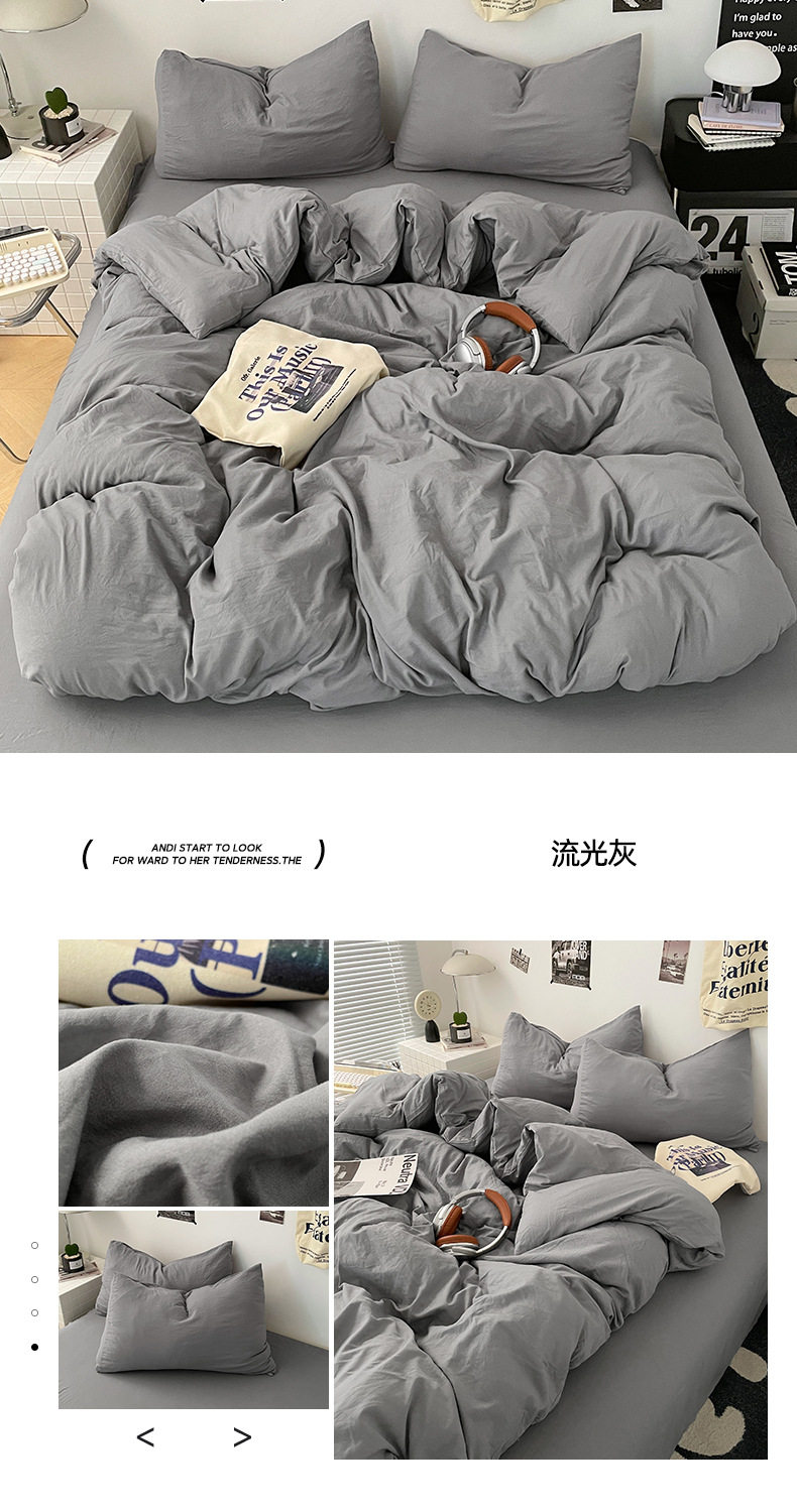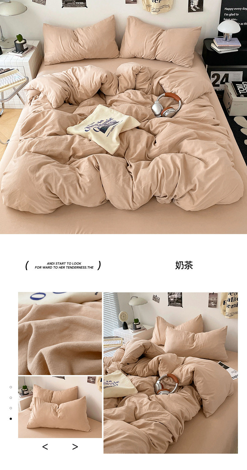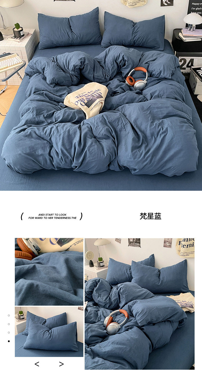 Ins Style Solid Color Cotton Four-piece Set Class A Maternal and Infant Grade Naked Sleeping Bed Sheet Quilt Cover Water Washed Cotton Bedding Three-piece Set