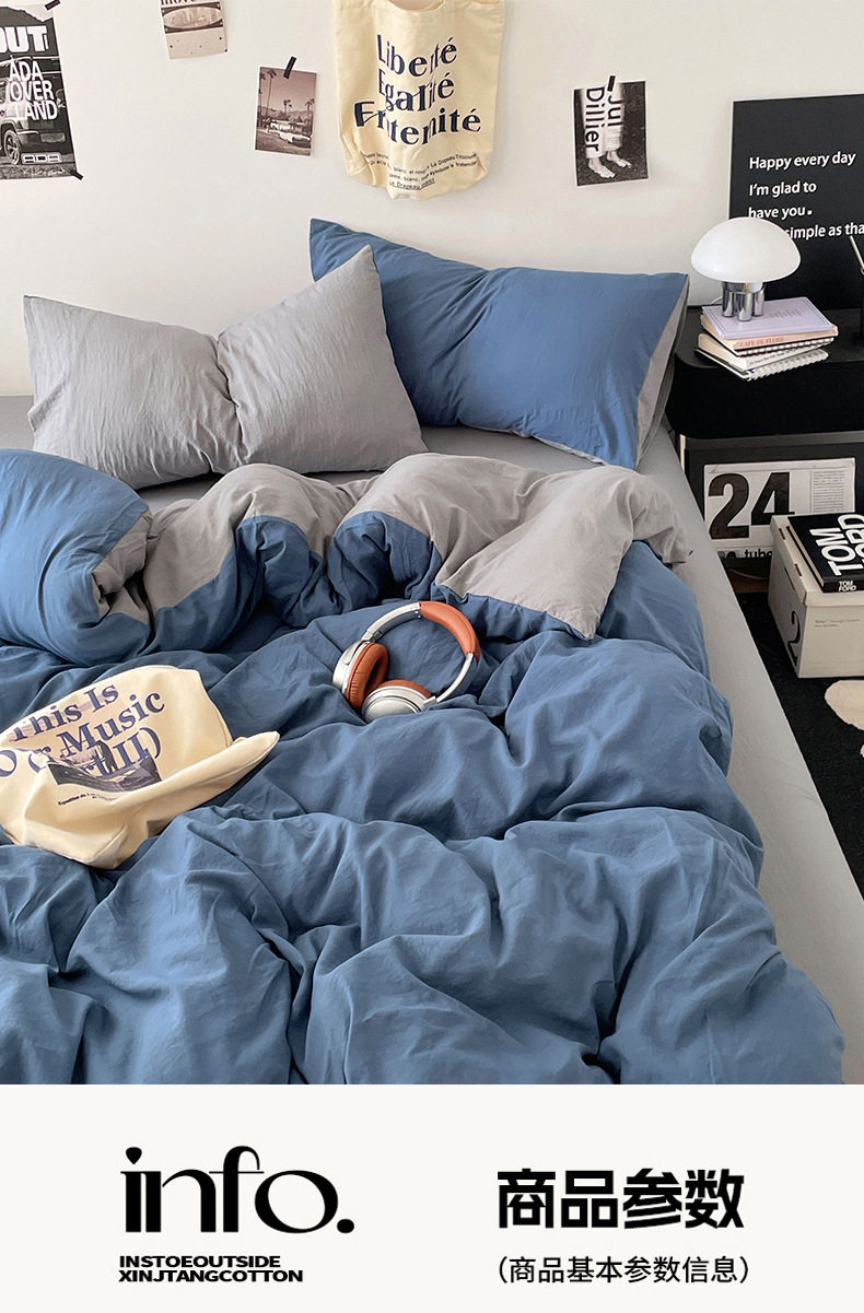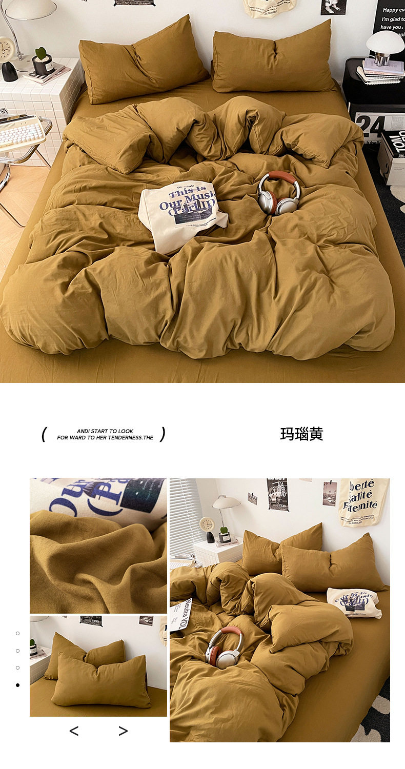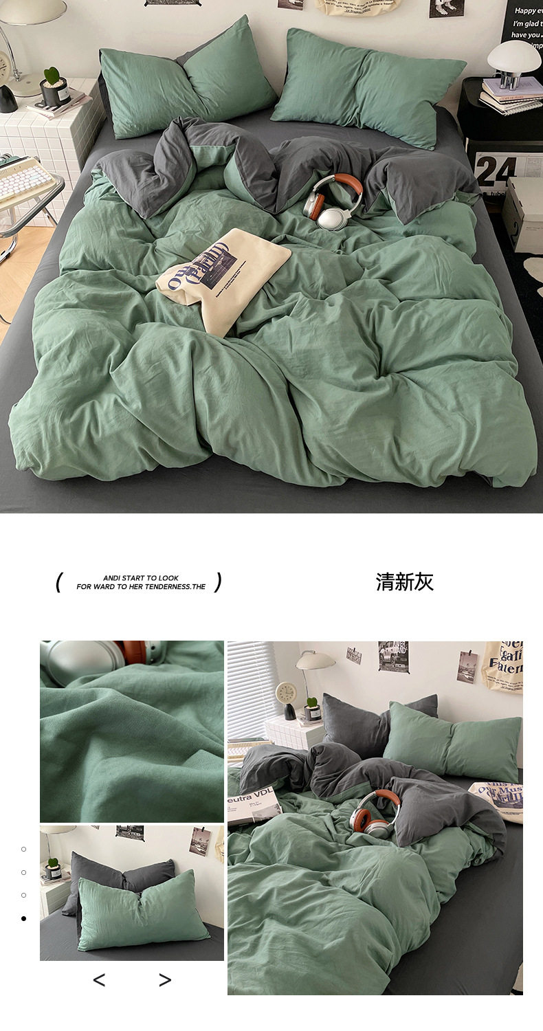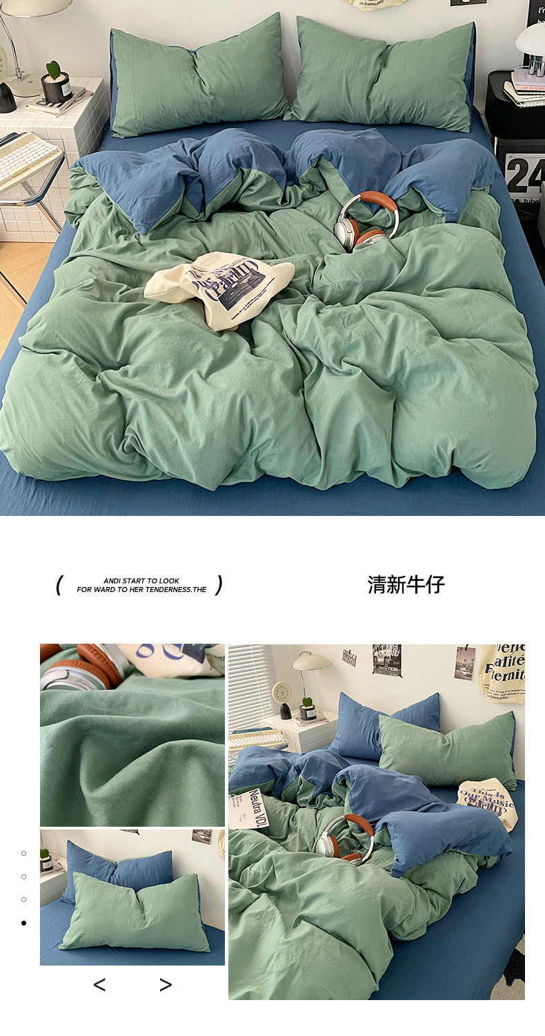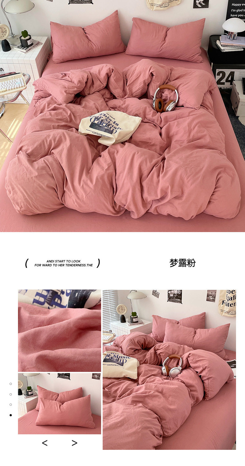 Ins Style Solid Color Cotton Four-piece Set Class A Maternal and Infant Grade Naked Sleeping Bed Sheet Quilt Cover Water Washed Cotton Bedding Three-piece Set