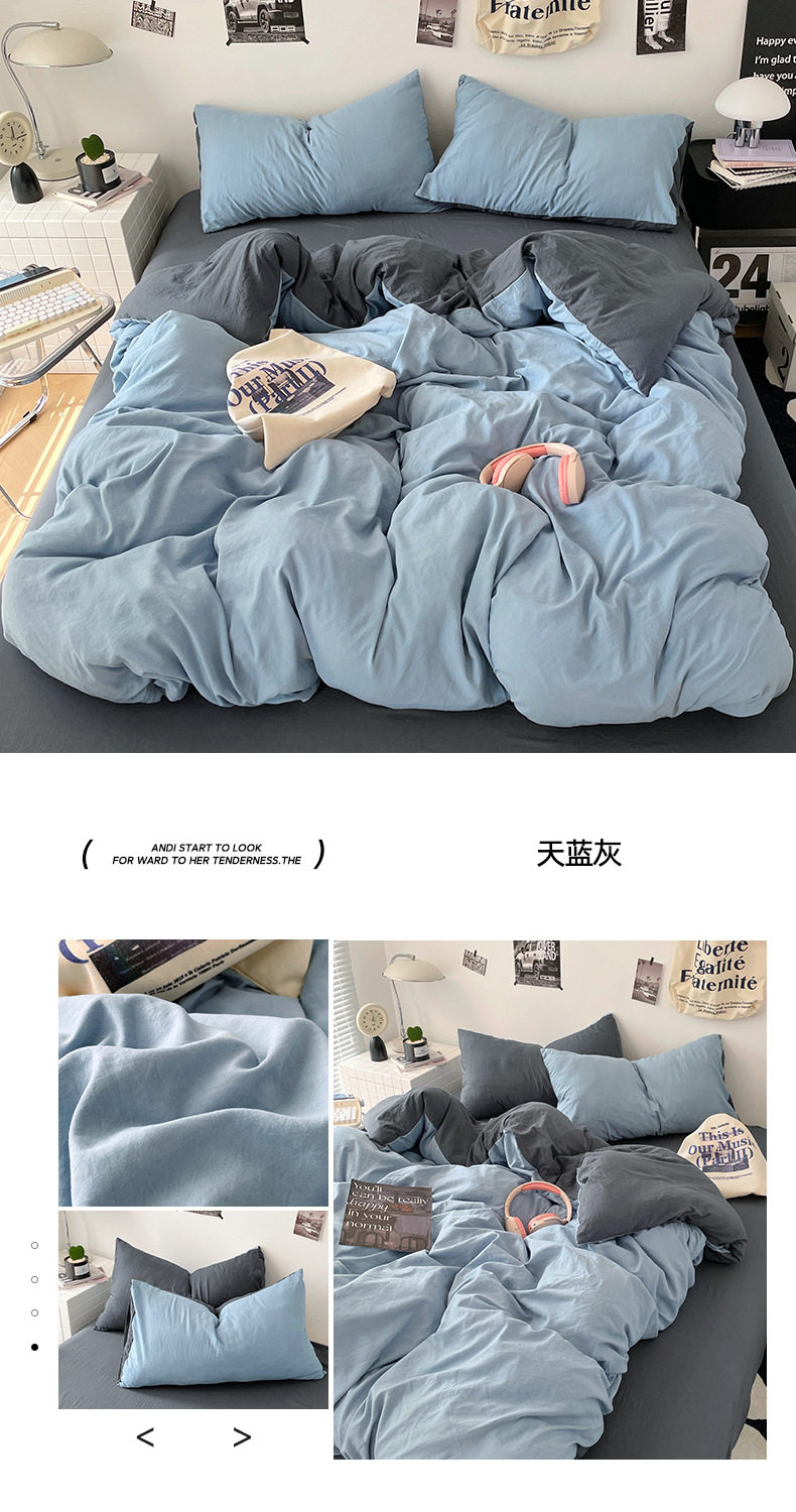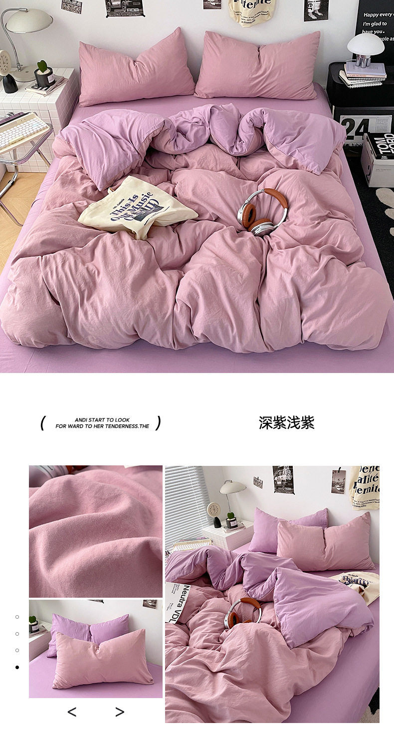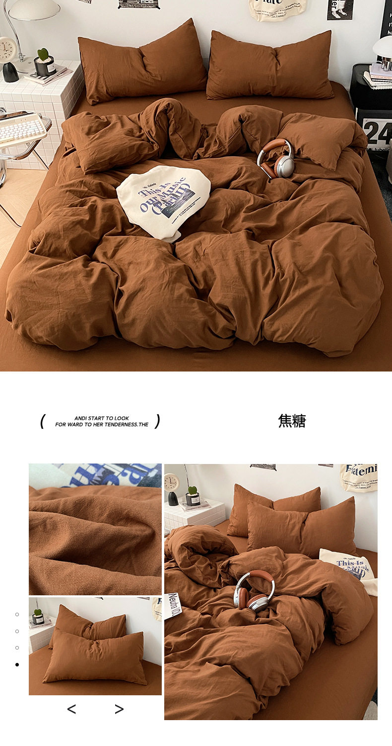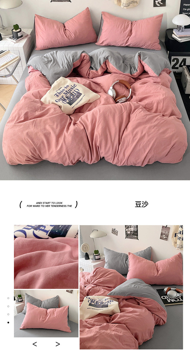 Ins Style Solid Color Cotton Four-piece Set Class A Maternal and Infant Grade Naked Sleeping Bed Sheet Quilt Cover Water Washed Cotton Bedding Three-piece Set