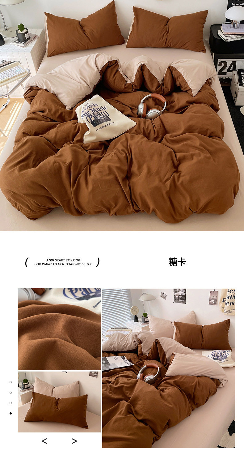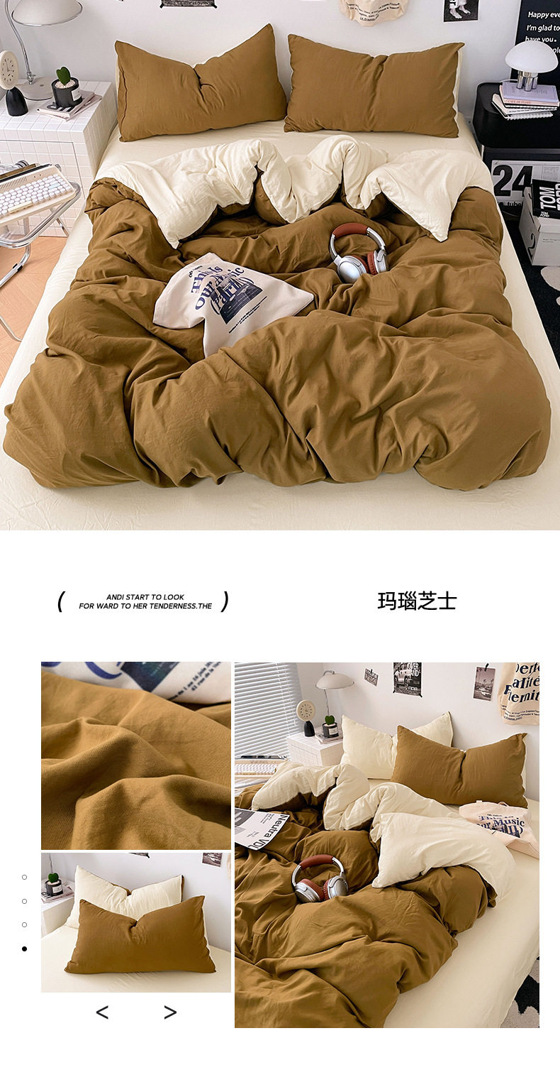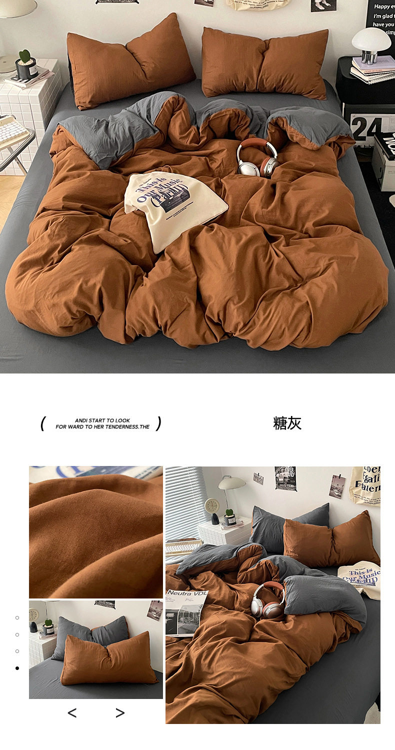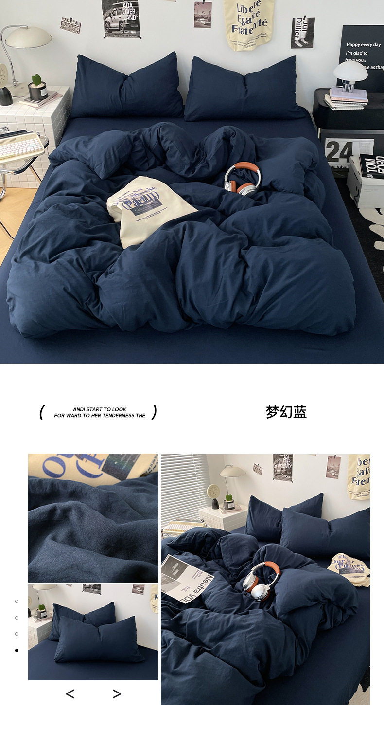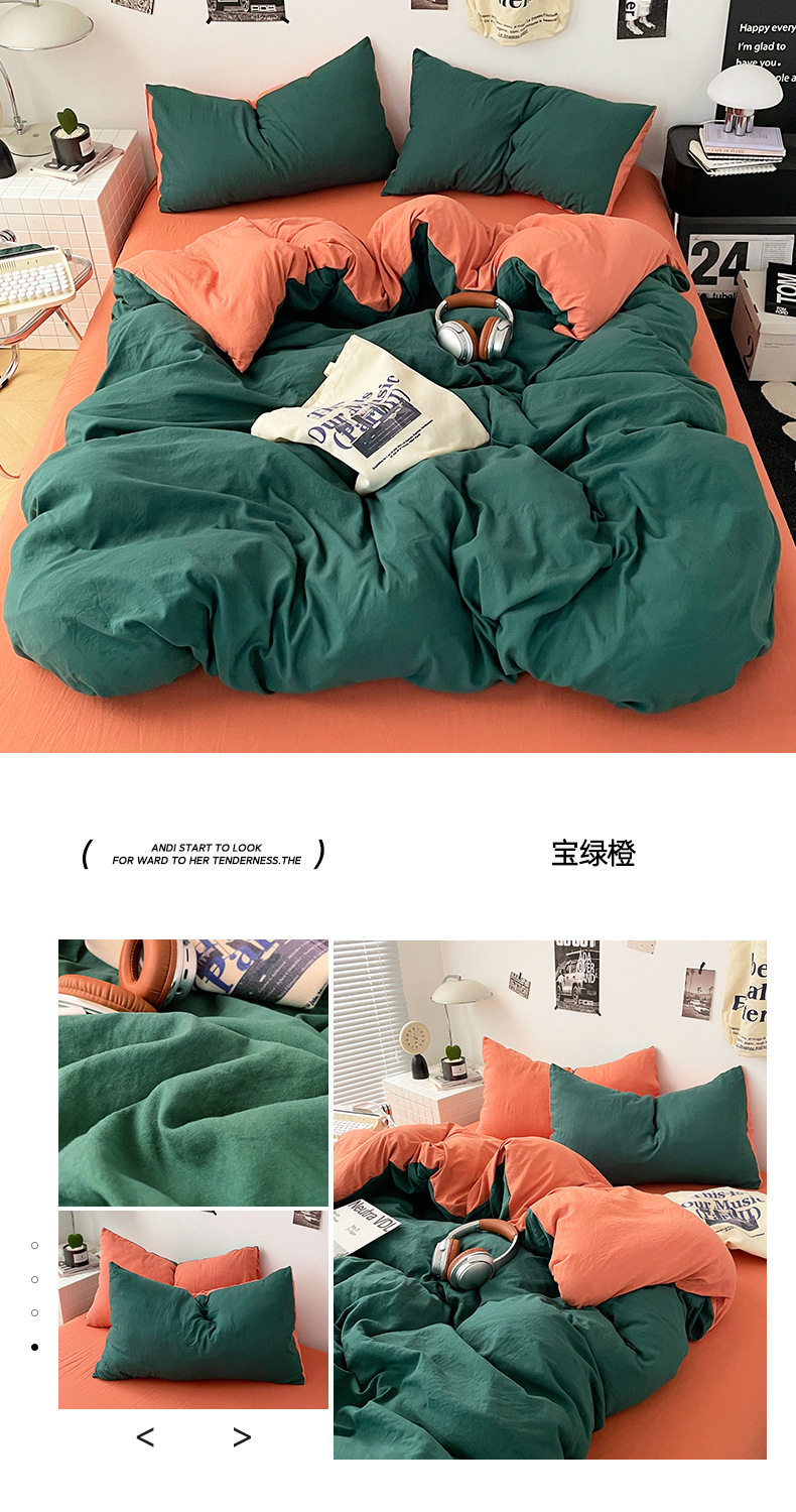 Ins Style Solid Color Cotton Four-piece Set Class A Maternal and Infant Grade Naked Sleeping Bed Sheet Quilt Cover Water Washed Cotton Bedding Three-piece Set