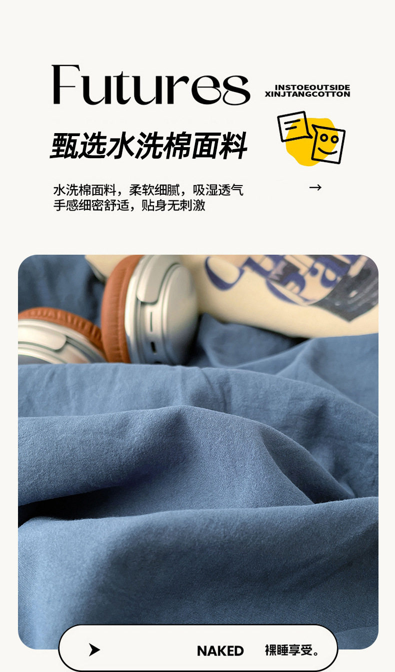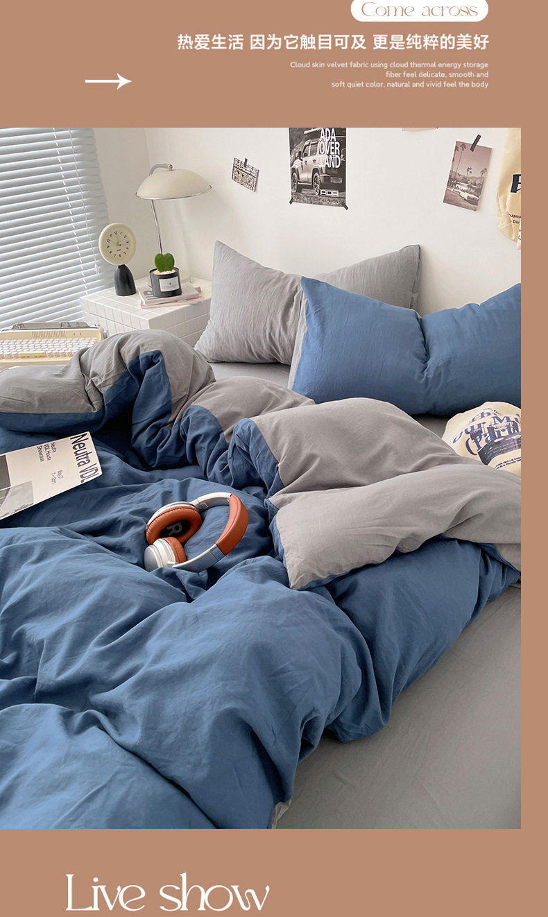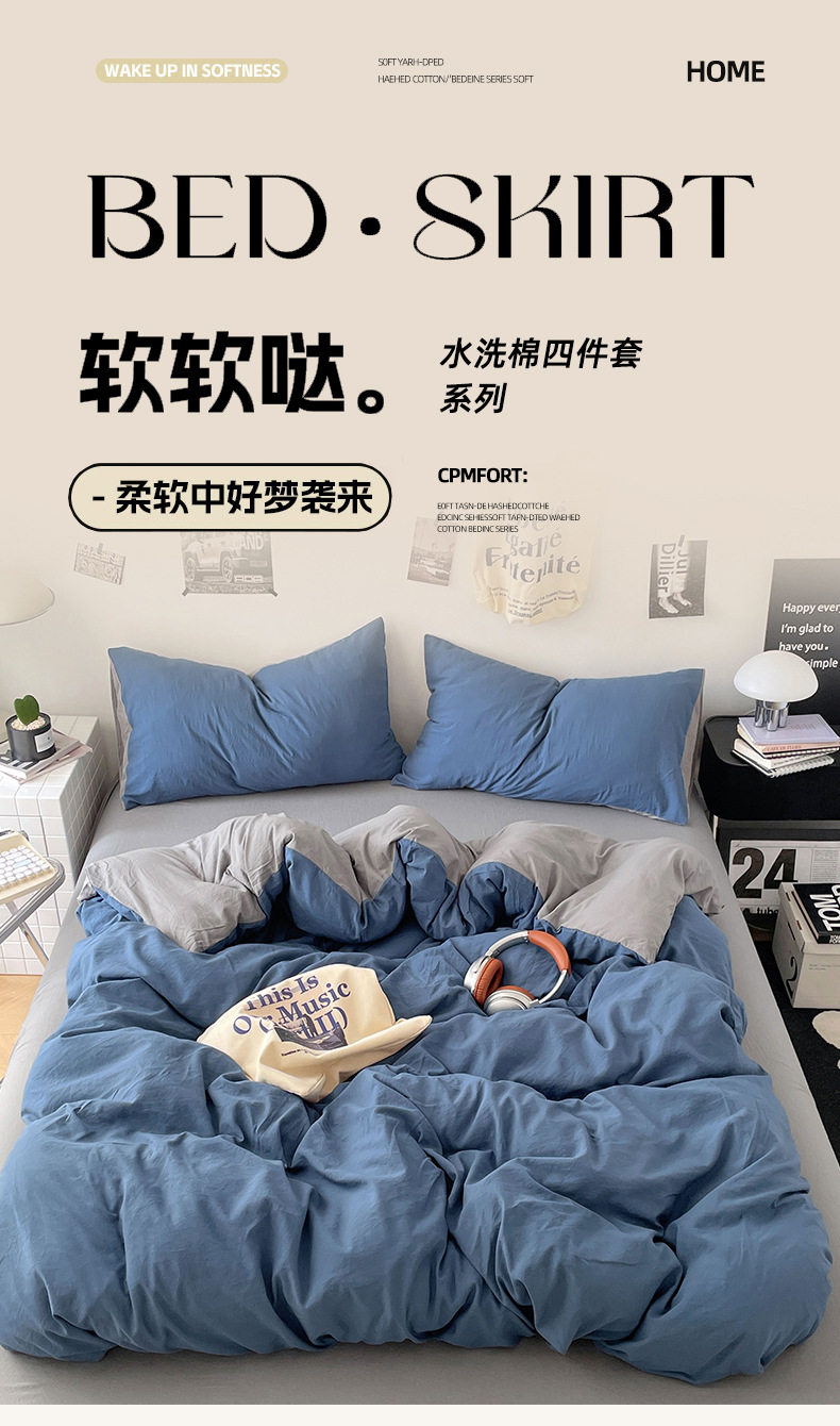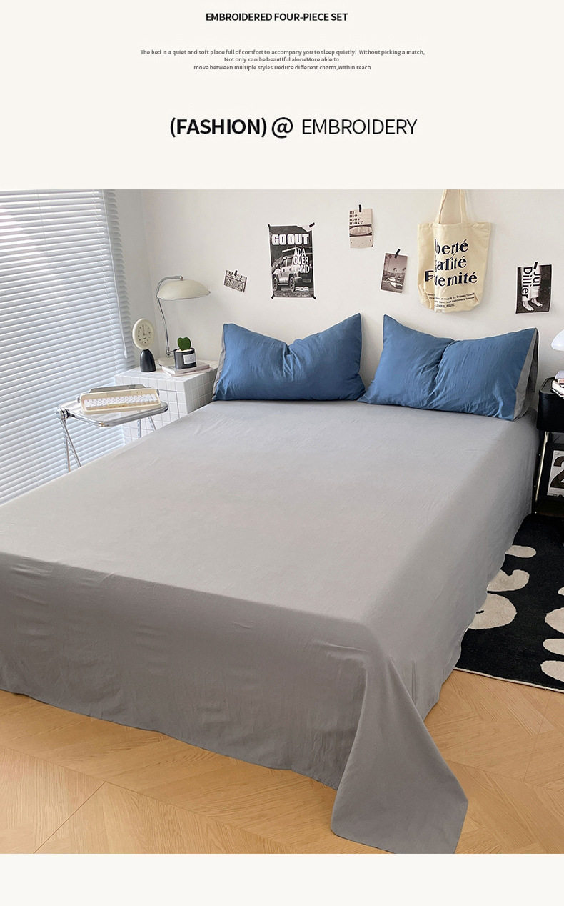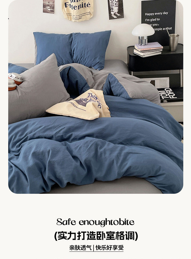 Ins Style Solid Color Cotton Four-piece Set Class A Maternal and Infant Grade Naked Sleeping Bed Sheet Quilt Cover Water Washed Cotton Bedding Three-piece Set