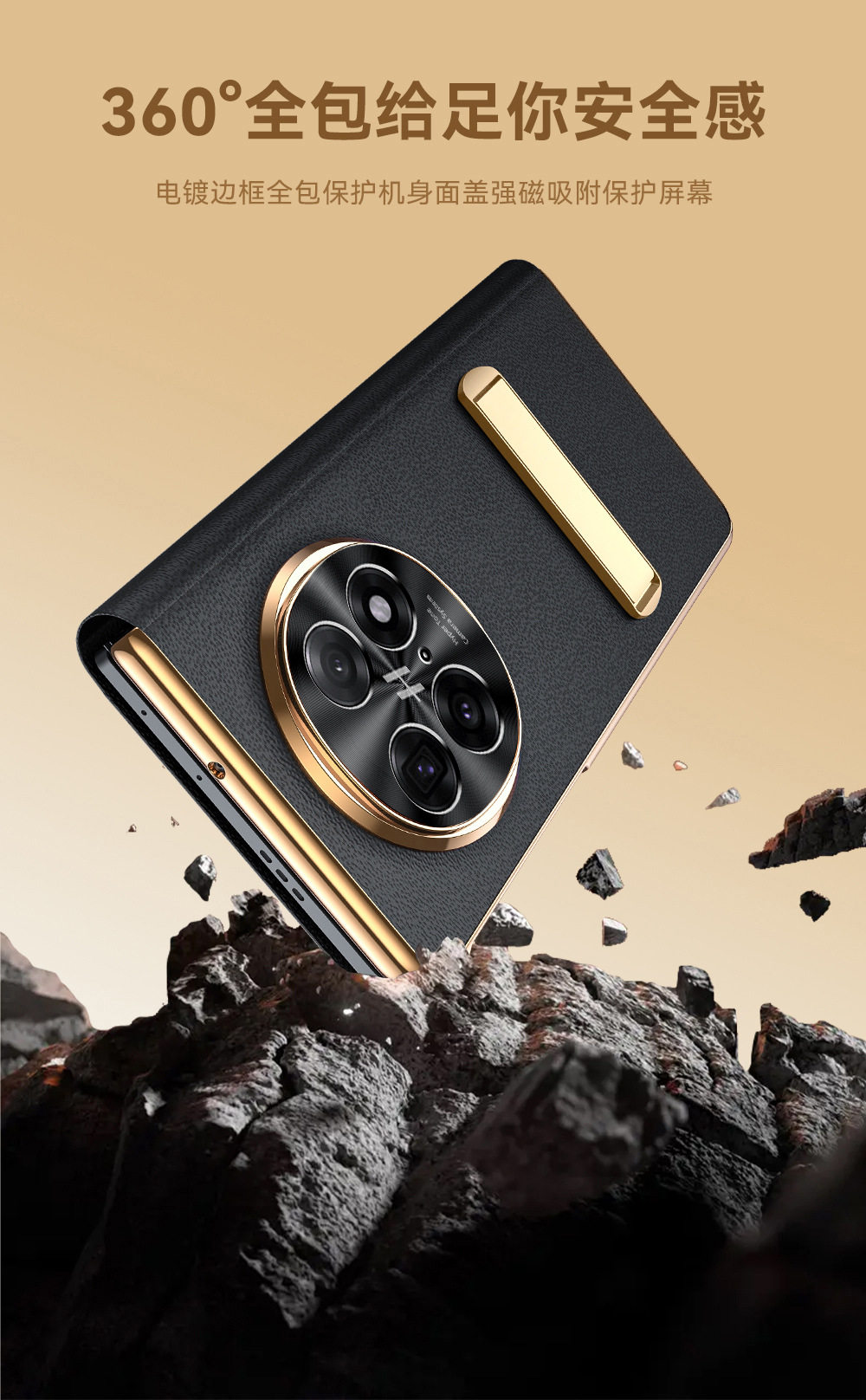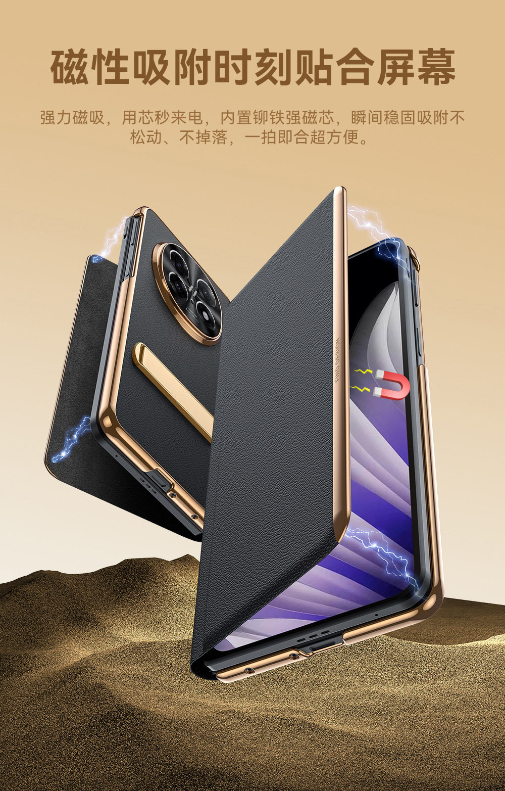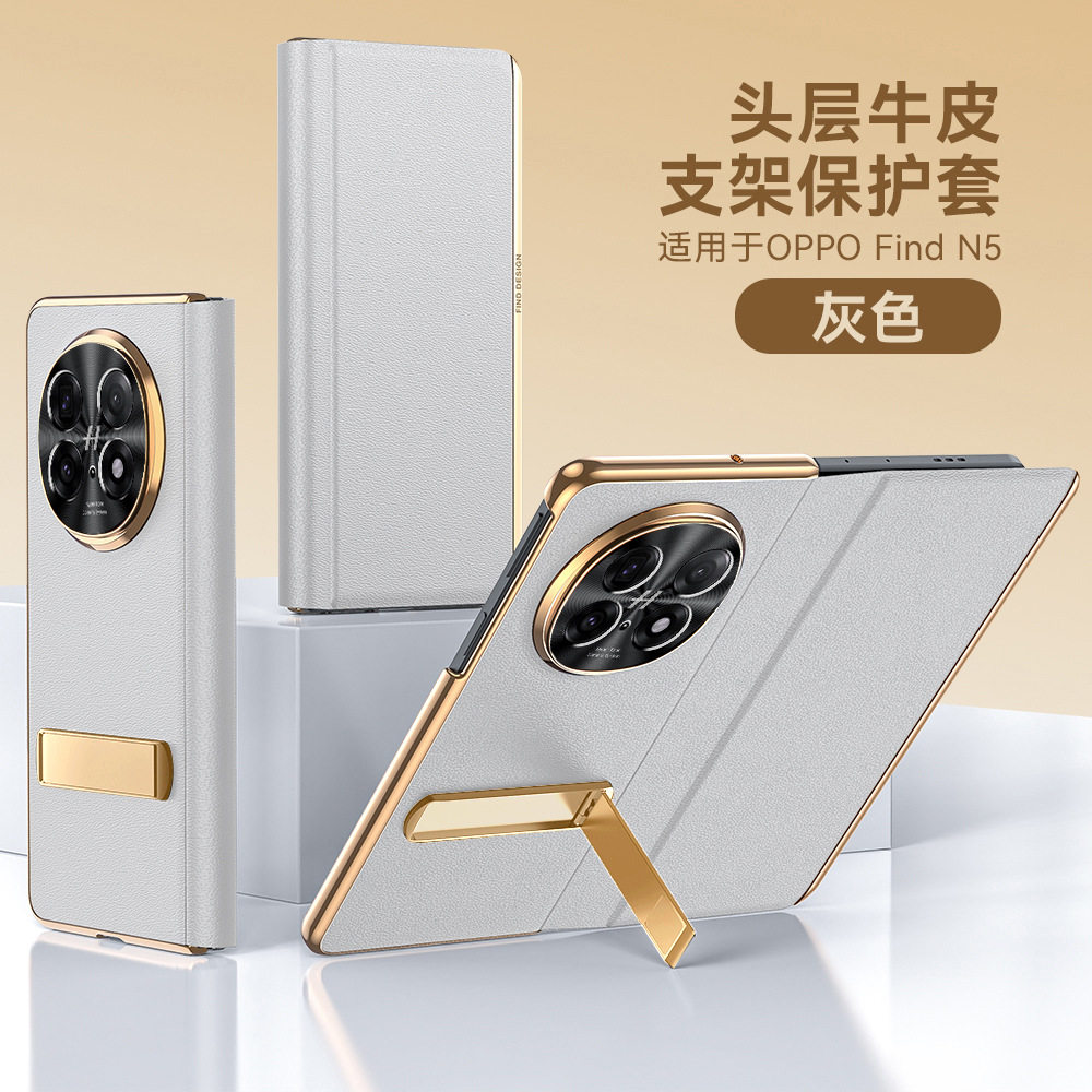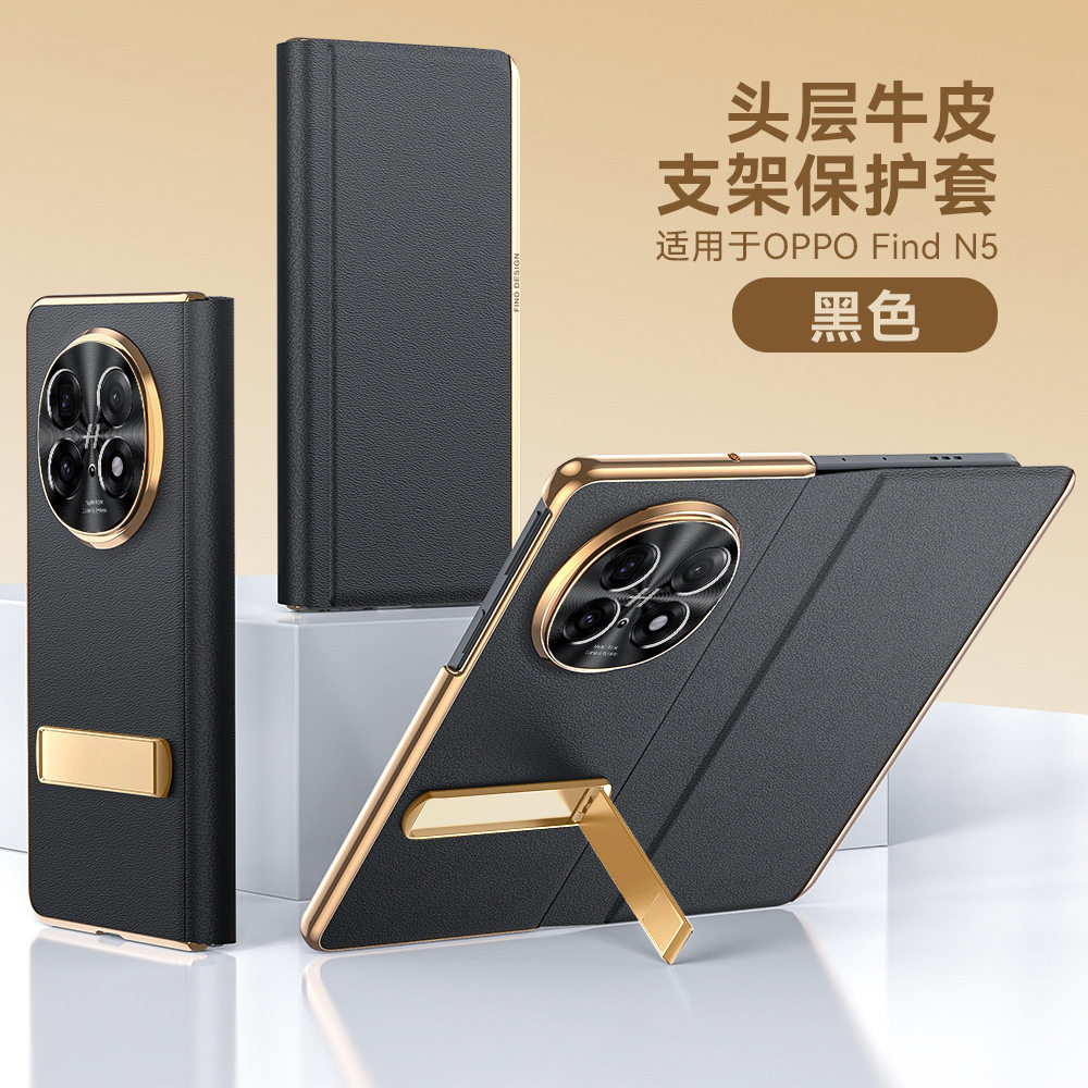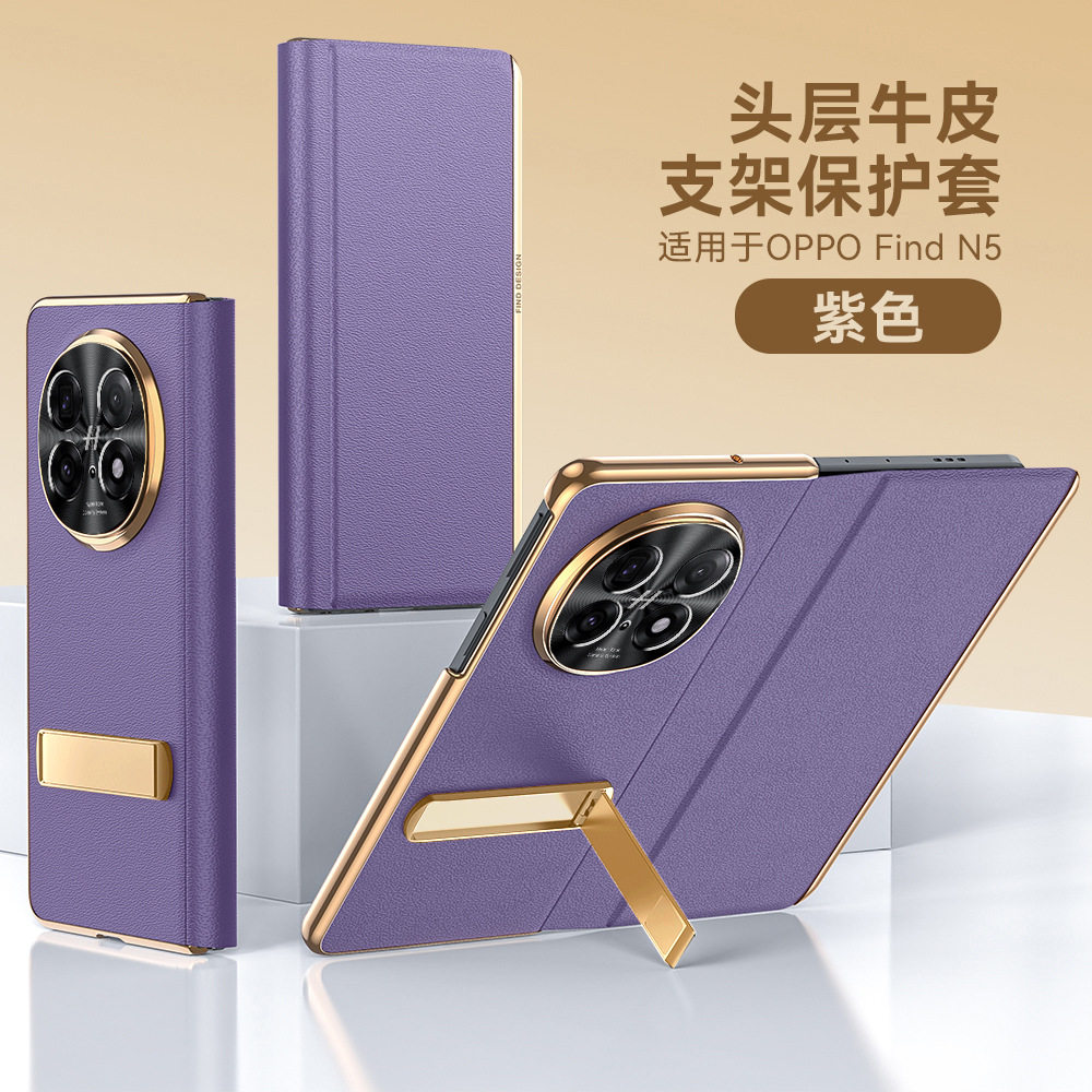 Suitable for Oppo Find N5 Electroplated Leather Case, Genuine Leather Nappa Pinhole Lens Full Protection Case, Anti-Fingerprint