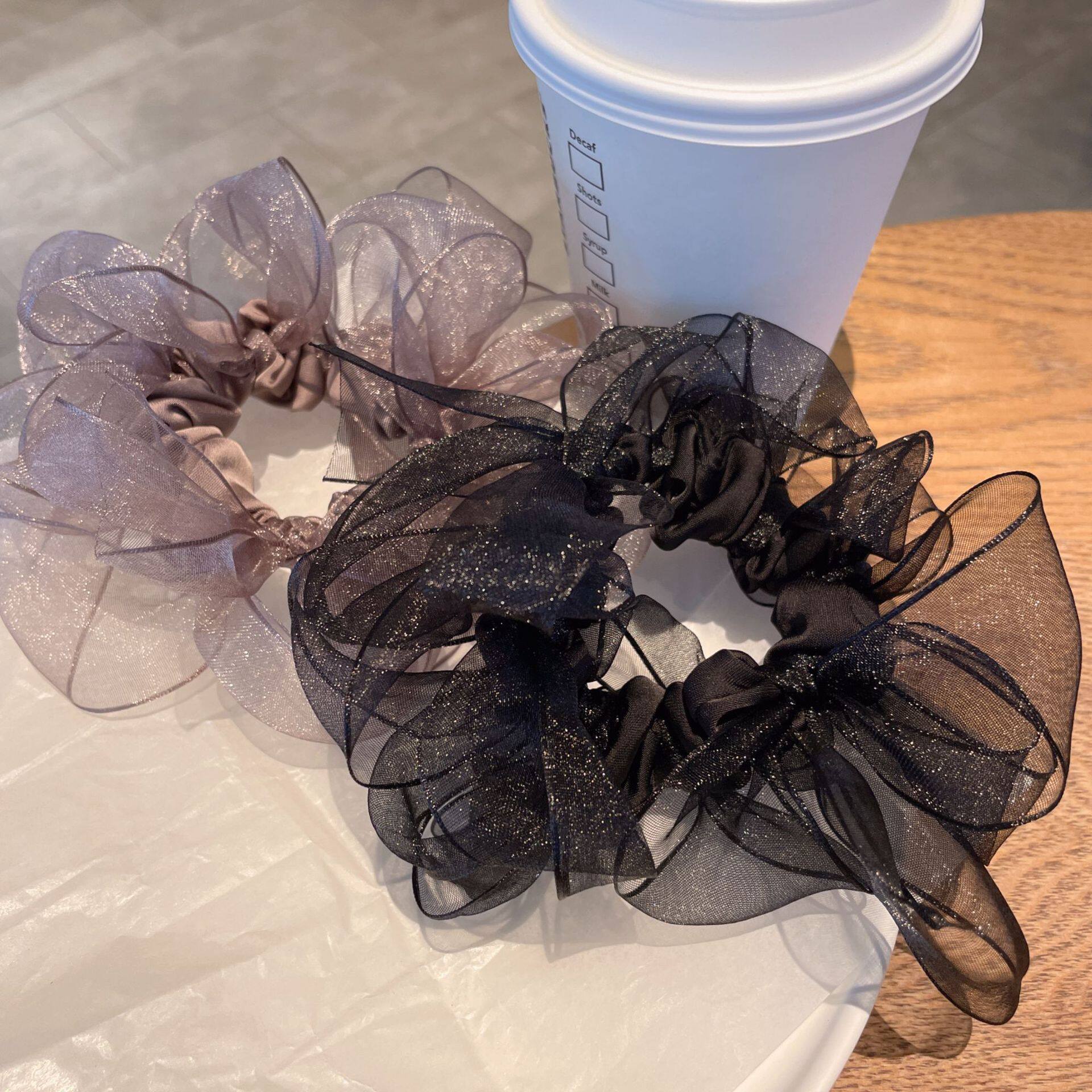 | Colour | Black-organza braided hair tie,Purple gray-organza braided hair tie |