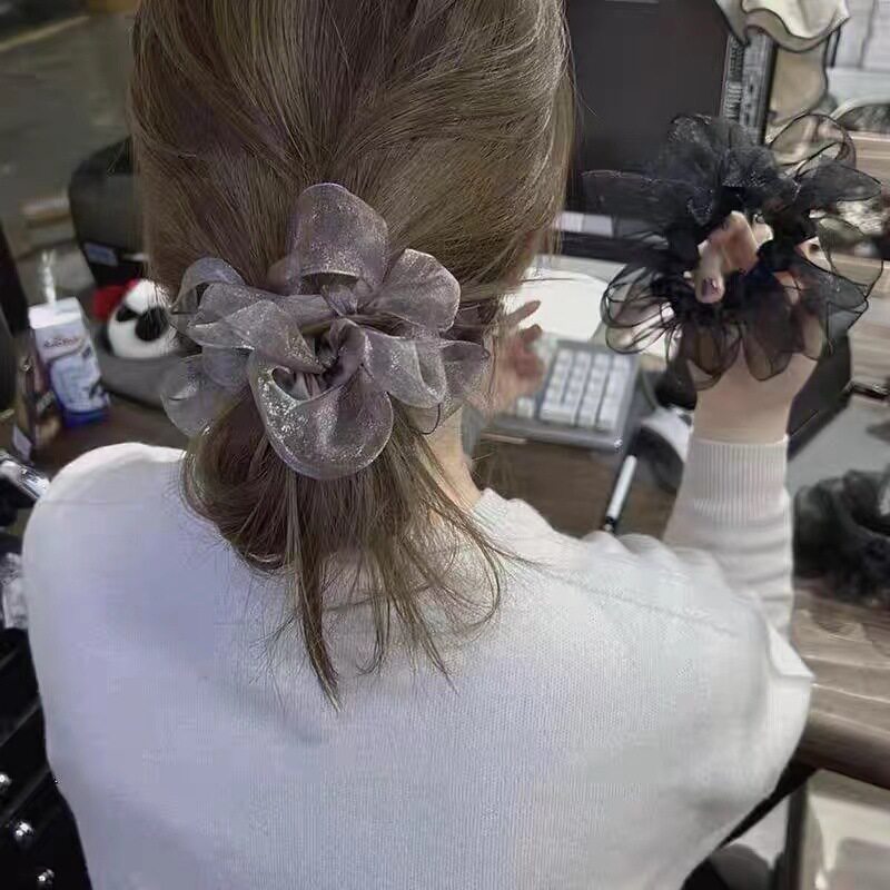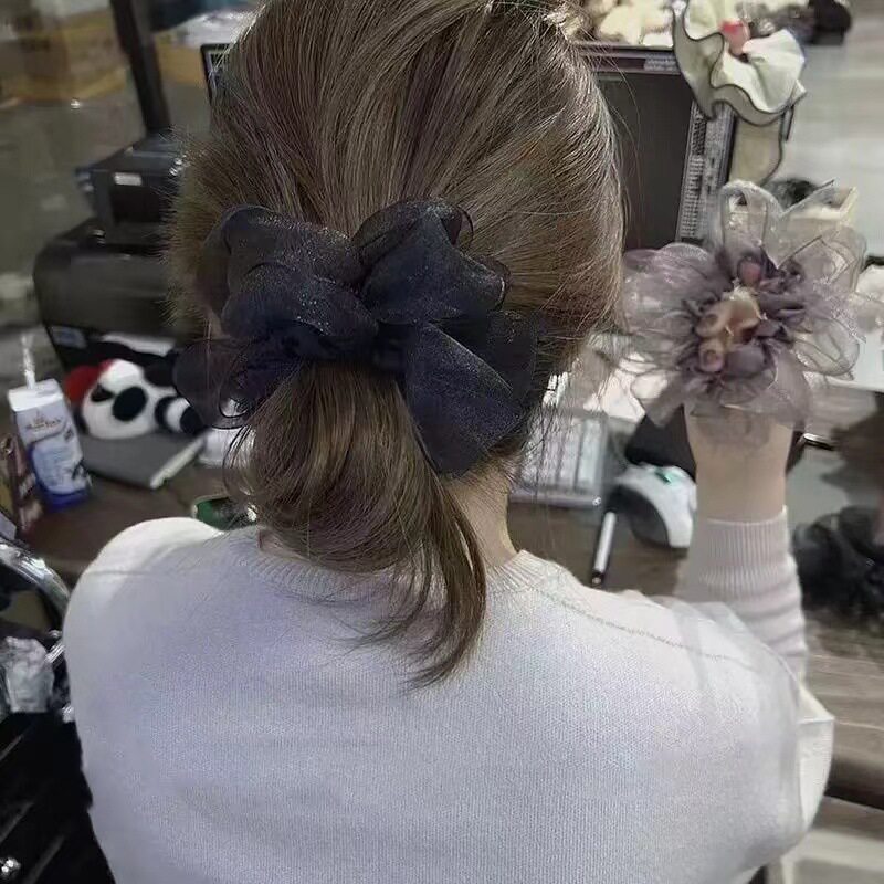 high quality hair volume organza hand-woven bow large intestine hair ring girl balls hair rope tie rope
