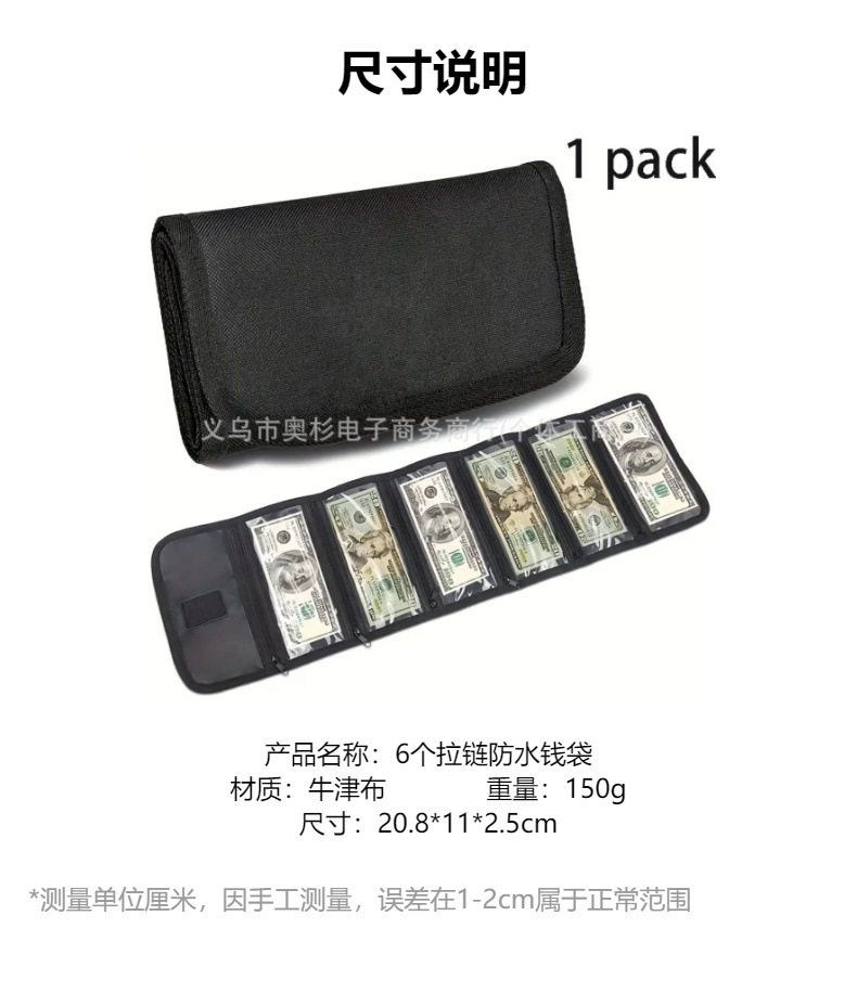 Hot recommend! Practical Cash Storage Bag Wallet with 6 Zippers Waterproof Money Bag Multi-grid Coin Purse
