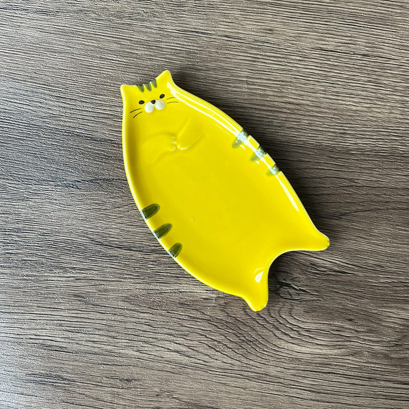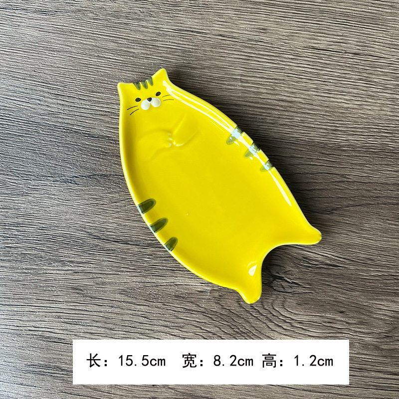 Japanese Style Tiger Cat Ceramic Simple Dish Household Dip Dish Snack Dish Cute Cartoon Plate LB28