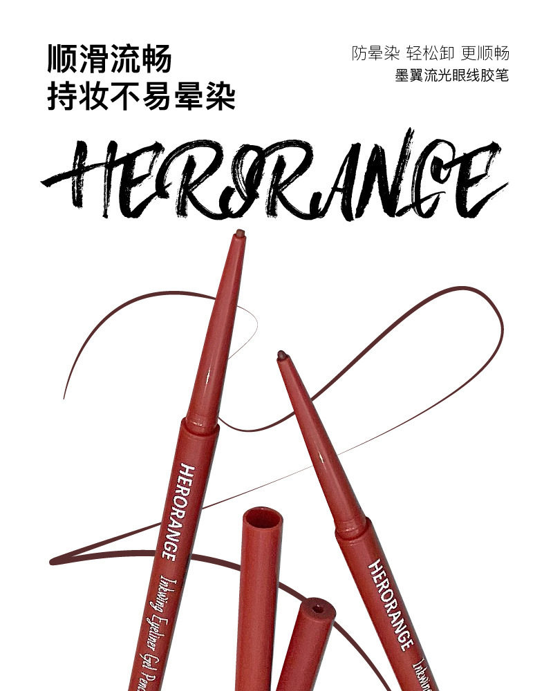 Herorange Ink Wing Streamer Eyeliner Gel Pen Color, Non-Smudged, Long-Lasting, Waterproof and Sweat-Proof Eyeliner Cross-Border Makeup