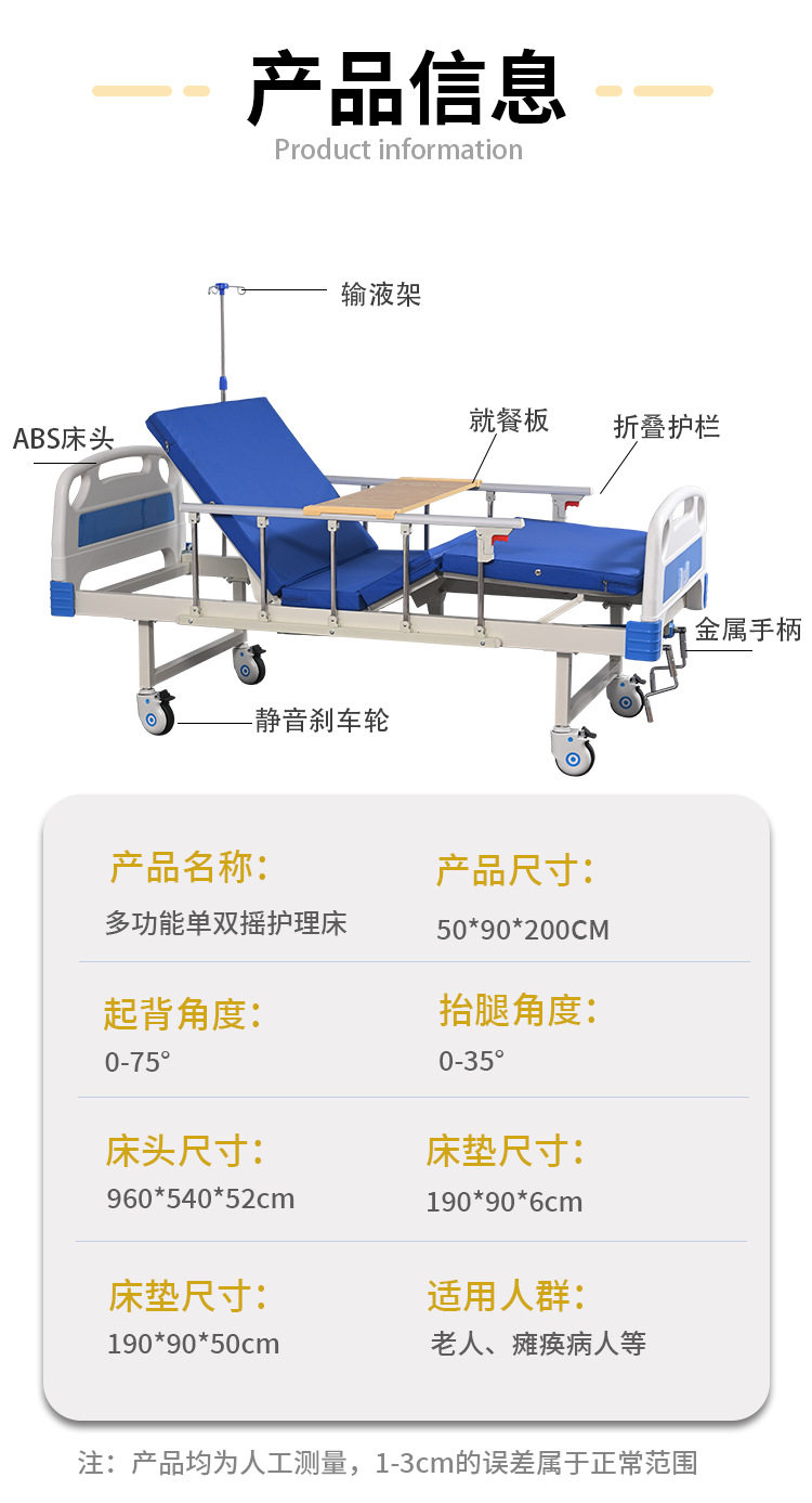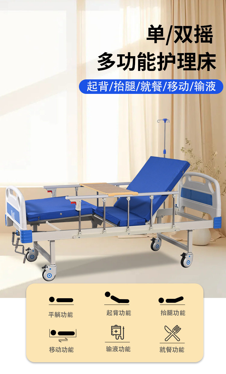 Single and Double Shake Hospital Beds, Multifunctional Medical Beds, Medical Nursing Beds for the Elderly, Paralyzed, Abs Nursing Home Home Use