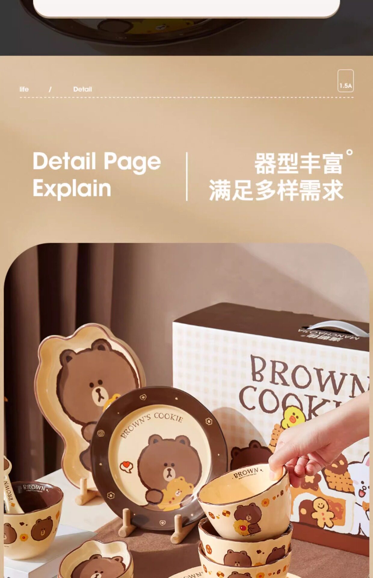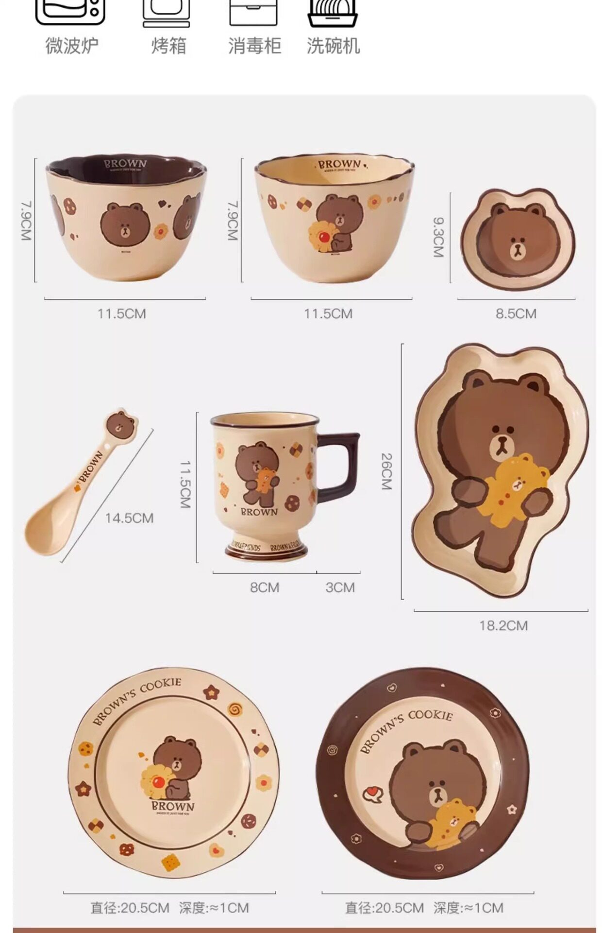 | Color | Brown bear tableware—4.5inch bowls [light color],Brown bear tableware—4.5inch bowls (dark style),Brown bear tableware—8inch flat plate (dark style),Brown bear tableware—mug |