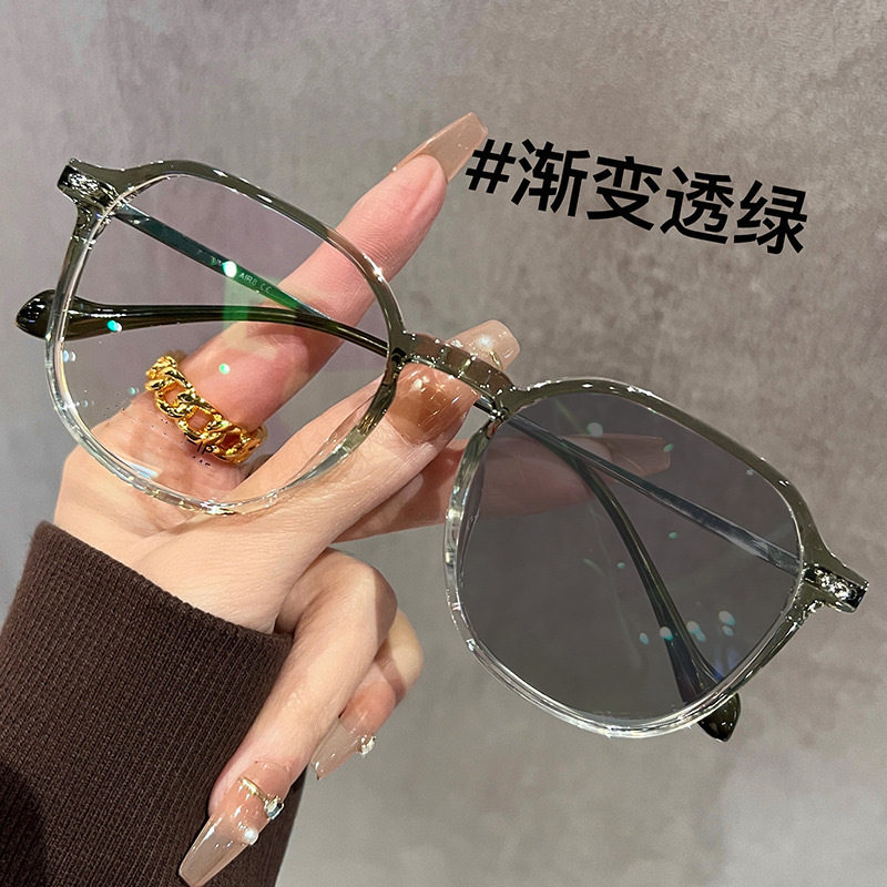 New large frame photosensitive color-changing myopia glasses plain polygonal optical glasses ultra-light girls square frame