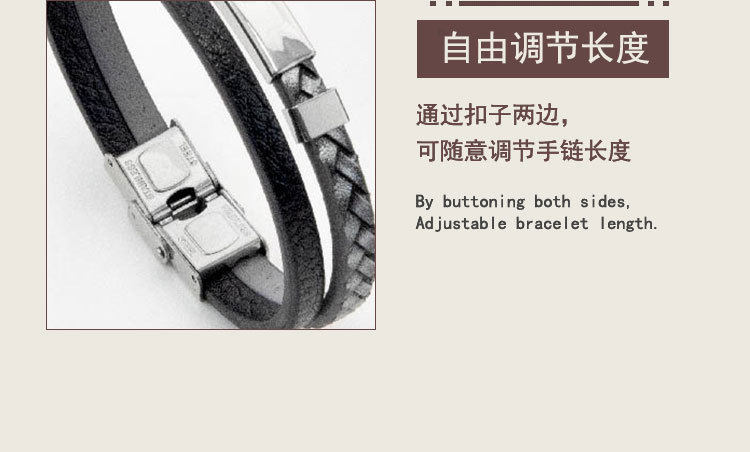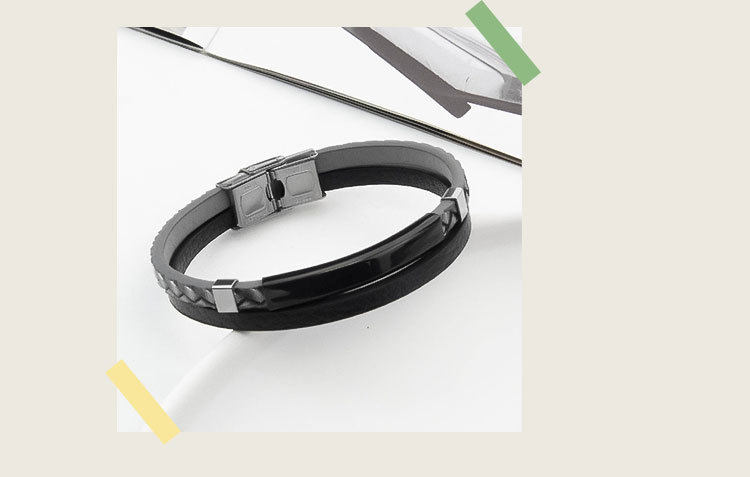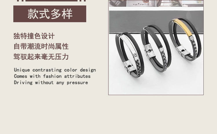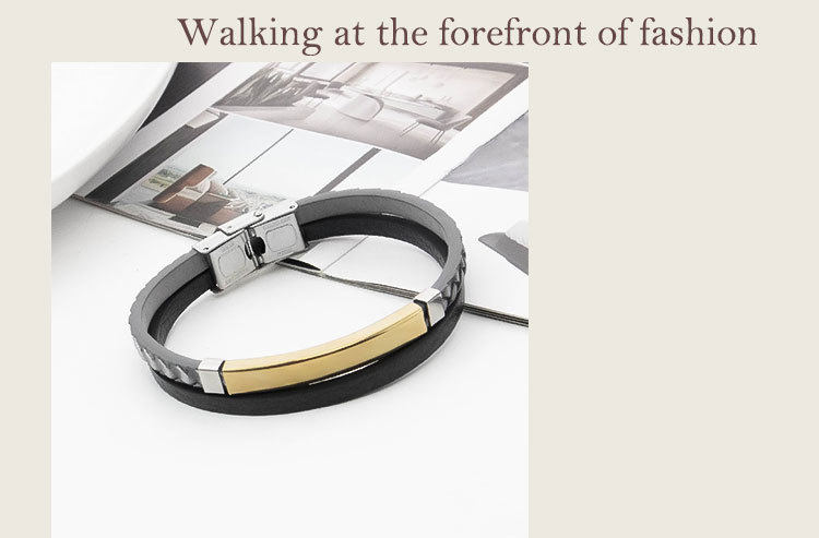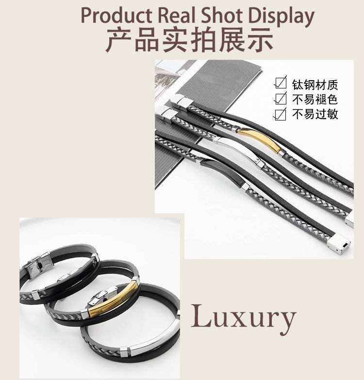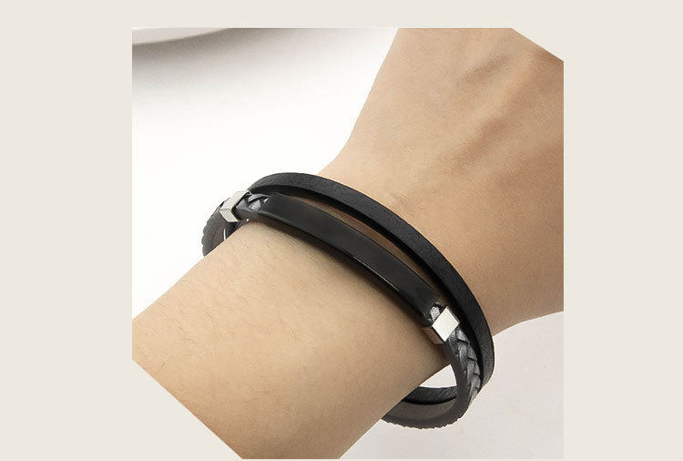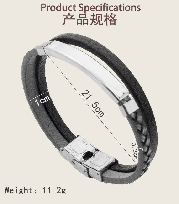 European and American Cross-border PU Leather Woven Distinctive Men's Engraving Bracelet Fashion All-match Titanium Steel Bend Brand Men's Hip-hop Bracelet