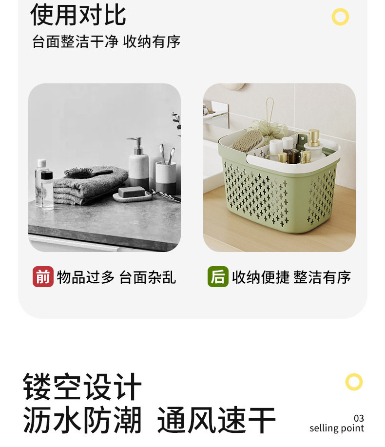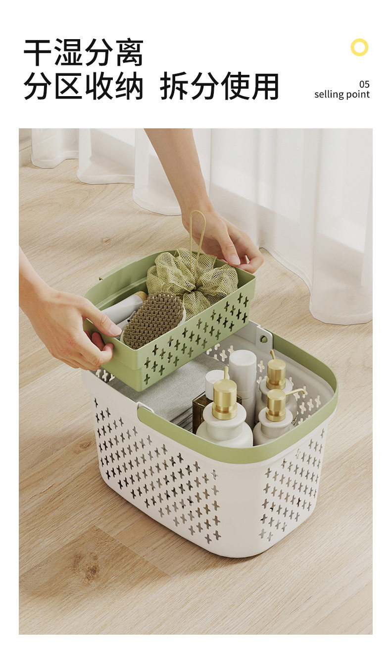 Portable Bath Basket Large Capacity Bath Basket Toiletries South Korea-style Cute Bath Household Bathroom Storage Basket