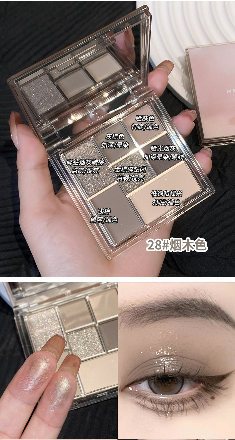 MEIBAOGE Play Fun Seven Color Eyeshadow Plate Earth Color Pearlescent Matte Makeup Ins Beginner Tangram Eyeshadow
