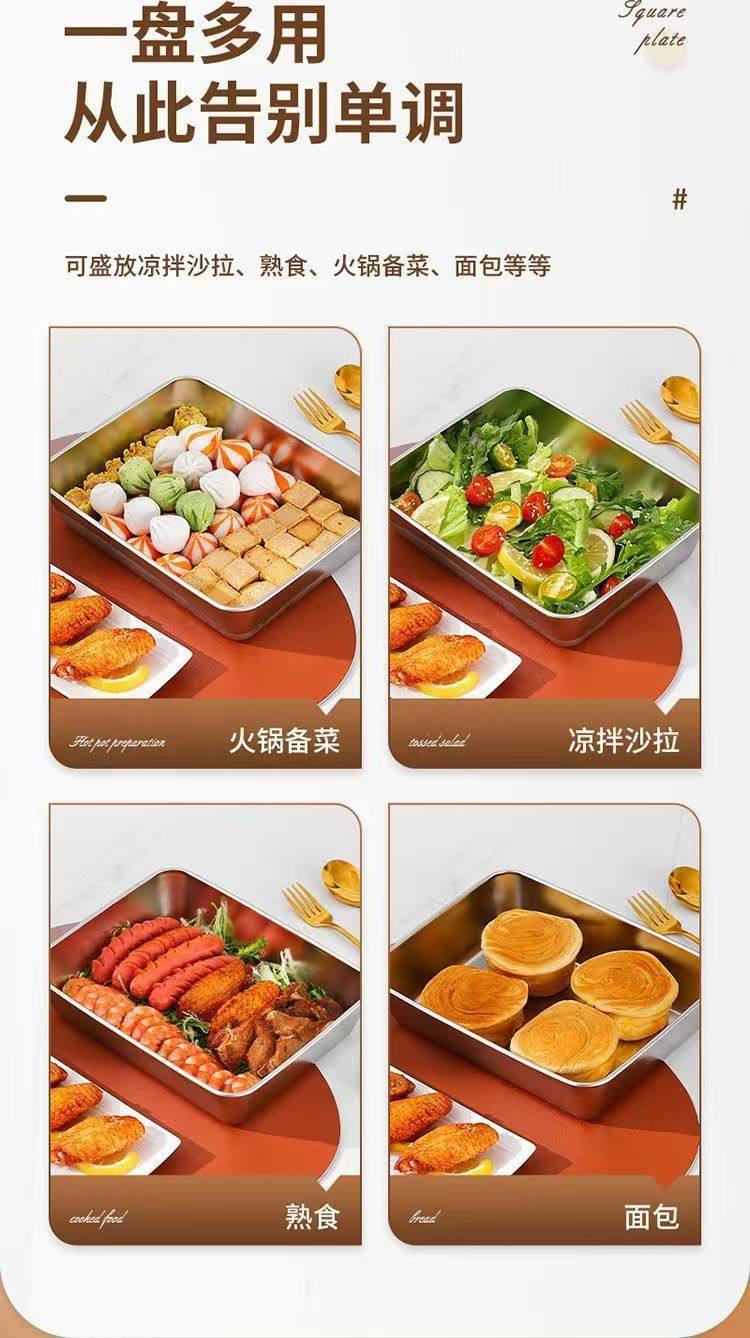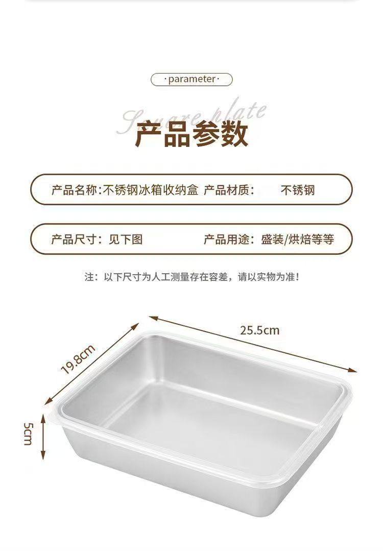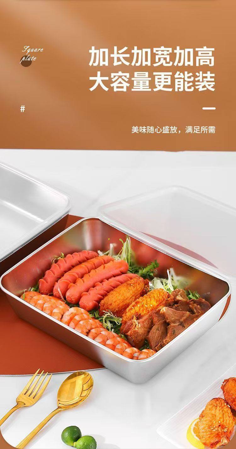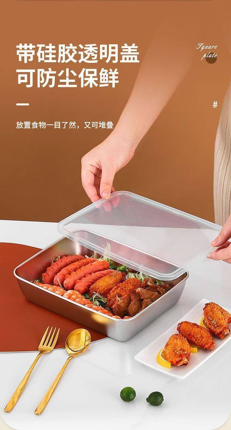 Cross-border Stainless Steel Towel Tray Outdoor Food Preparation Tray with Lid Baking Tray Household Refrigerator Storage Lunch Box Rectangular Square Tray