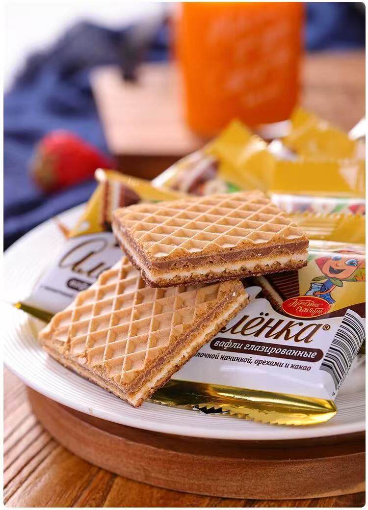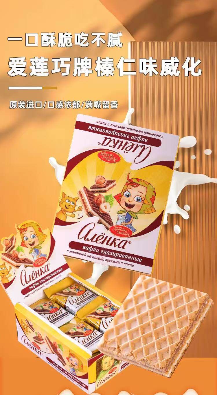 Russian Imported Ailianqiao Hazelnut Wafer Independent Small Packaging Nut Sandwich Chocolate Wafer 20g*20 Bags