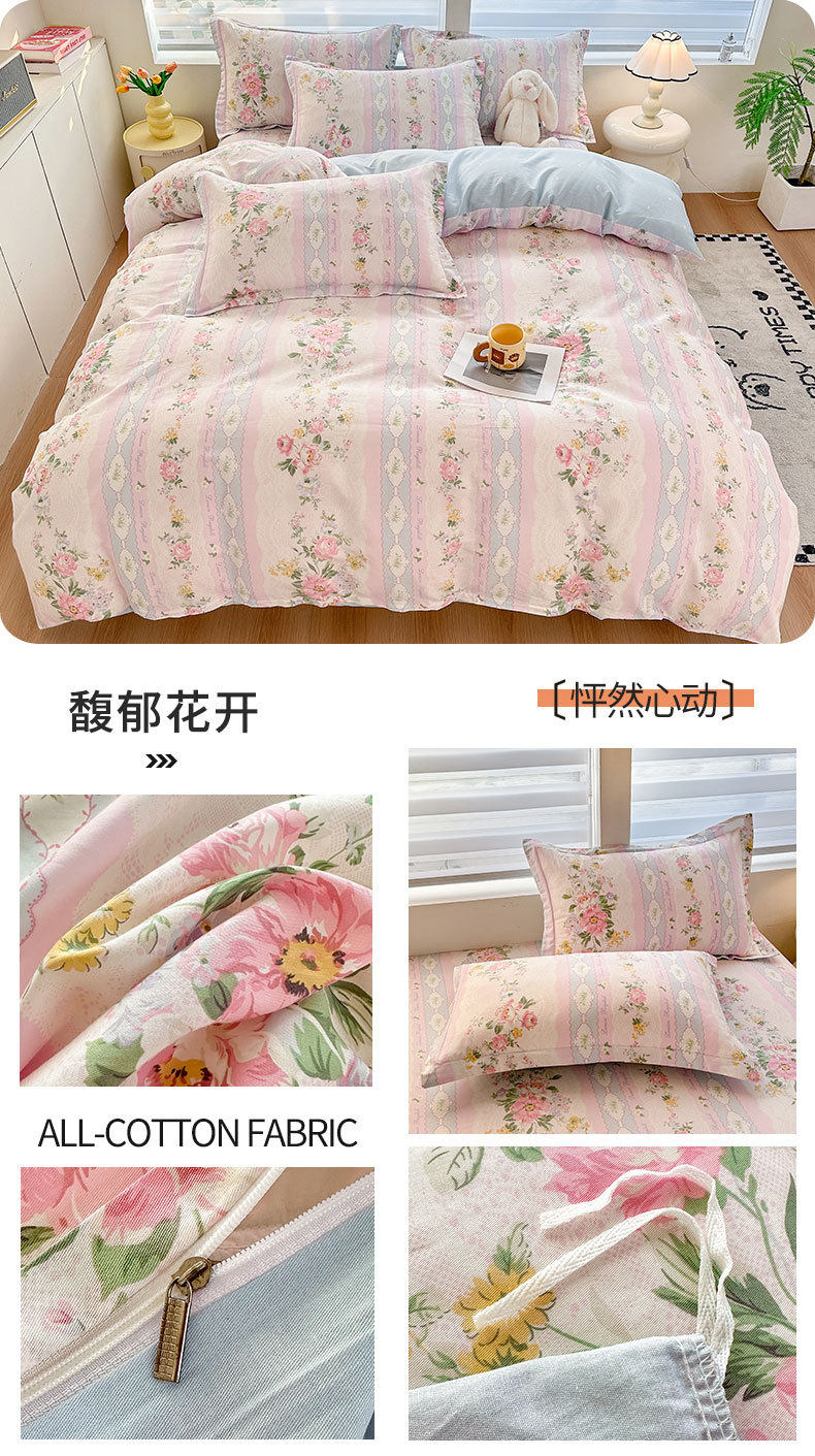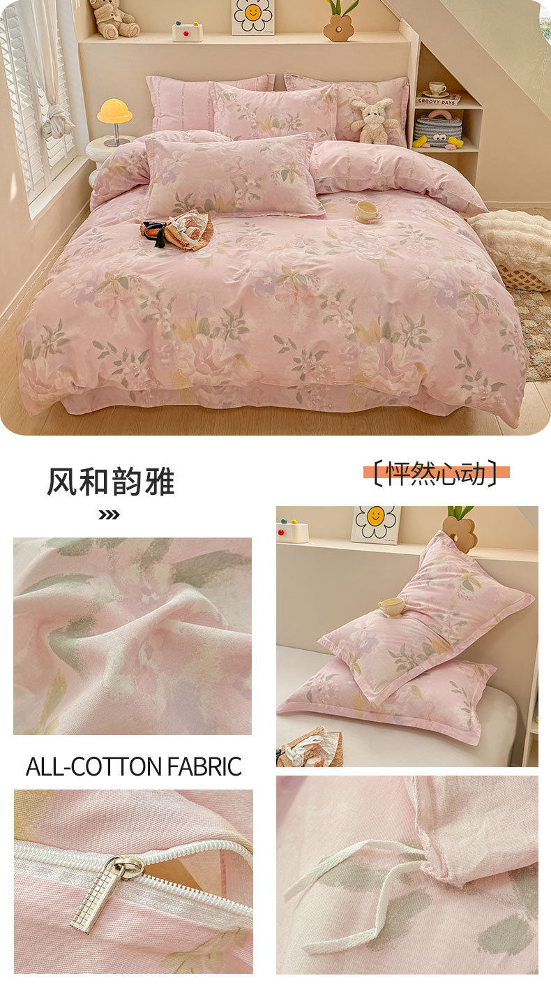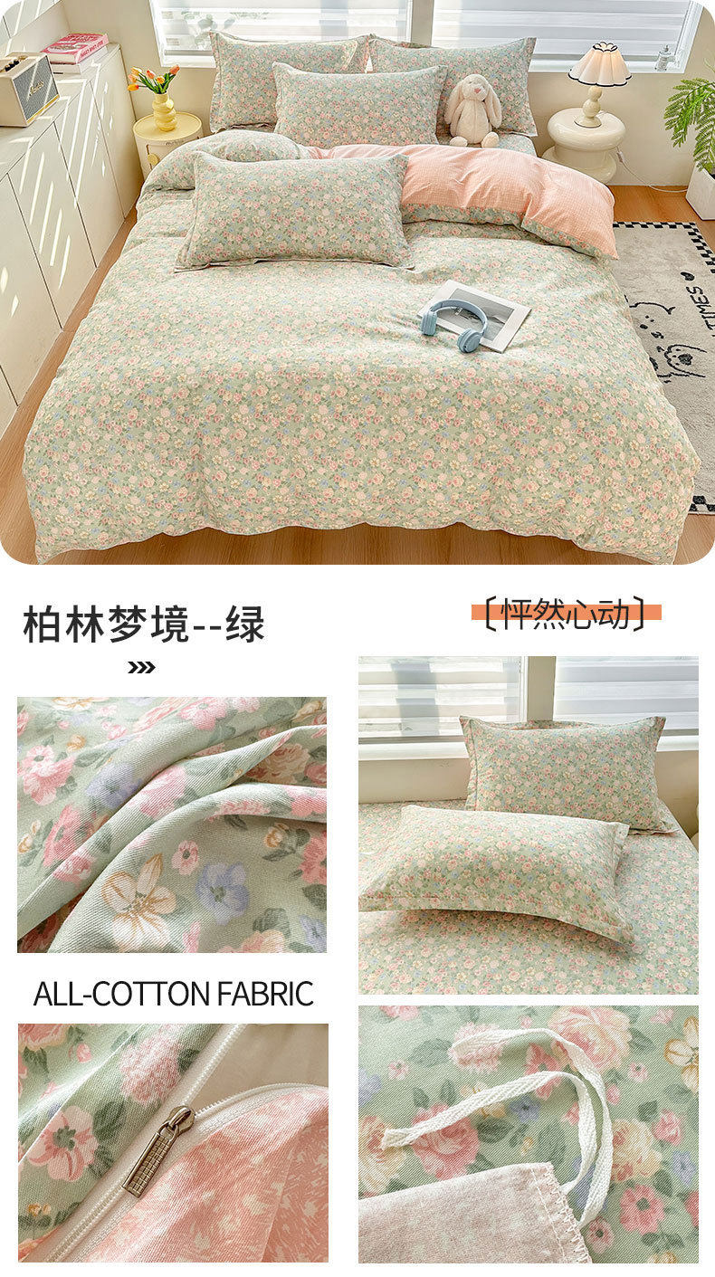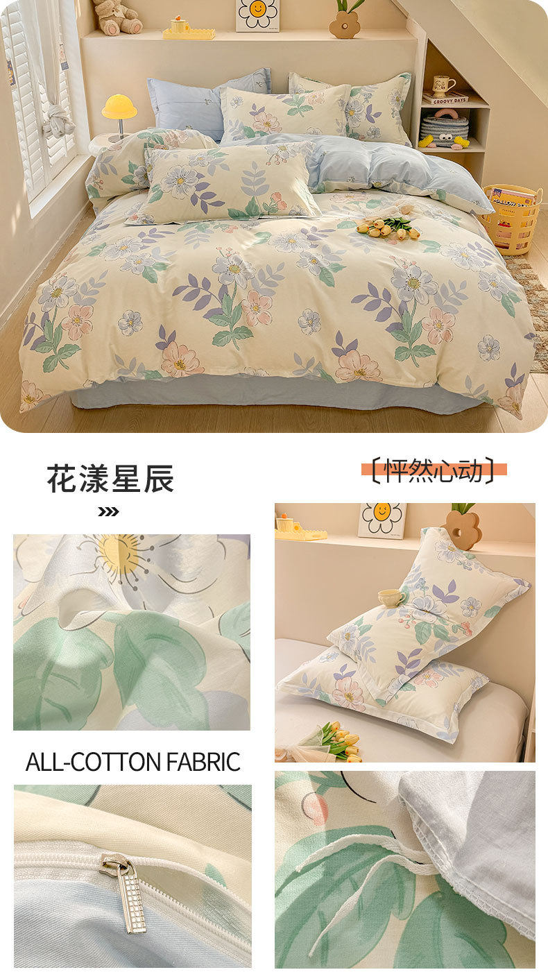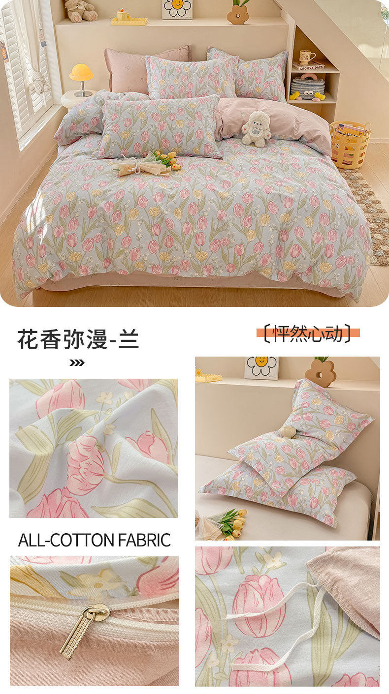 Cotton Four-piece Set Cotton 2025 New Bedding Fresh Floral Quilt Cover Bed Sheet Dormitory Three-piece Set Bedclothes