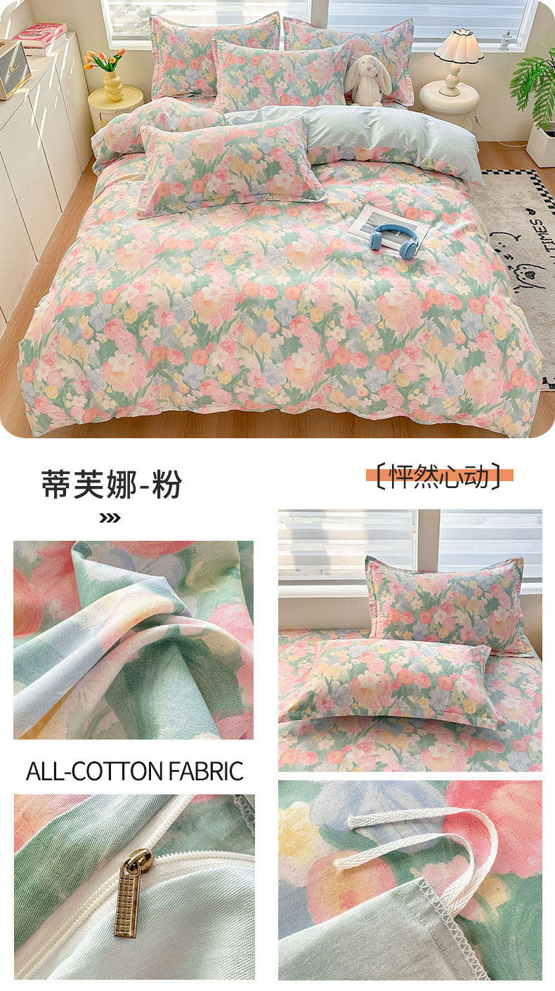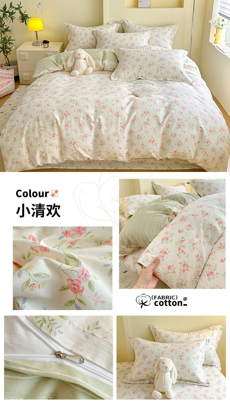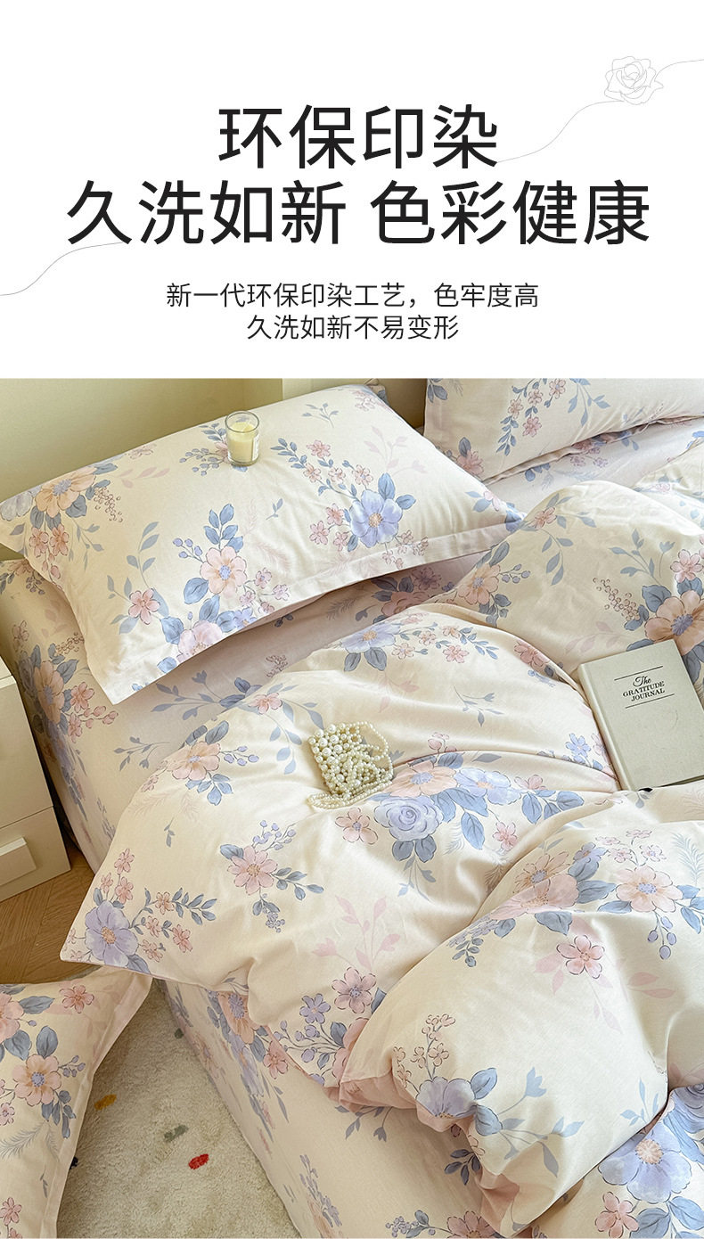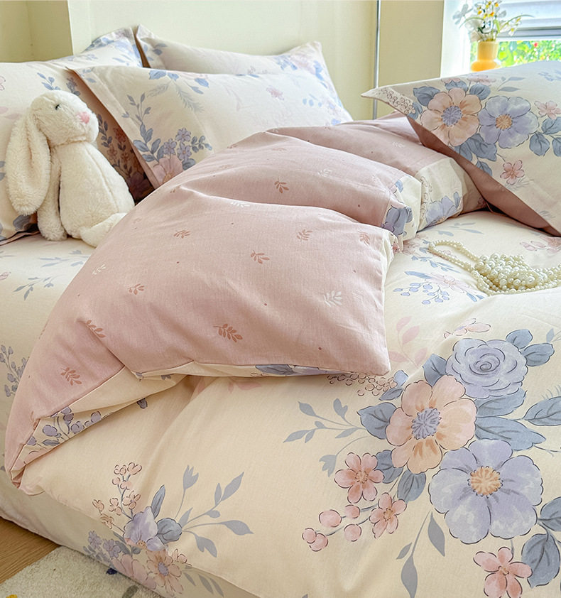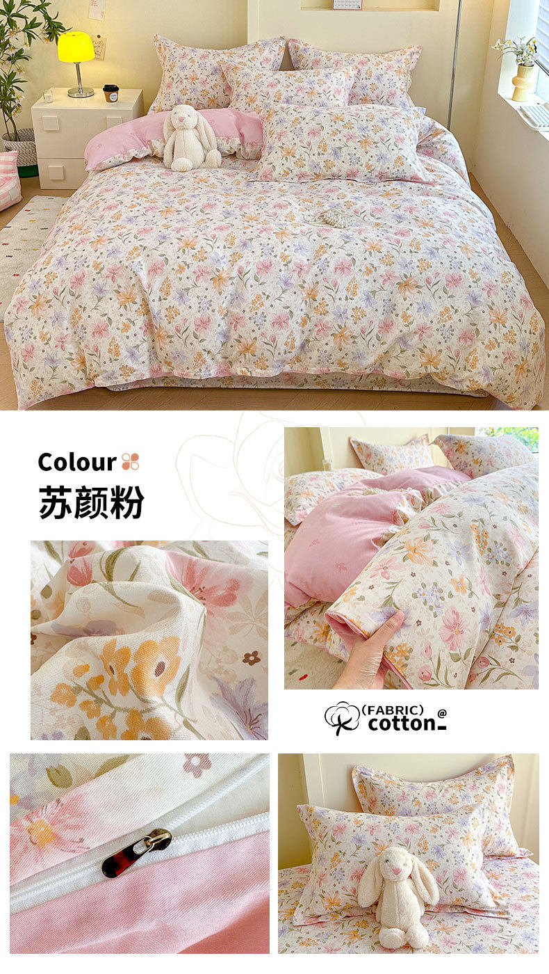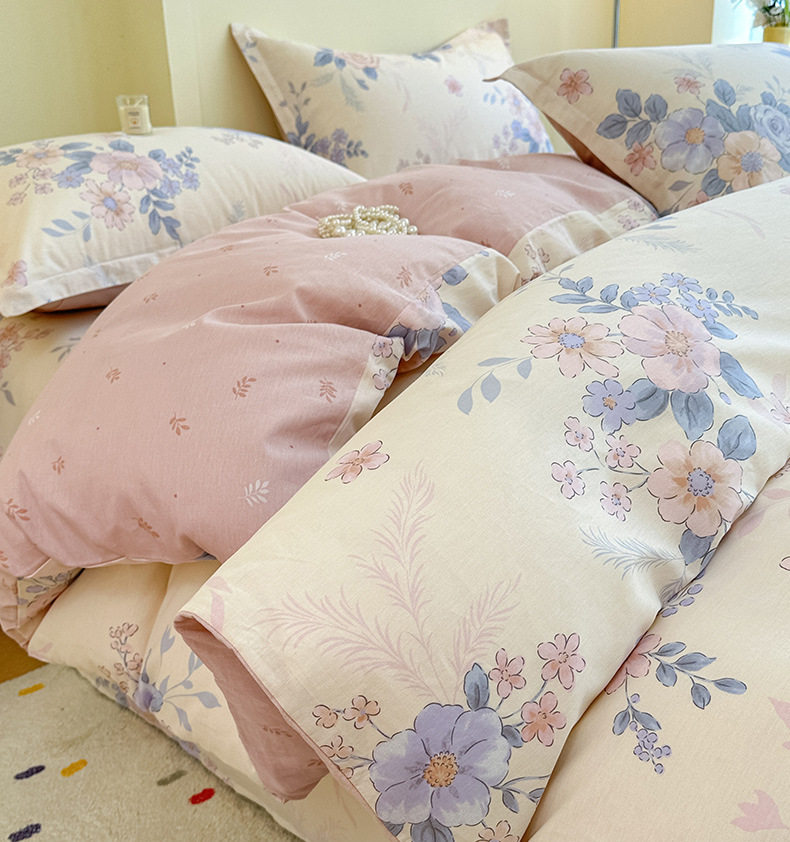 Cotton Four-piece Set Cotton 2025 New Bedding Fresh Floral Quilt Cover Bed Sheet Dormitory Three-piece Set Bedclothes