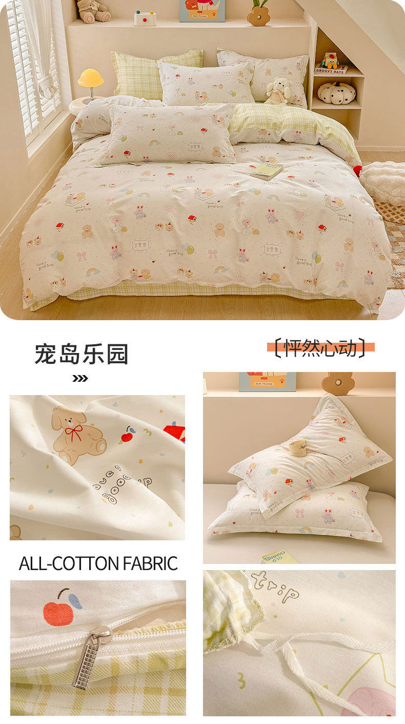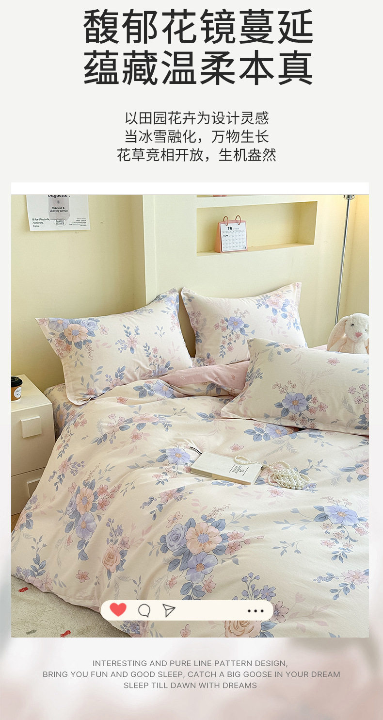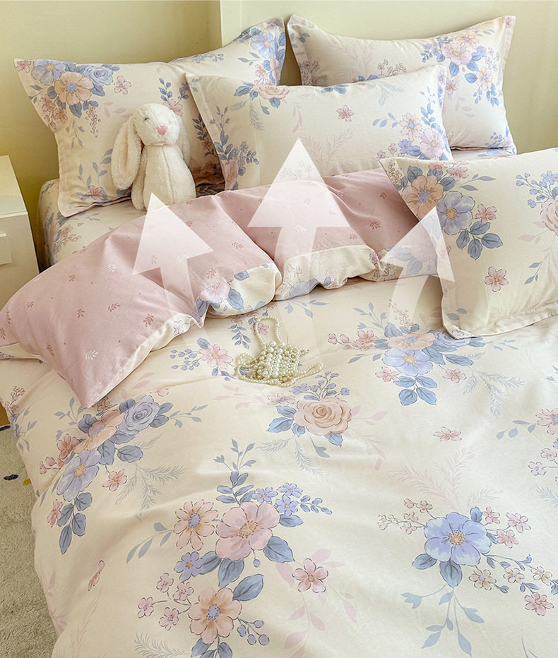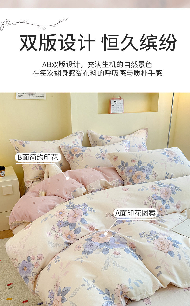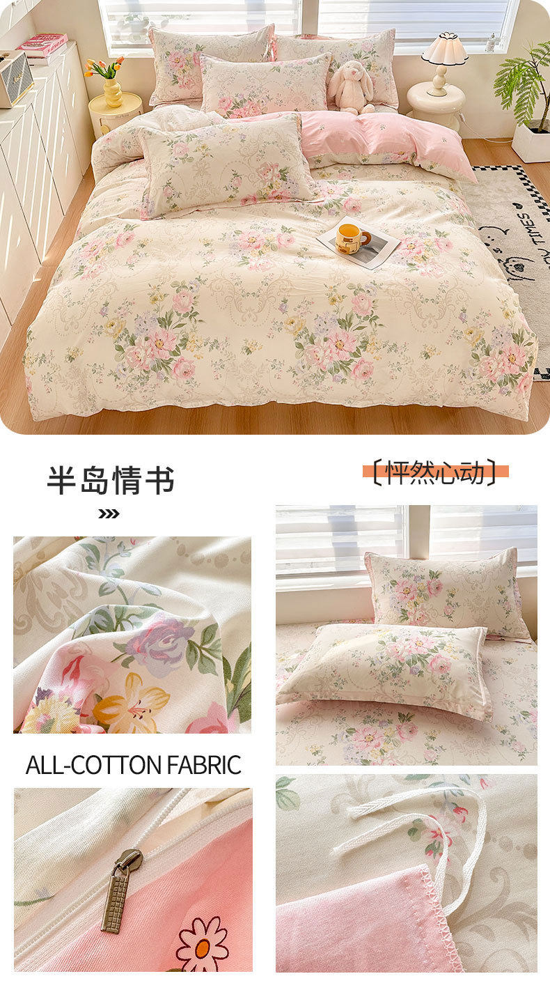 Cotton Four-piece Set Cotton 2025 New Bedding Fresh Floral Quilt Cover Bed Sheet Dormitory Three-piece Set Bedclothes