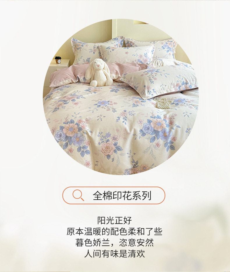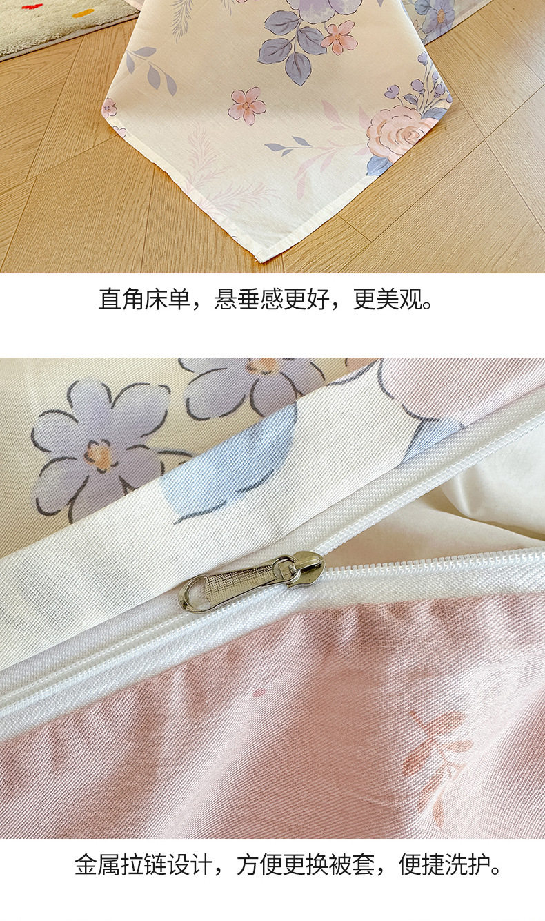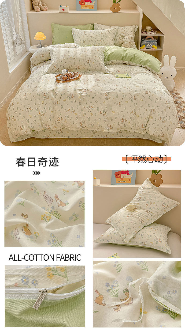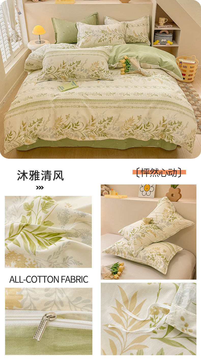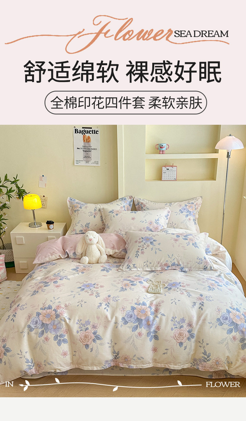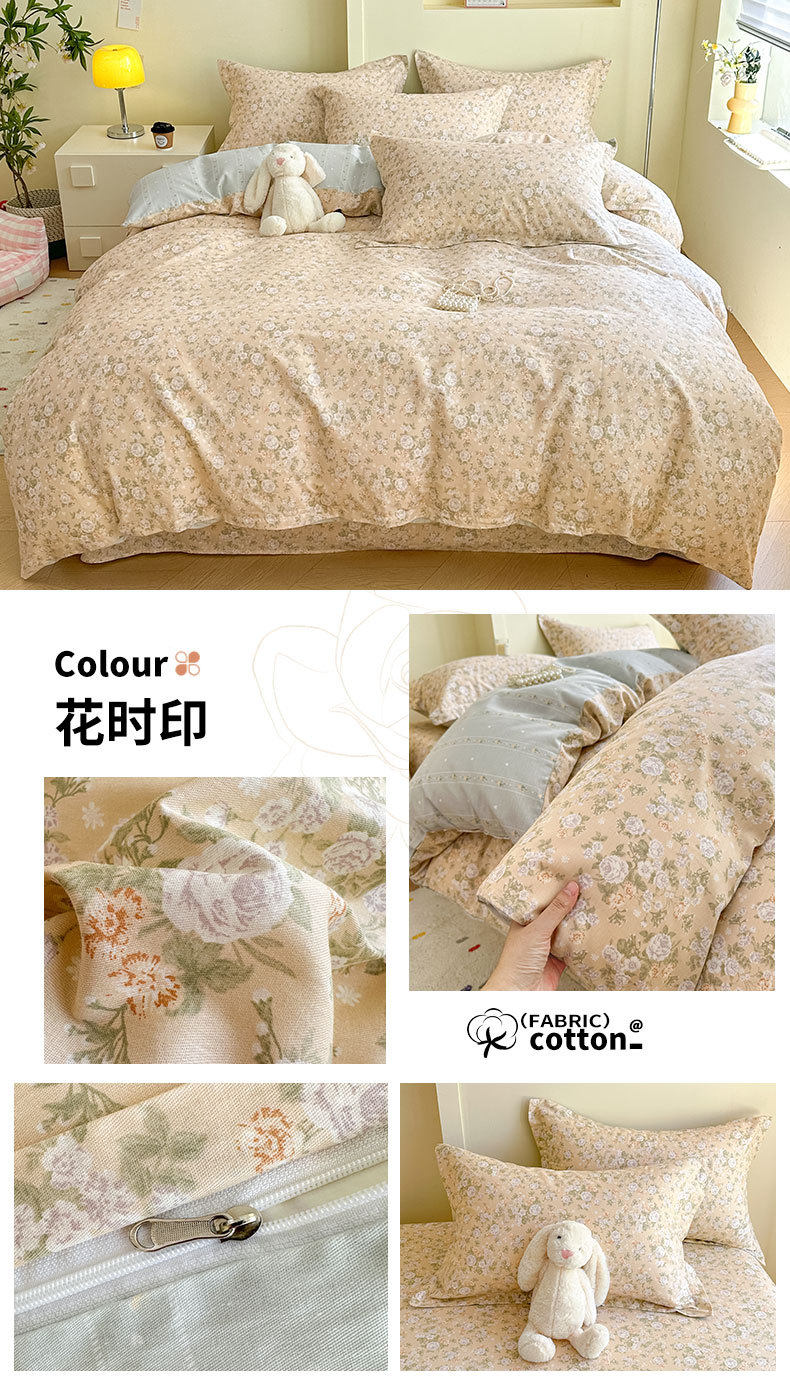 Cotton Four-piece Set Cotton 2025 New Bedding Fresh Floral Quilt Cover Bed Sheet Dormitory Three-piece Set Bedclothes