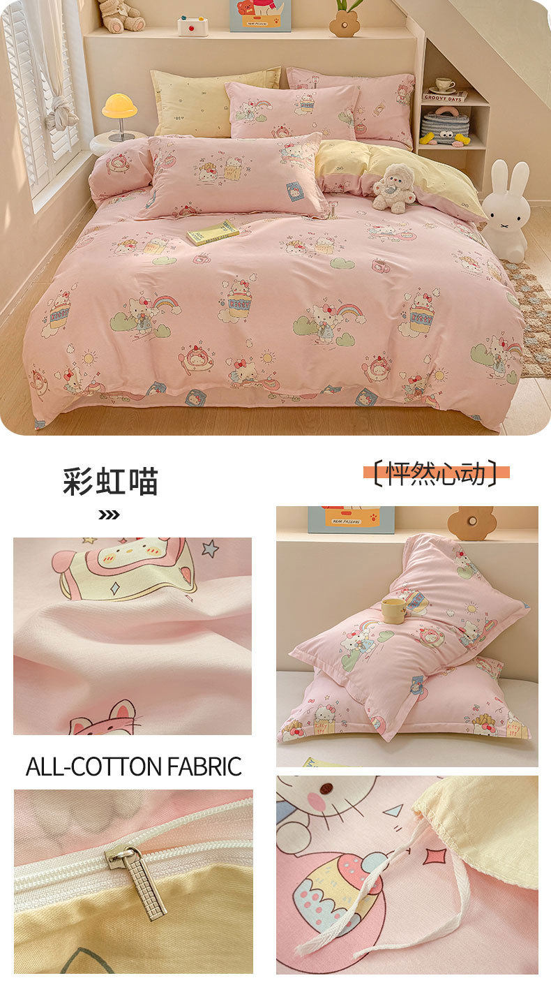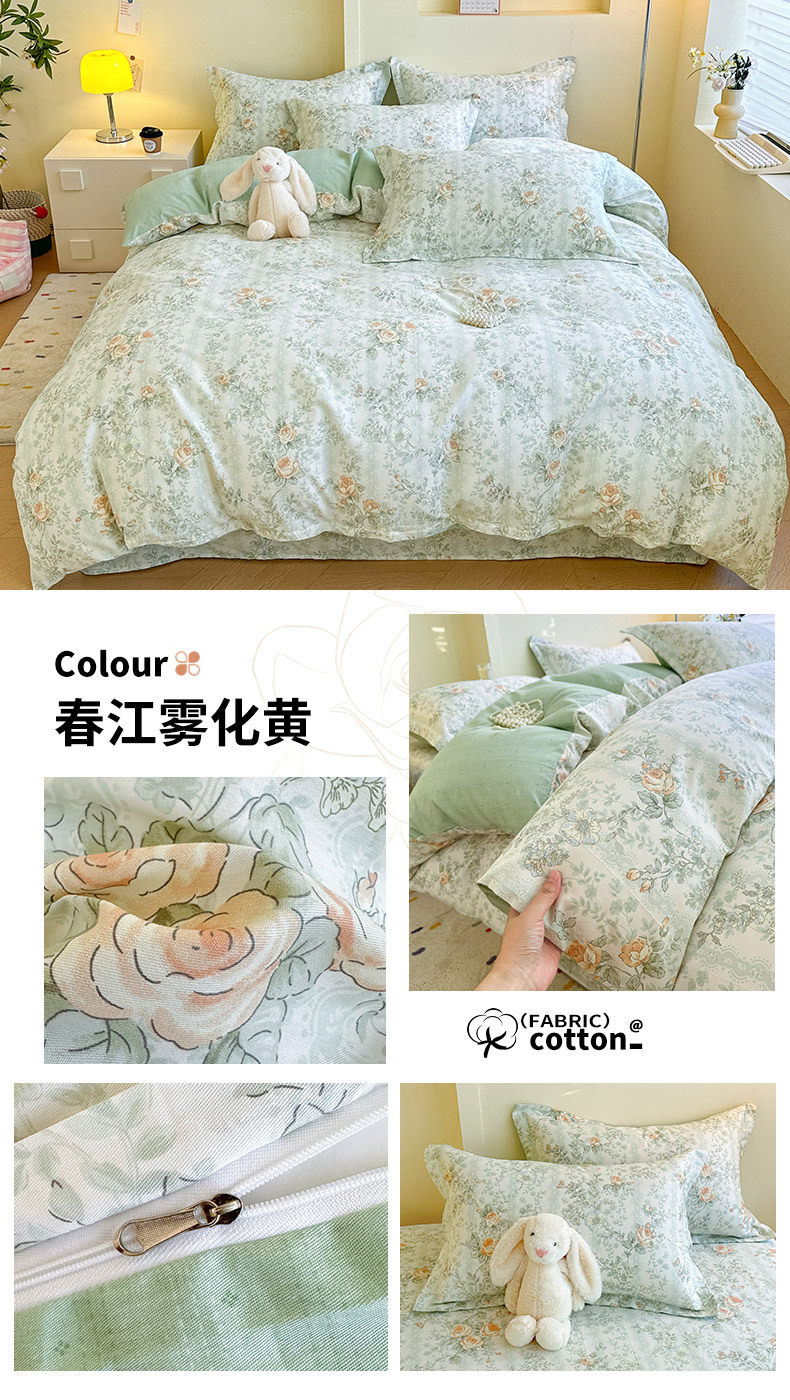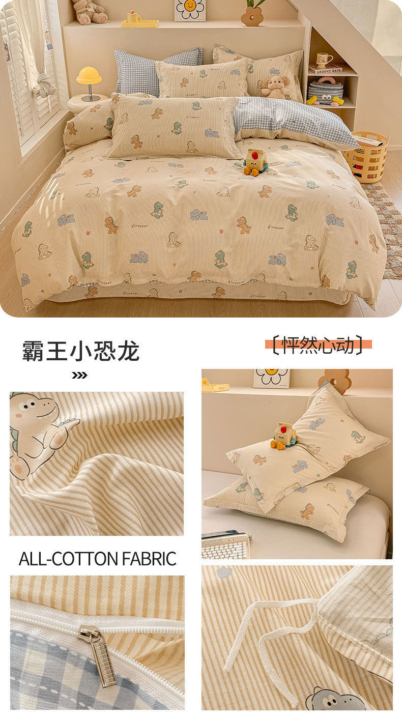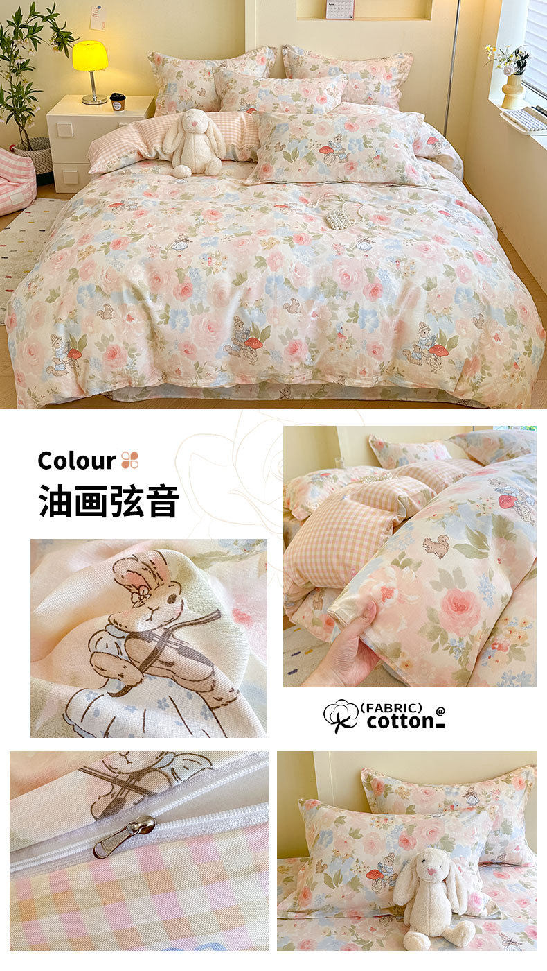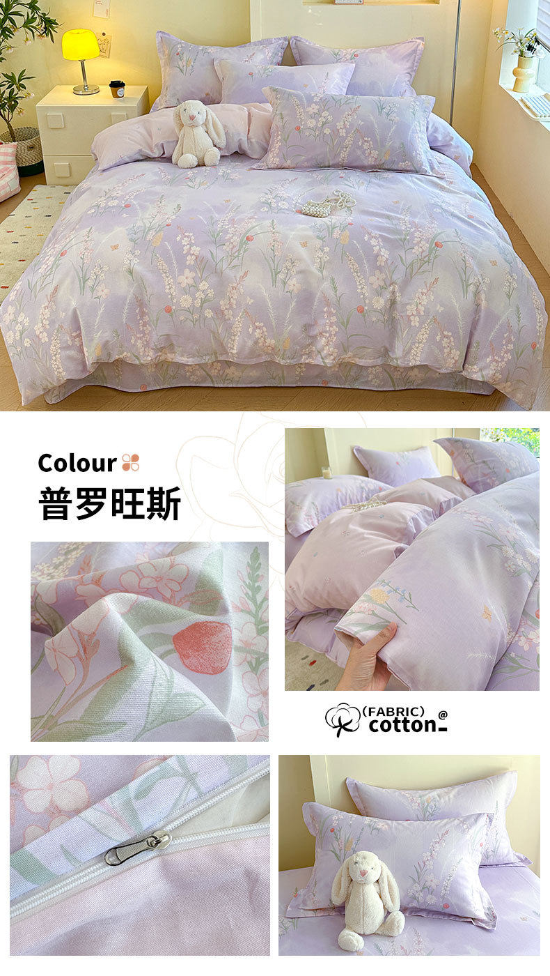 Cotton Four-piece Set Cotton 2025 New Bedding Fresh Floral Quilt Cover Bed Sheet Dormitory Three-piece Set Bedclothes